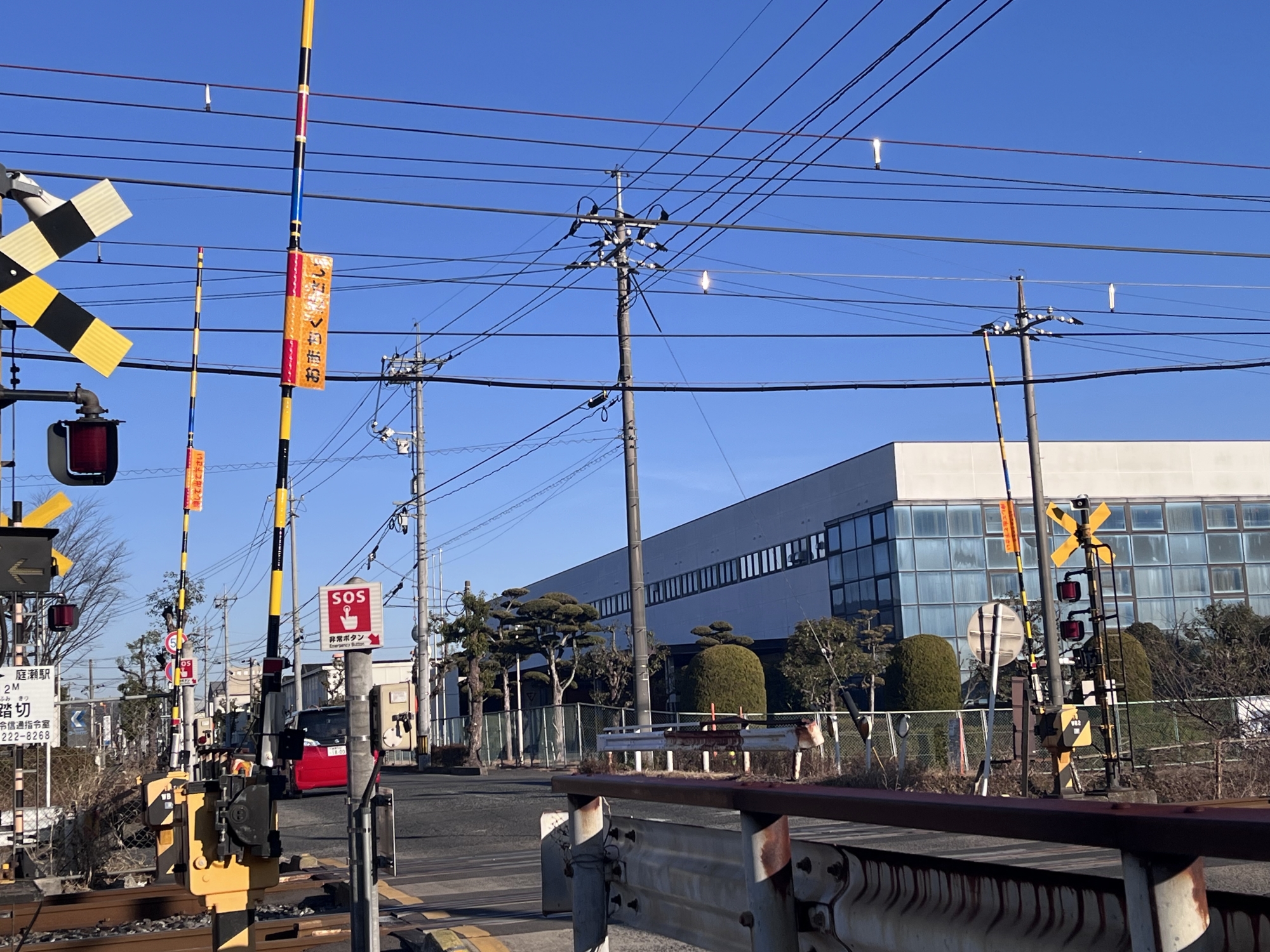 踏切は、八反ヶ坪踏切……中庄駅の東側で、上り列車は駅に到着したくらいから、遮断機が降りるので、結構、待たされる場所です.