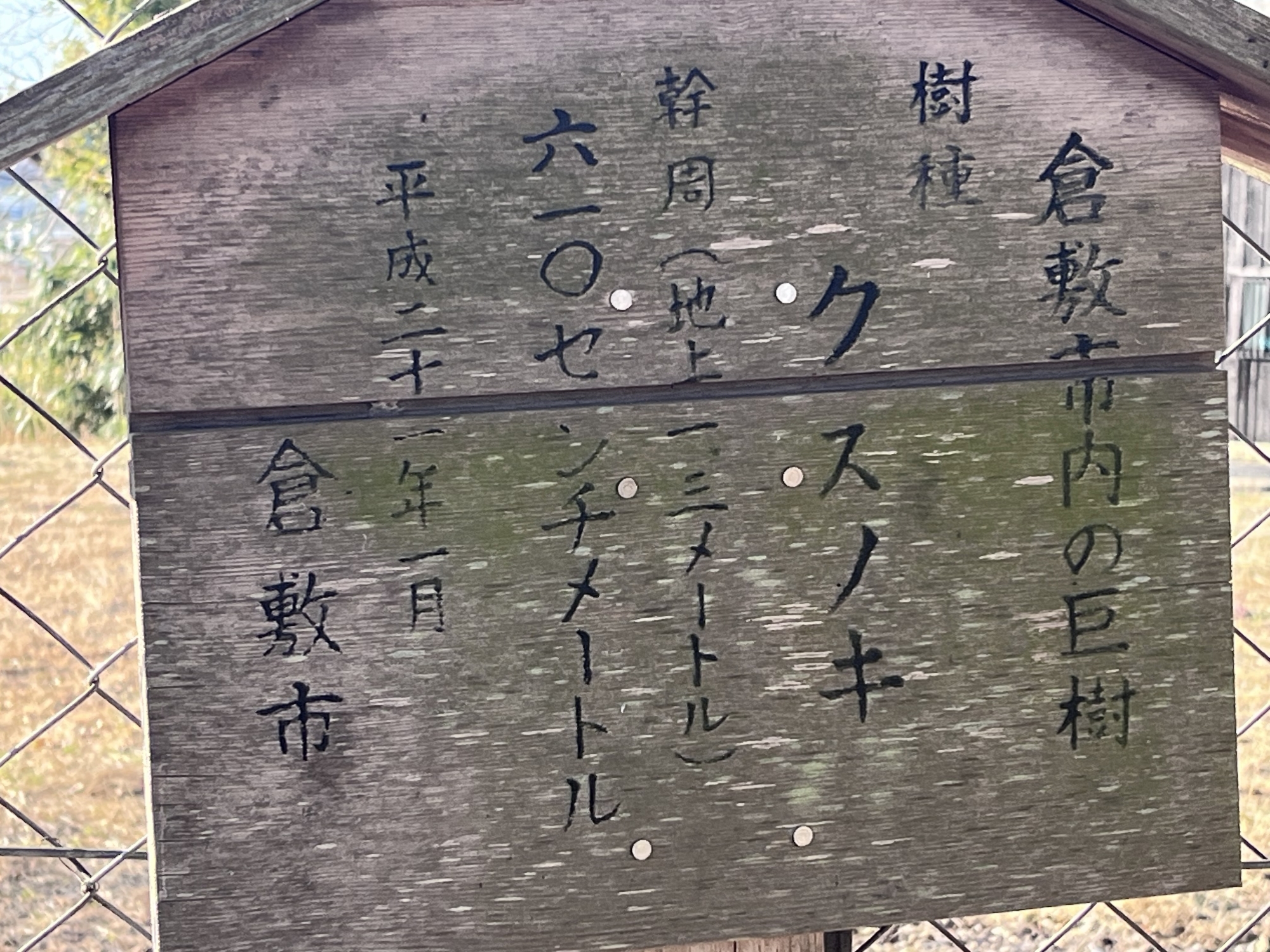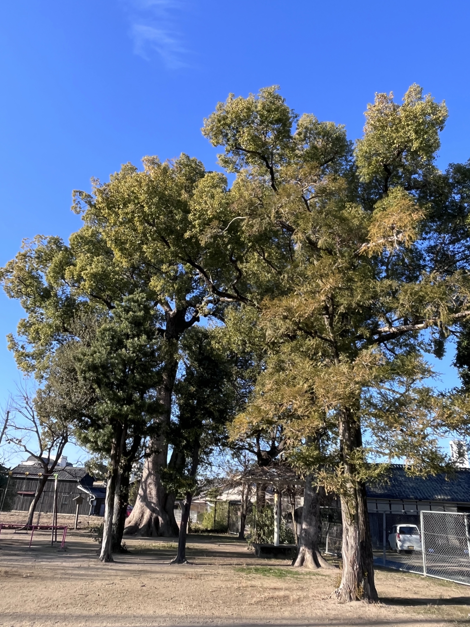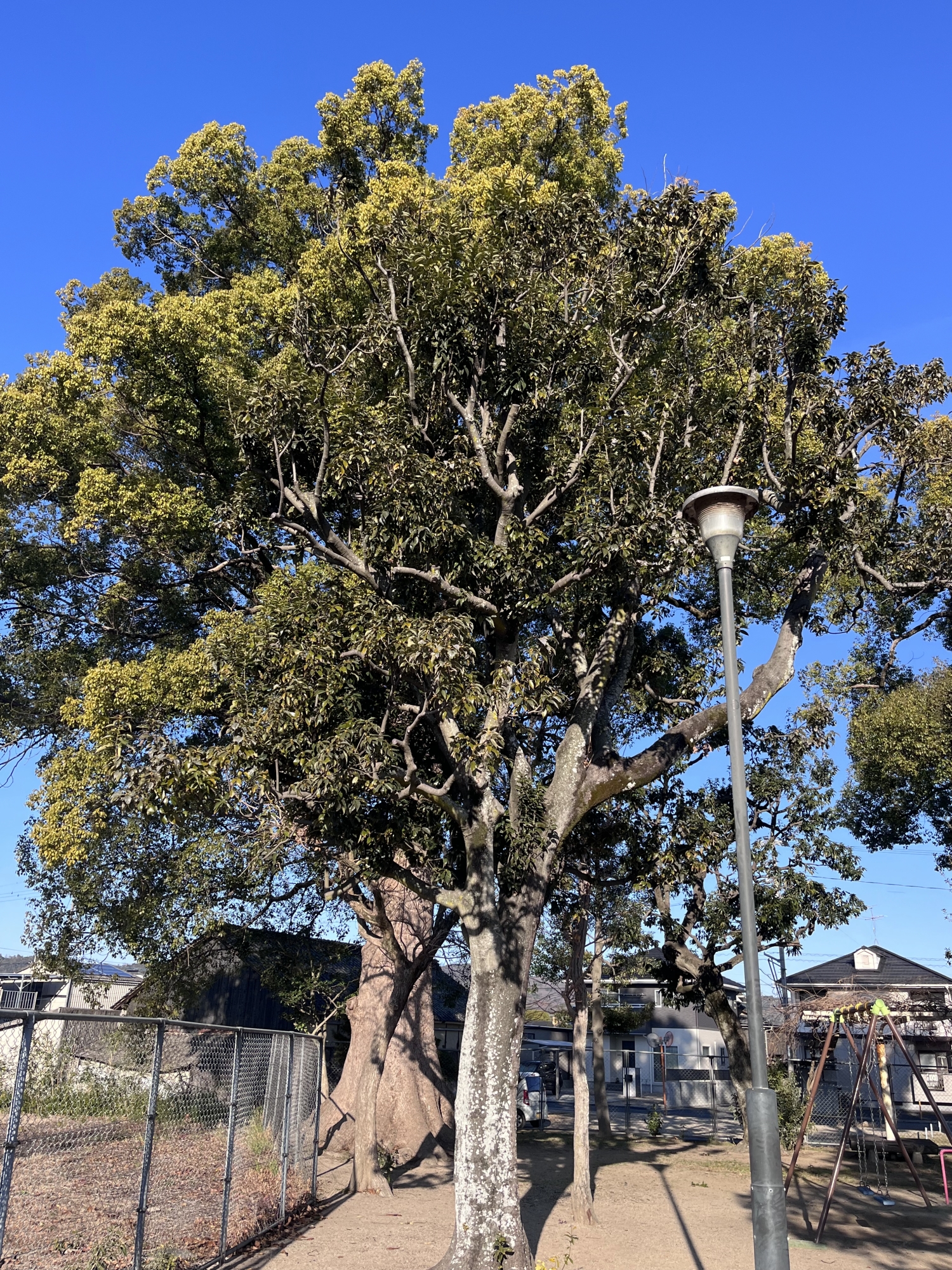 いつも気になっていた大木~倉敷市の巨樹「クスノキ」だそうで、ここは庄楠遊園.