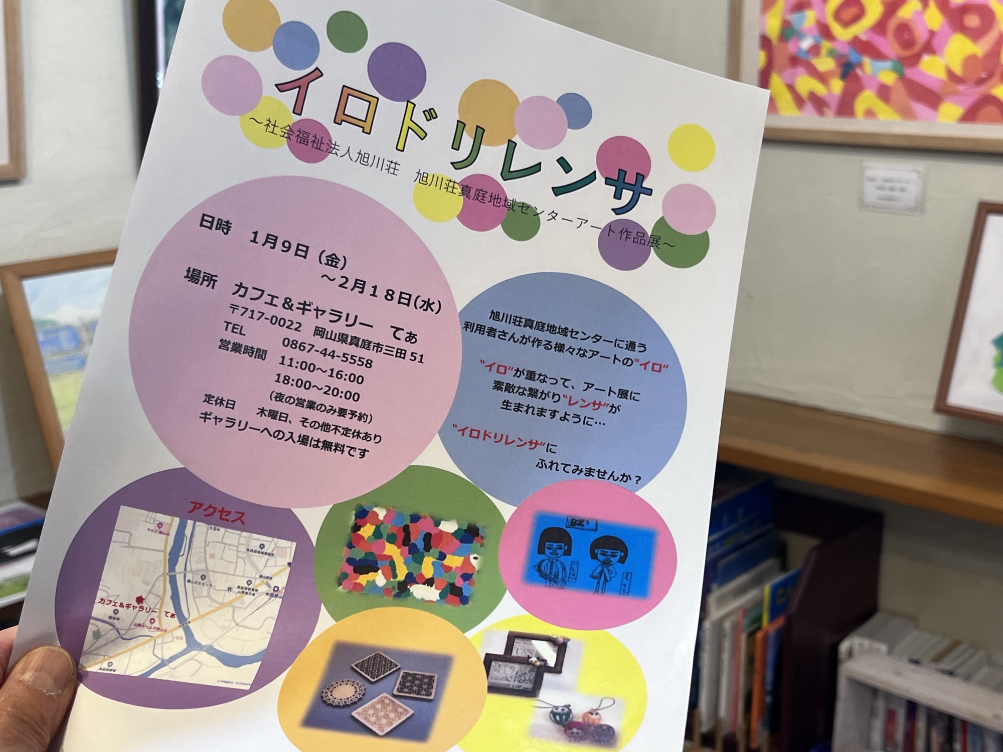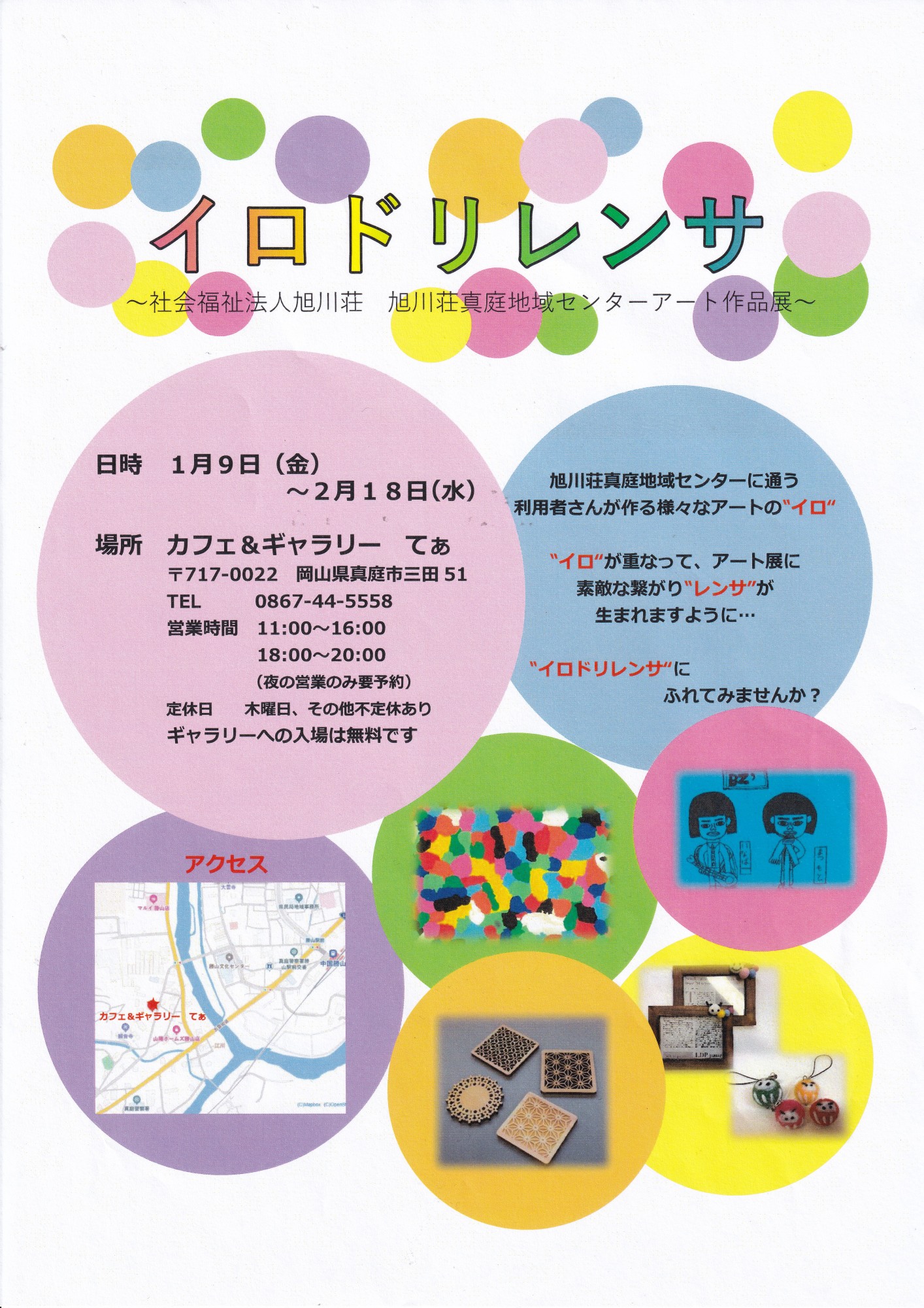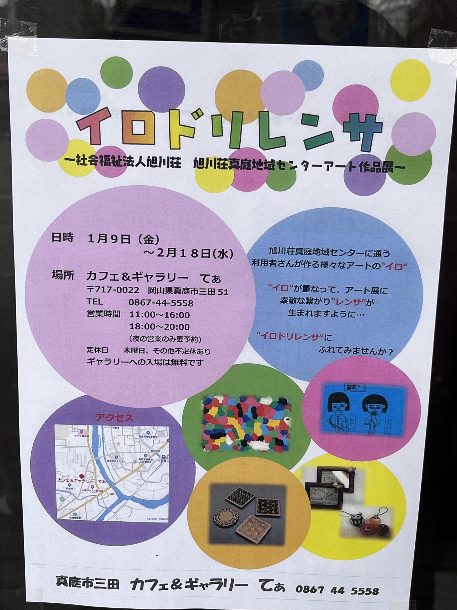 旭川荘の真庭地域センター(湯原にあるとのこと)アート作品展「イロドリレンサ」です.