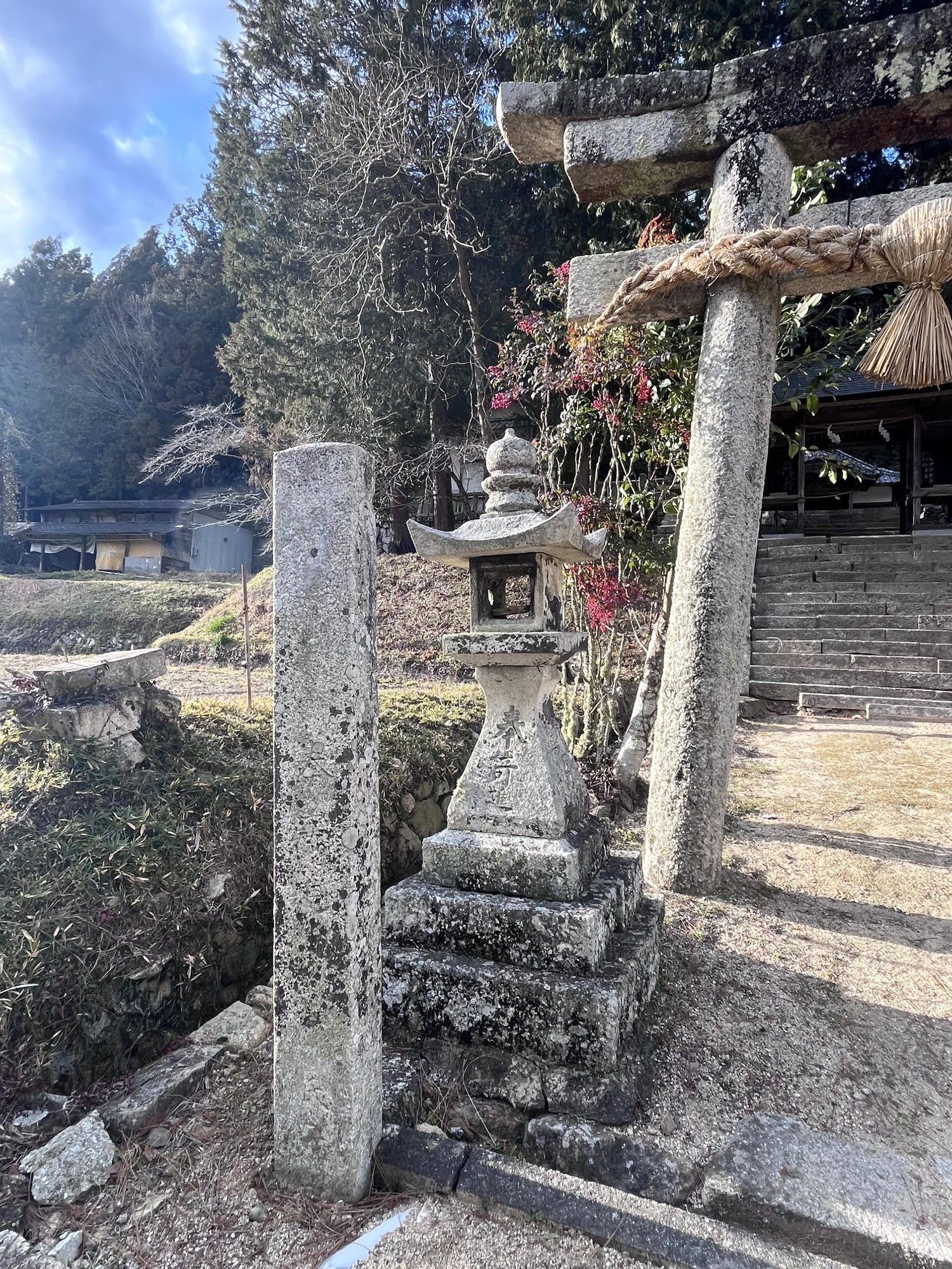 【延喜の制、小社に列し、本国総社神明帳に従四位下鴨明神と載せている。虎倉城主伊賀氏が天文十年に社殿を造営し社領を献じた。】