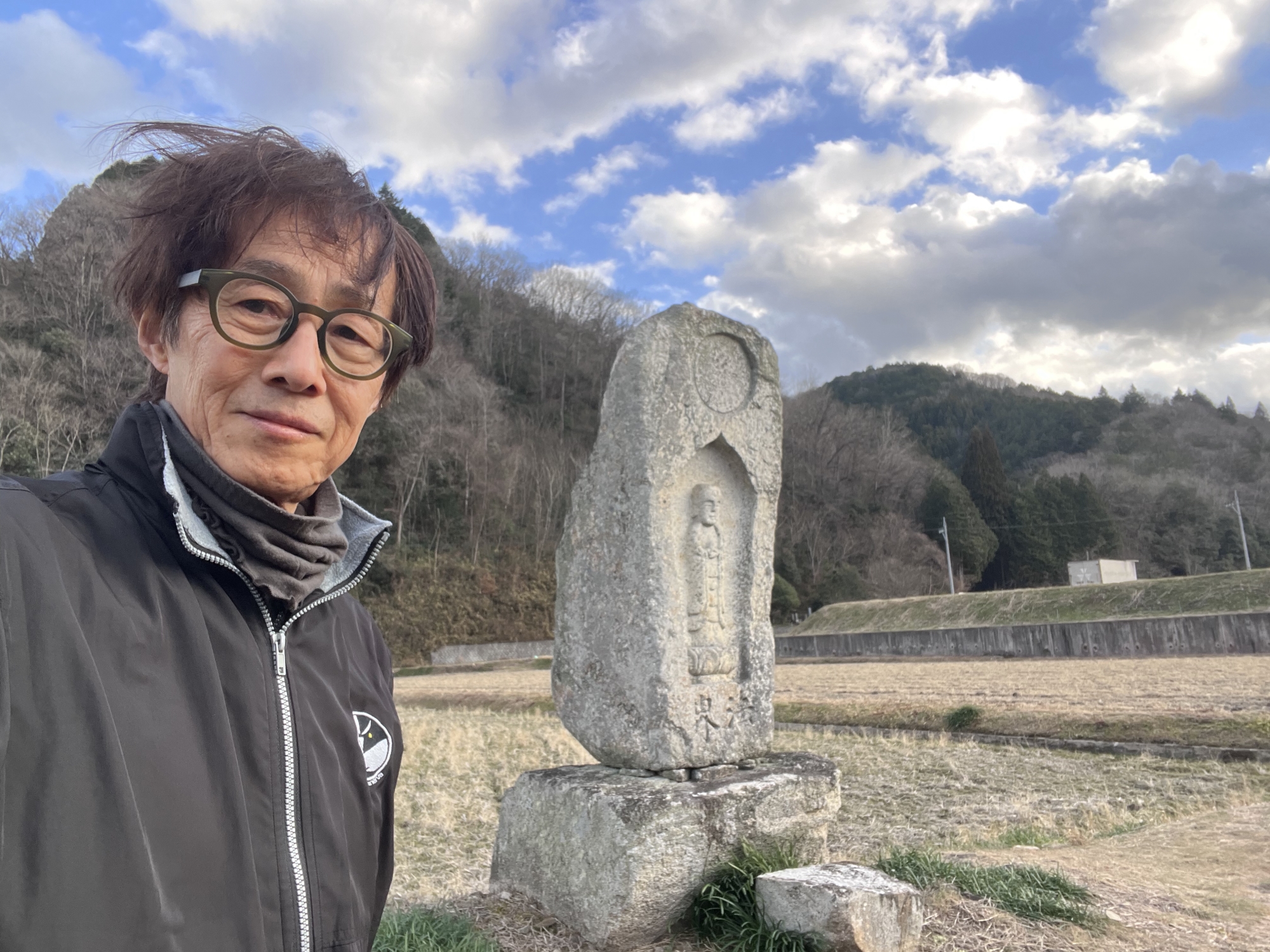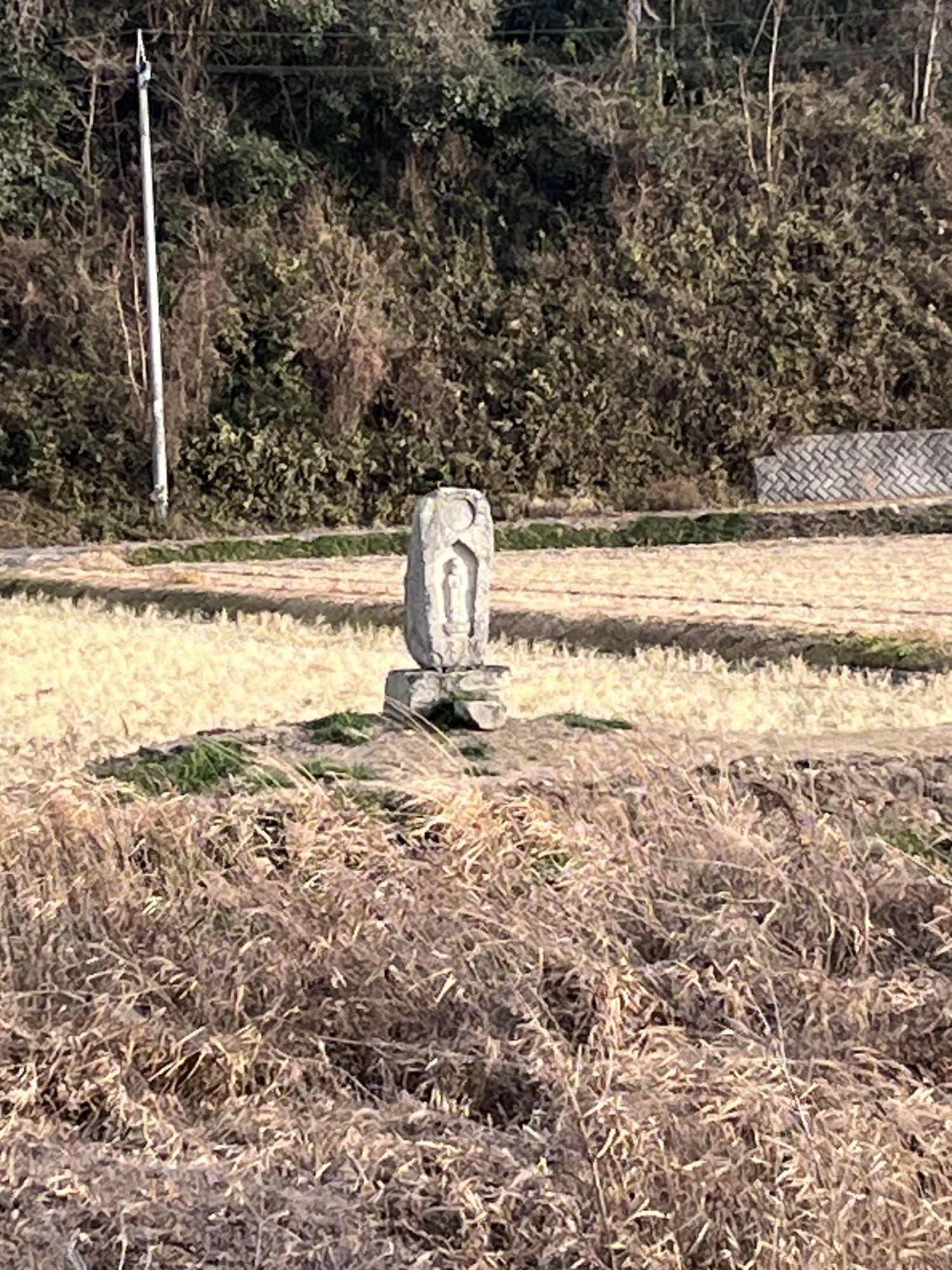そして、川の向こうの小さな土手に、碑かと思ったら、なんだか、お地蔵様みたい.
