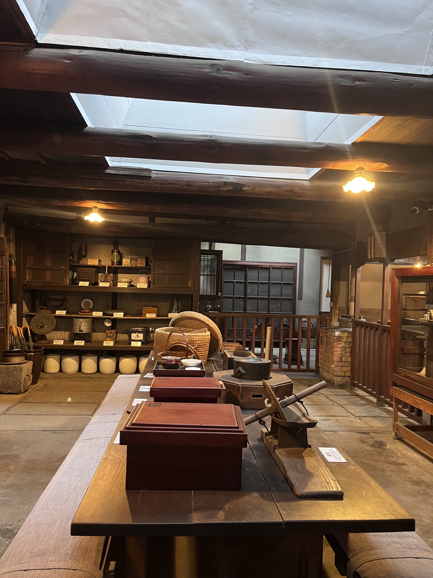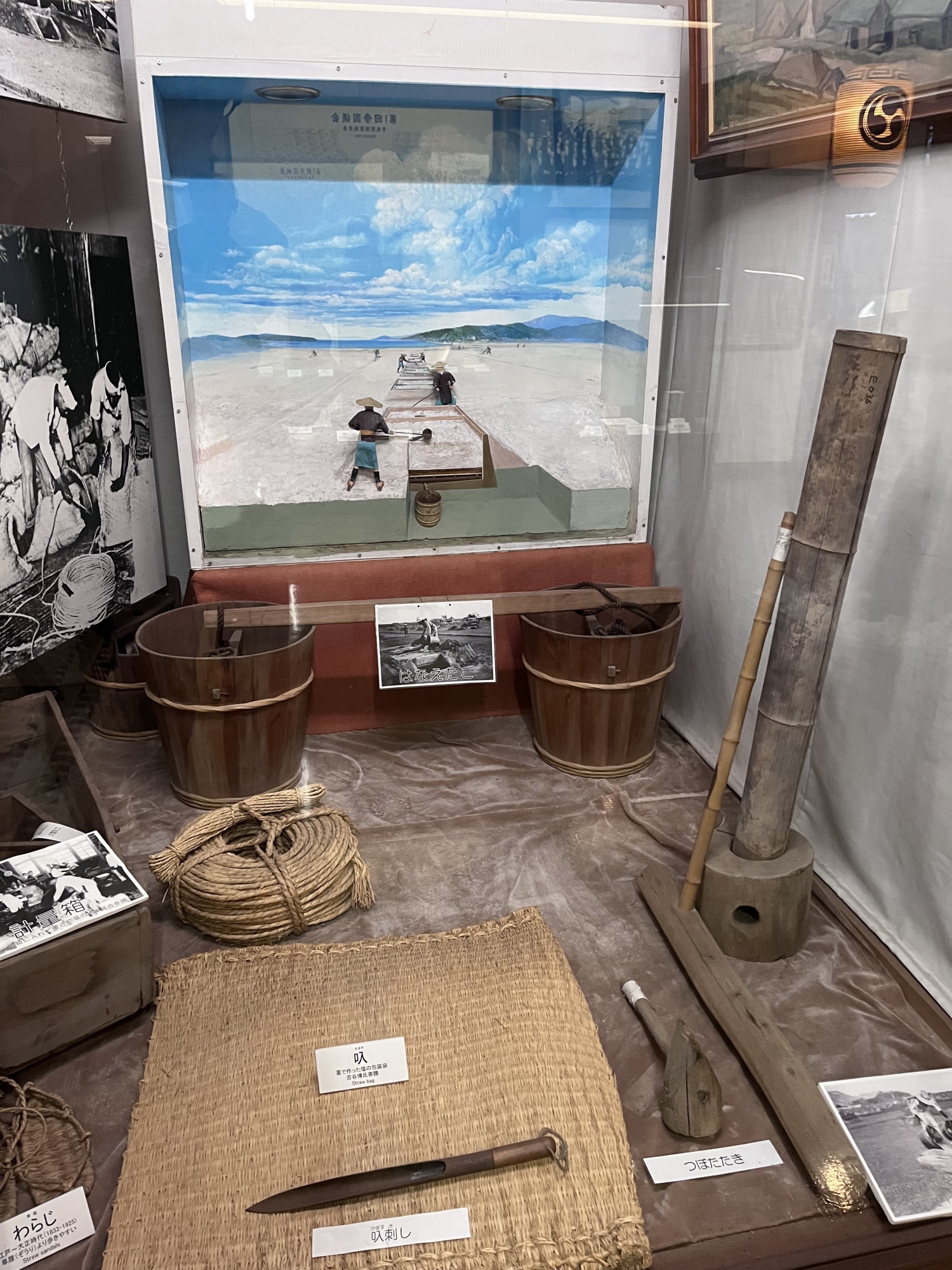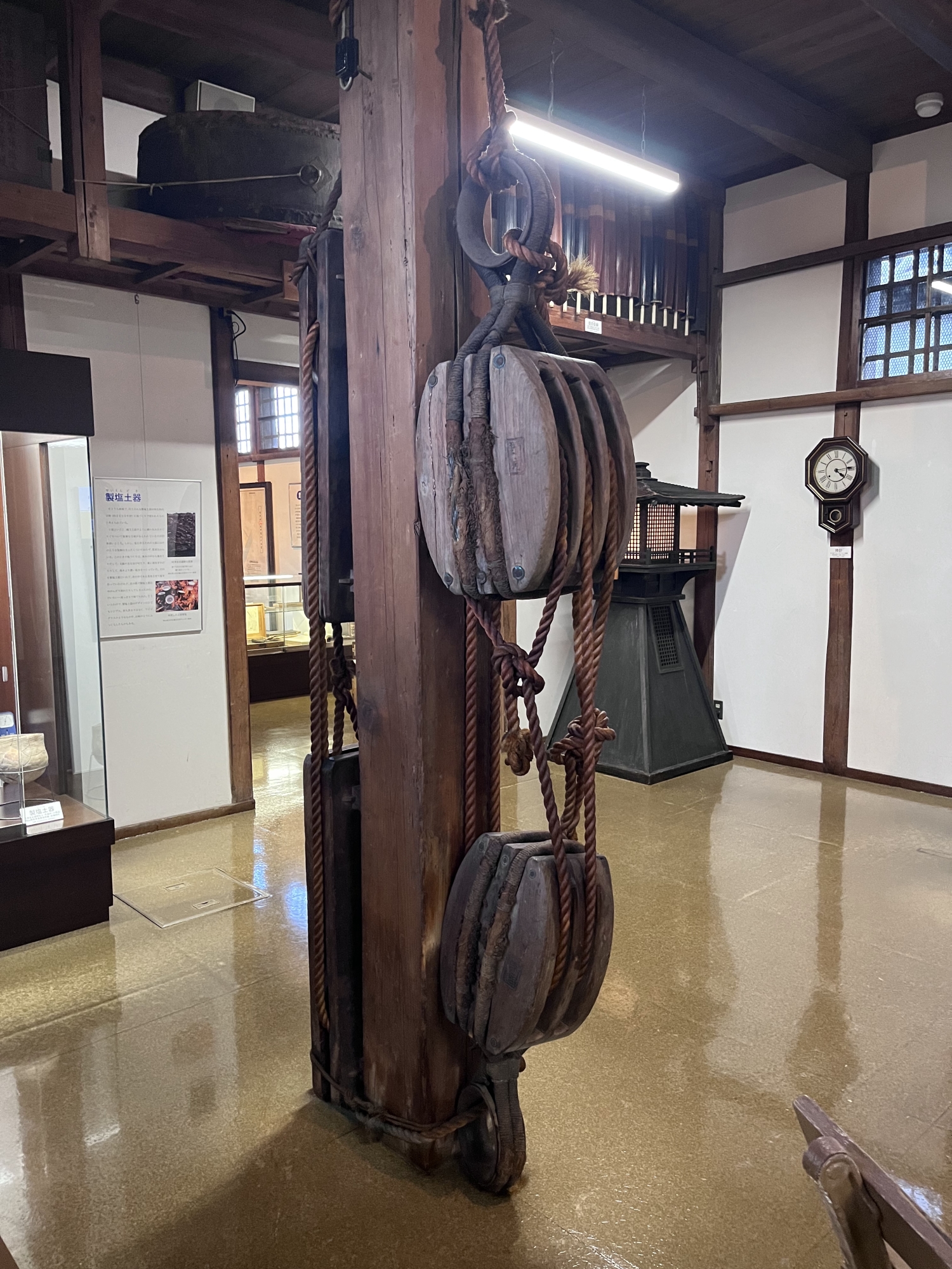 中庭から、別の展示室へ……塩田や野崎家の歴史.