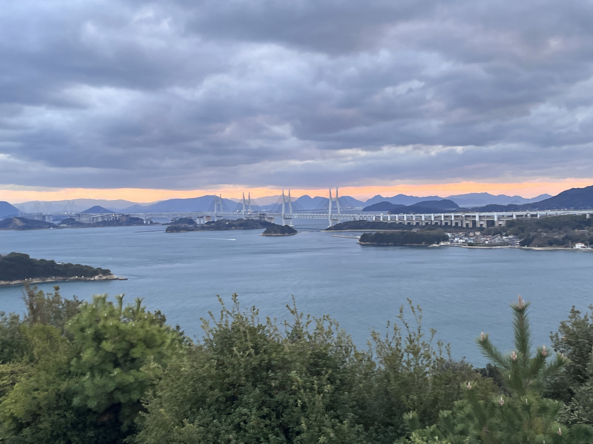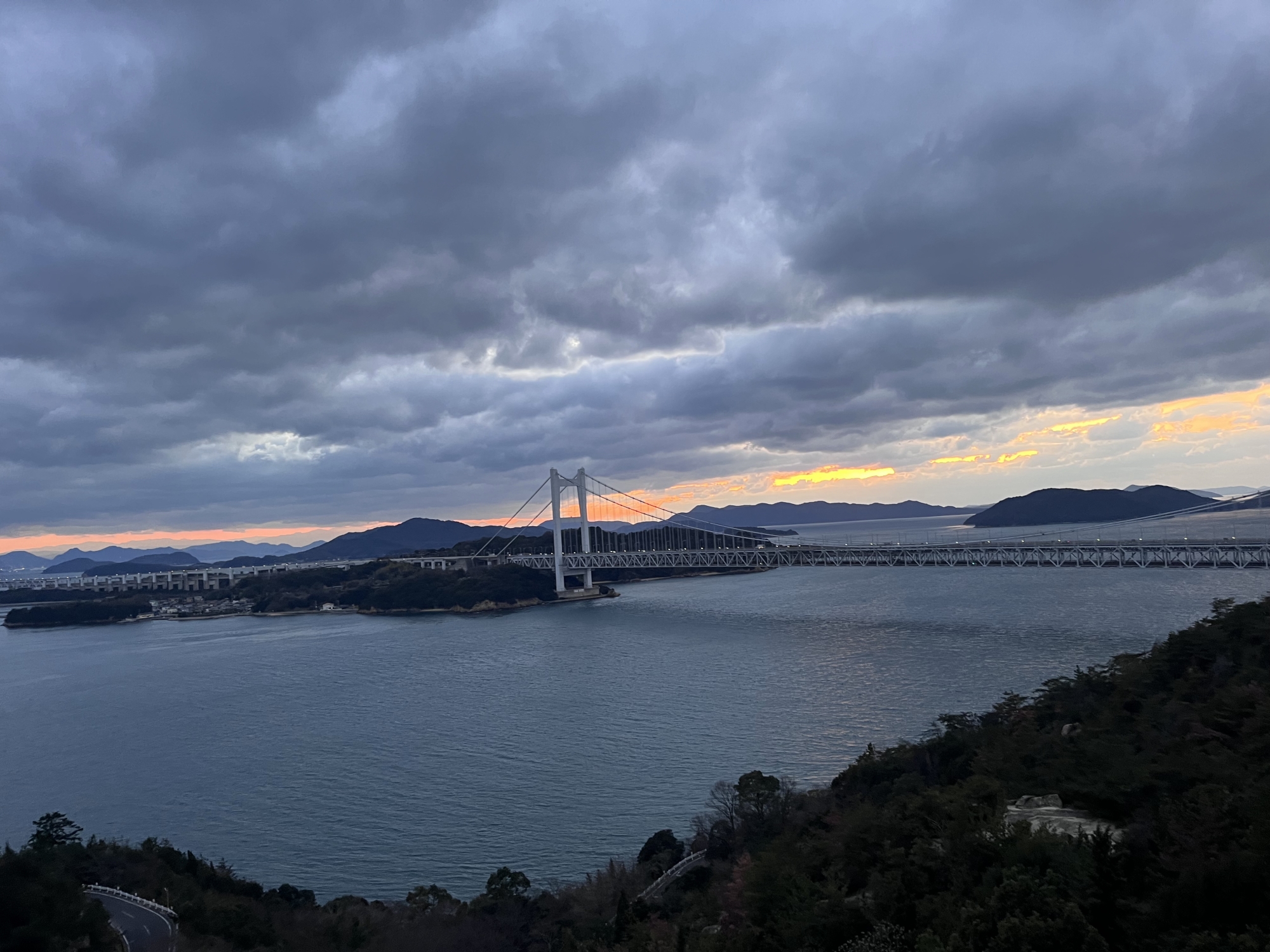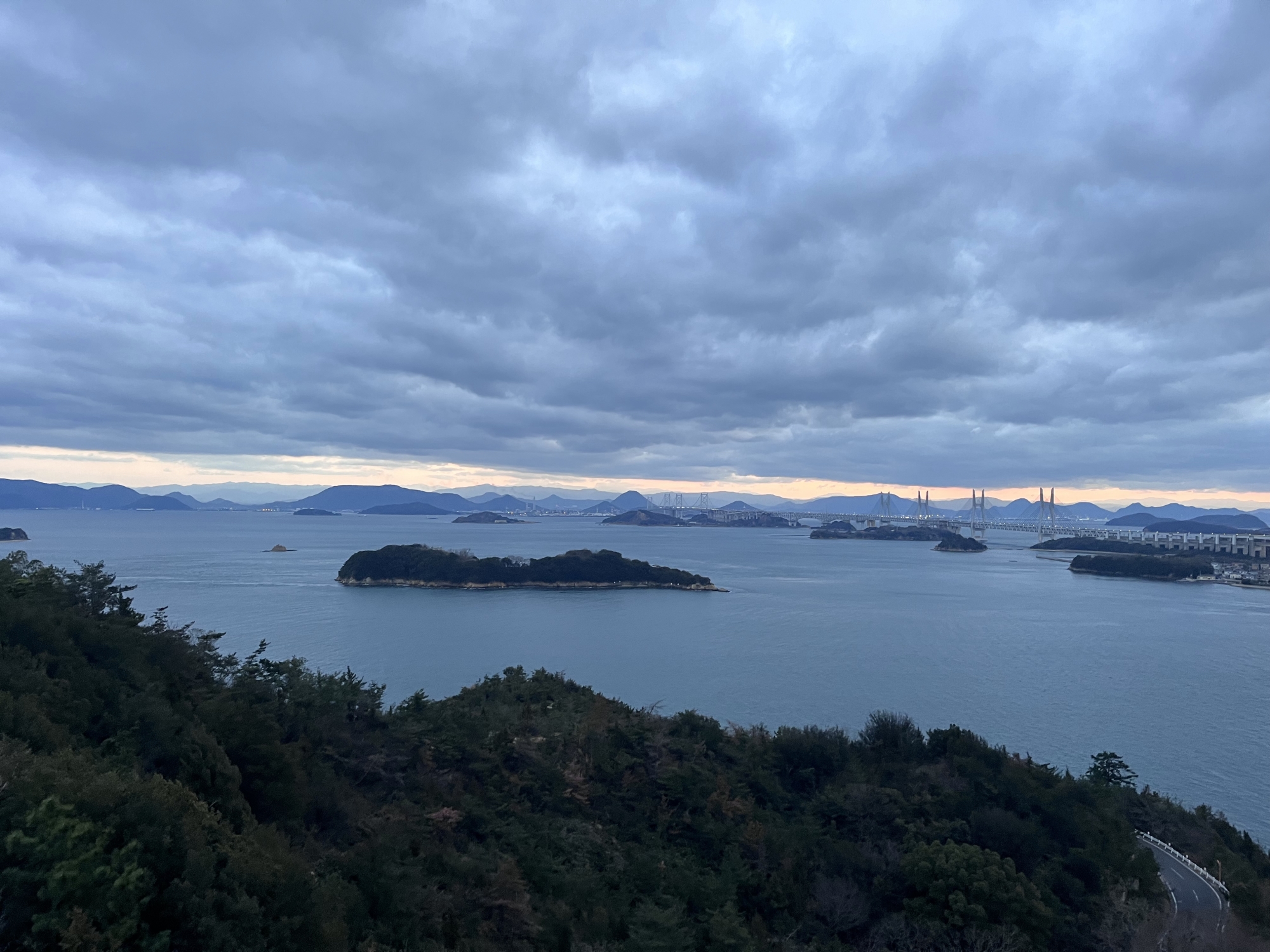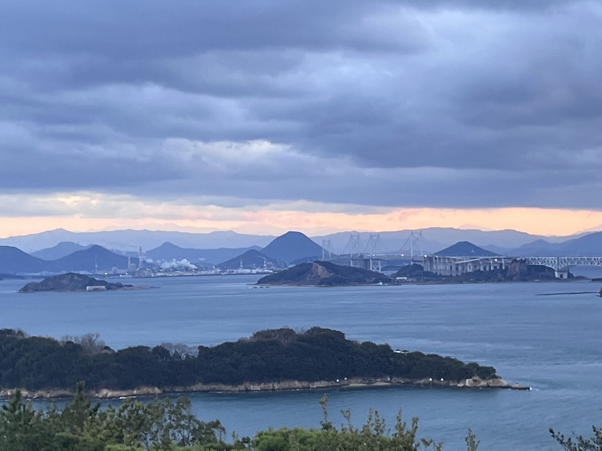 鷲羽山展望台……生憎、雲が多くって夕陽は観れませんでしたが、それでも、瀬戸大橋も含めて、良い情景.