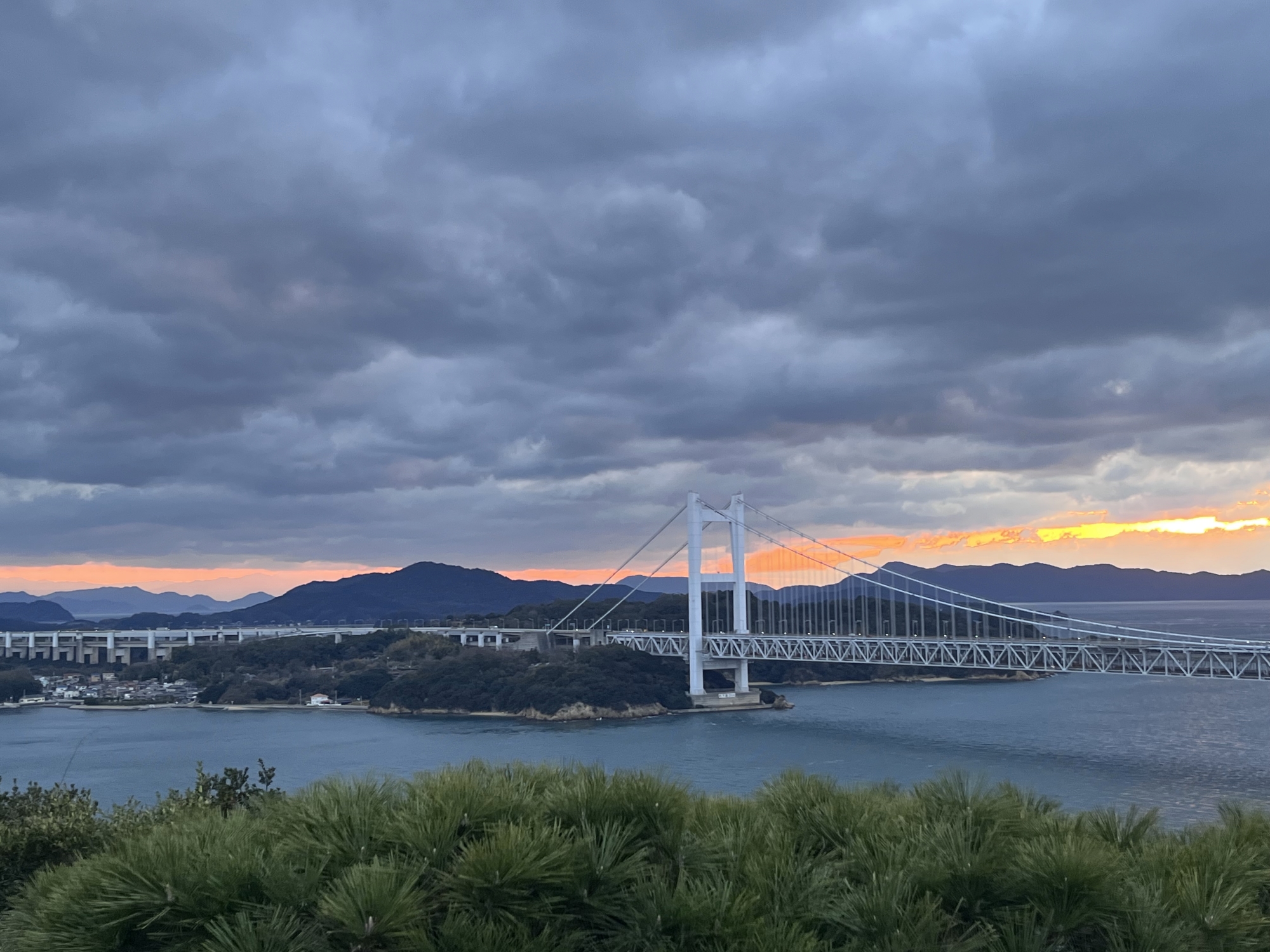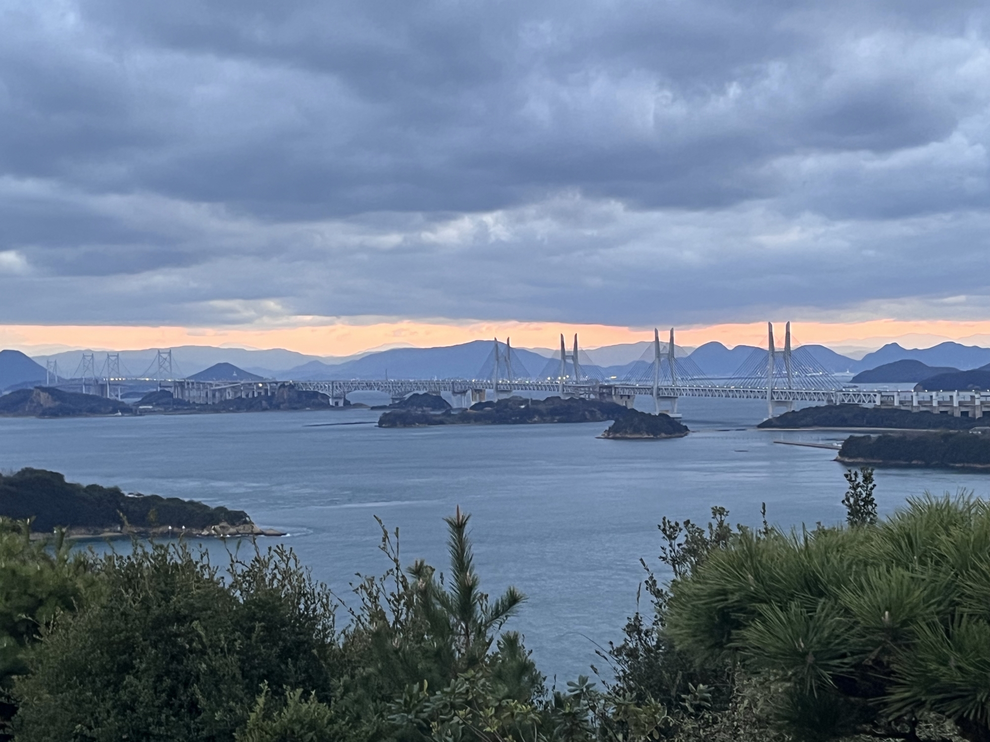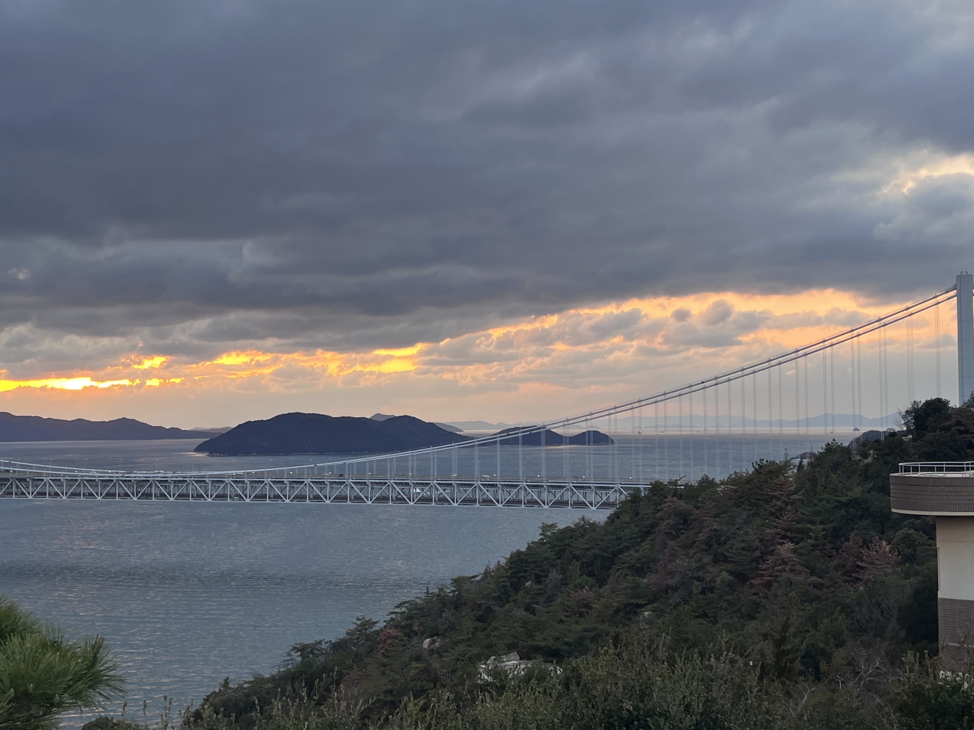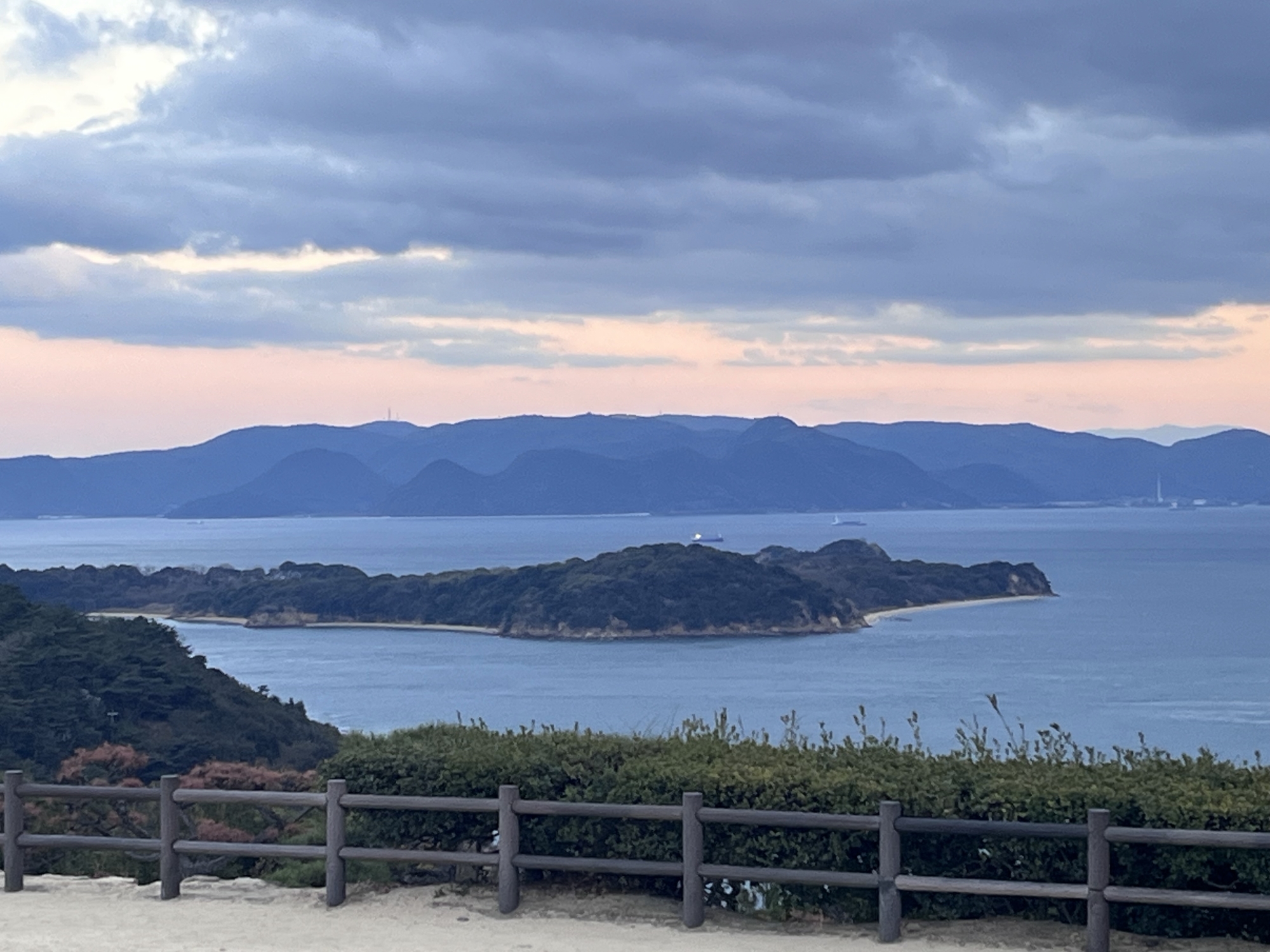 鷲羽山展望台……生憎、雲が多くって夕陽は観れませんでしたが、それでも、瀬戸大橋も含めて、良い情景.