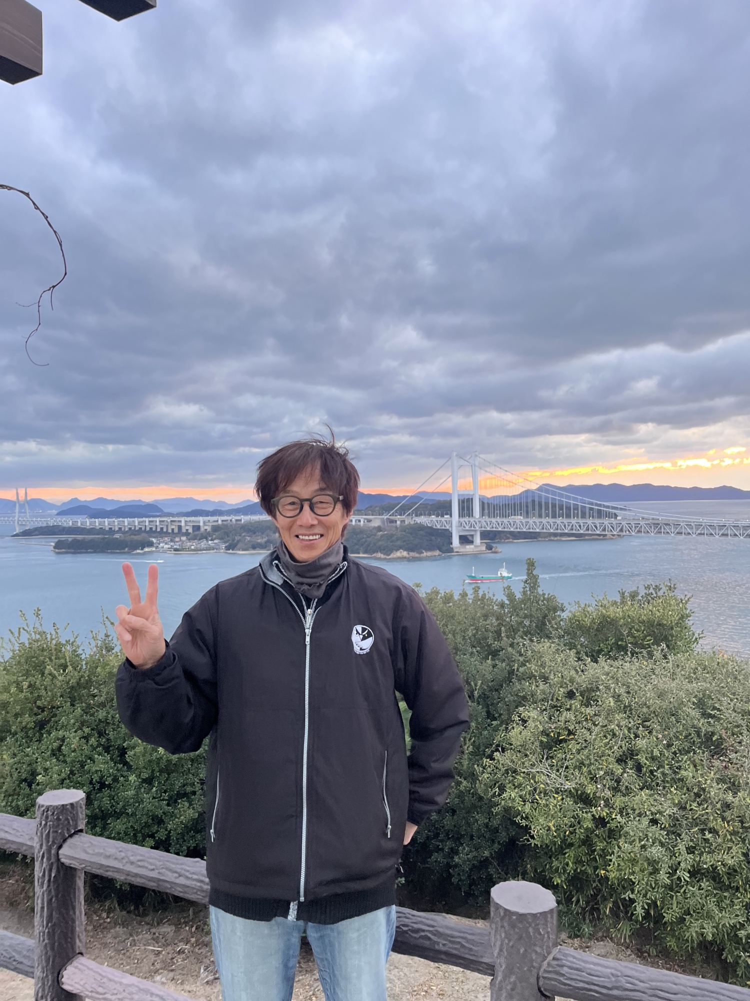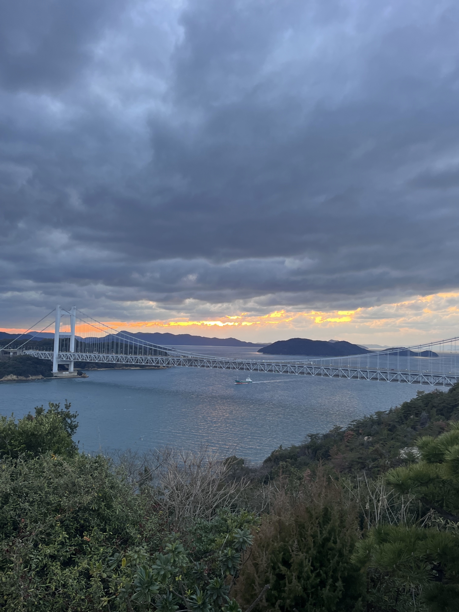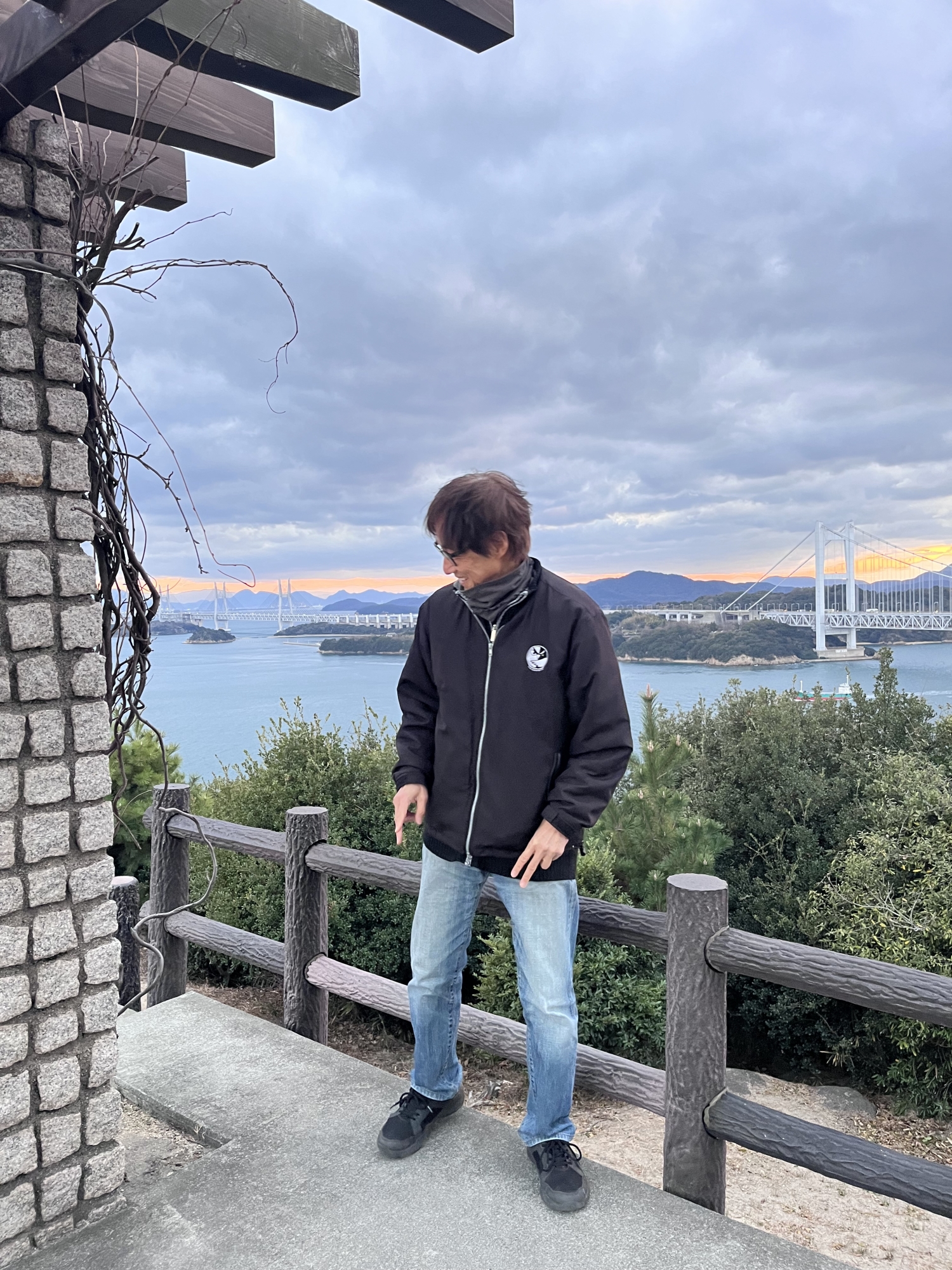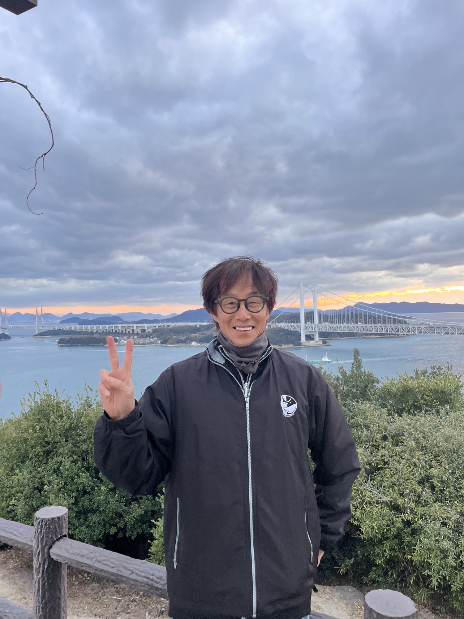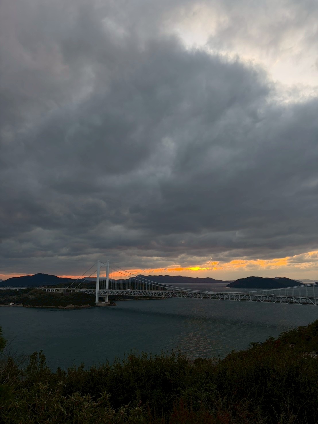 鷲羽山展望台……生憎、雲が多くって夕陽は観れませんでしたが、それでも、瀬戸大橋も含めて、良い情景.