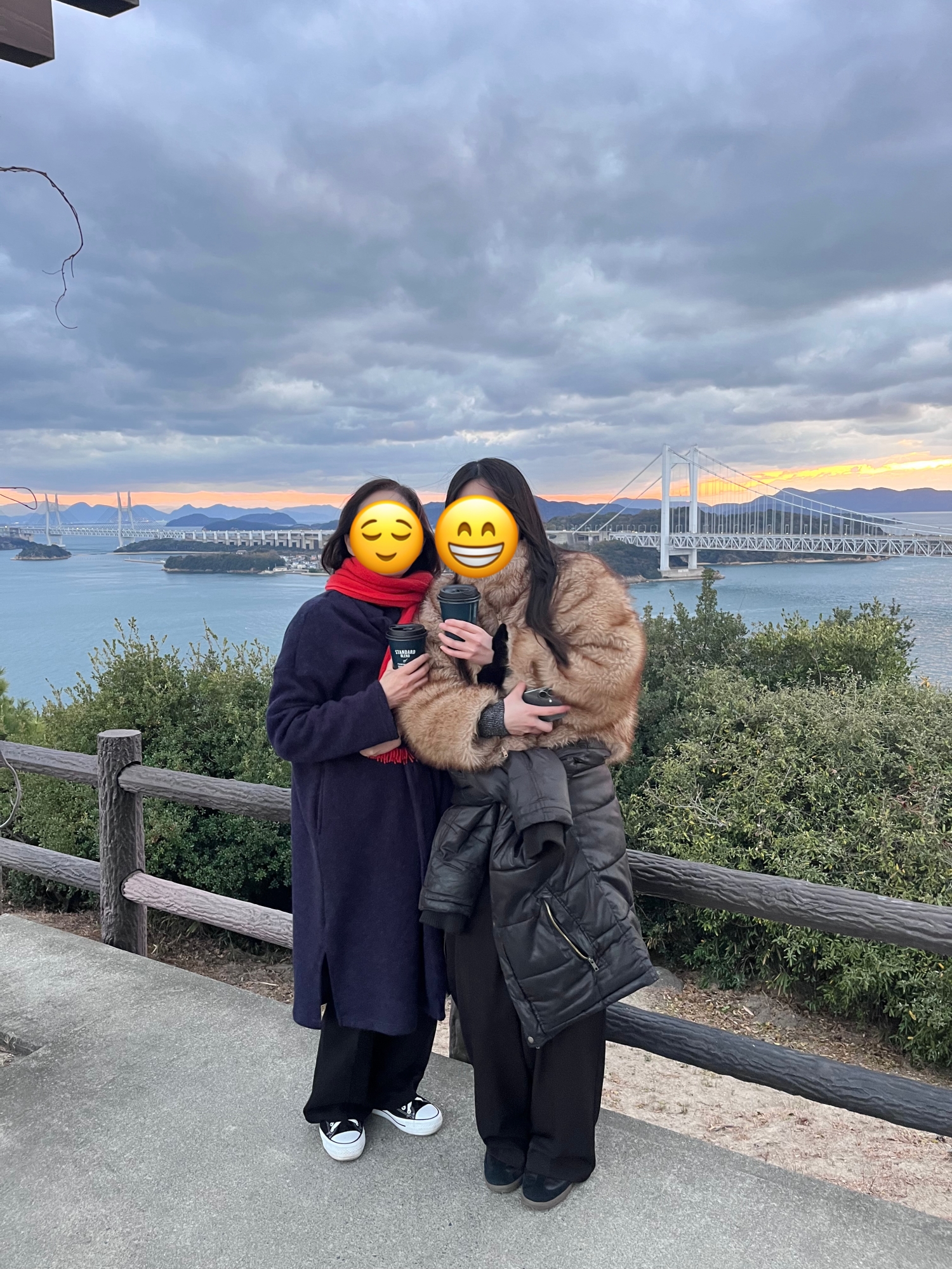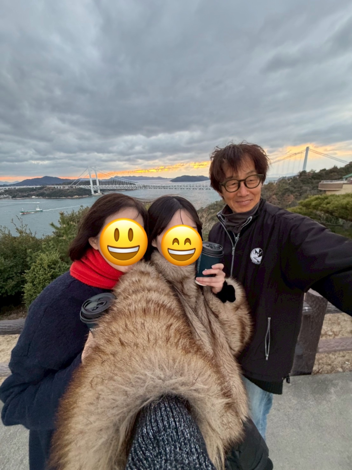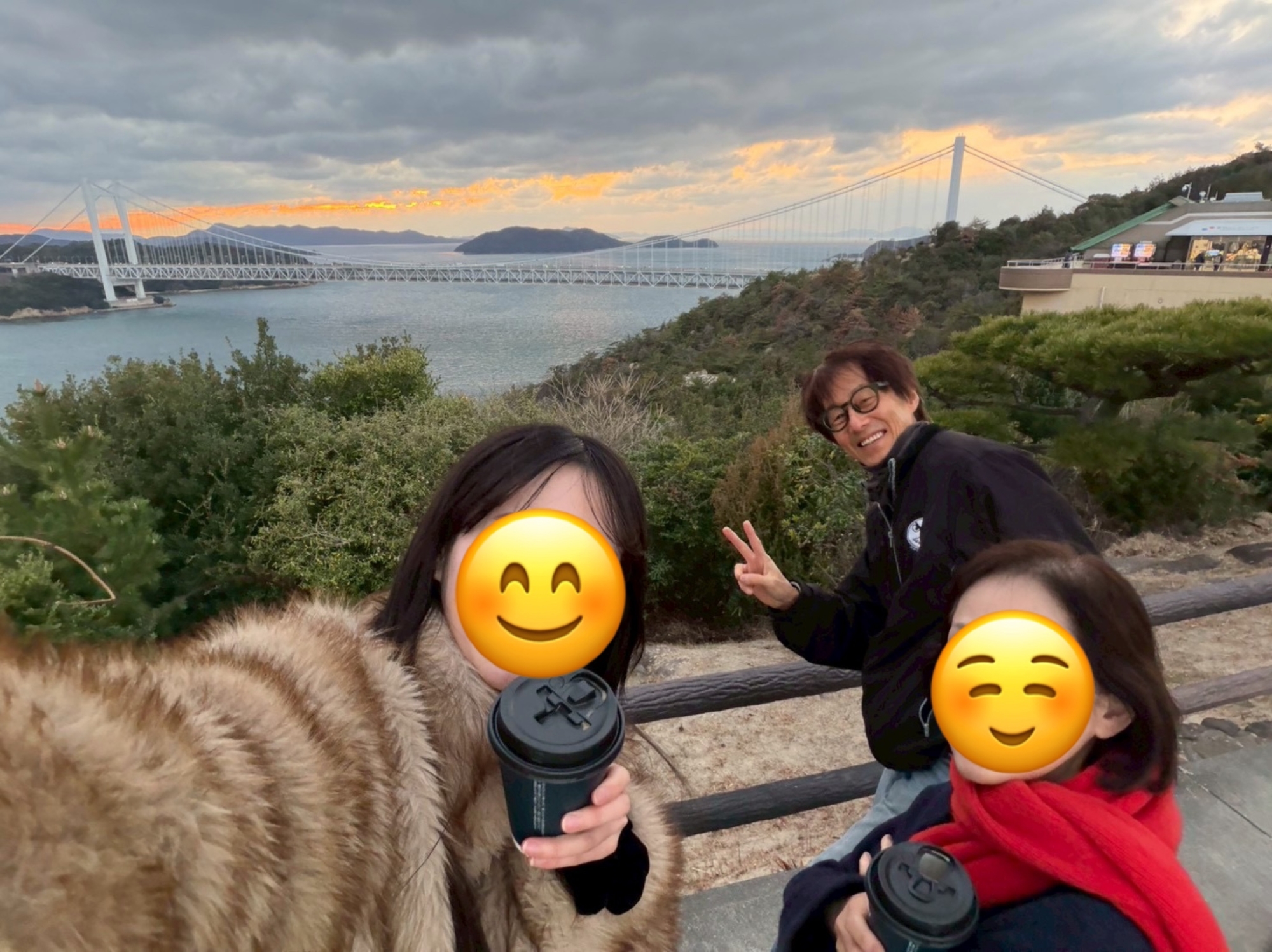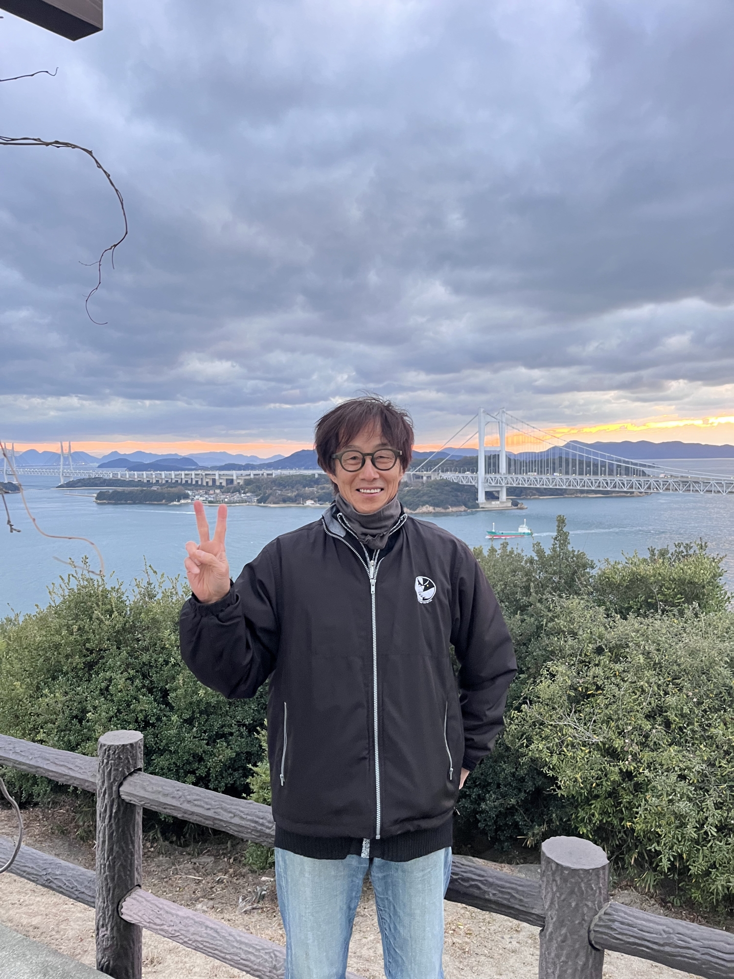鷲羽山展望台……生憎、雲が多くって夕陽は観れませんでしたが、それでも、瀬戸大橋も含めて、良い情景.