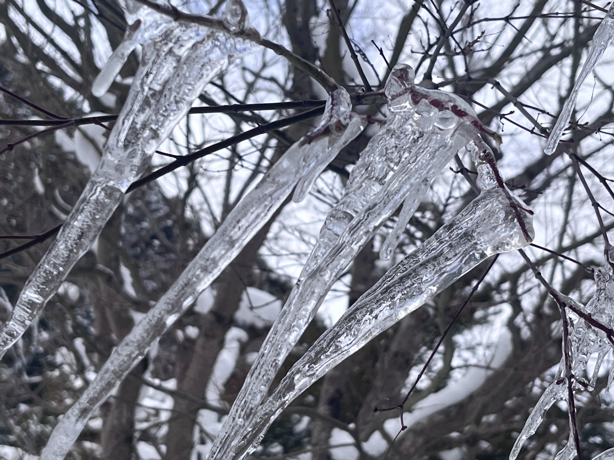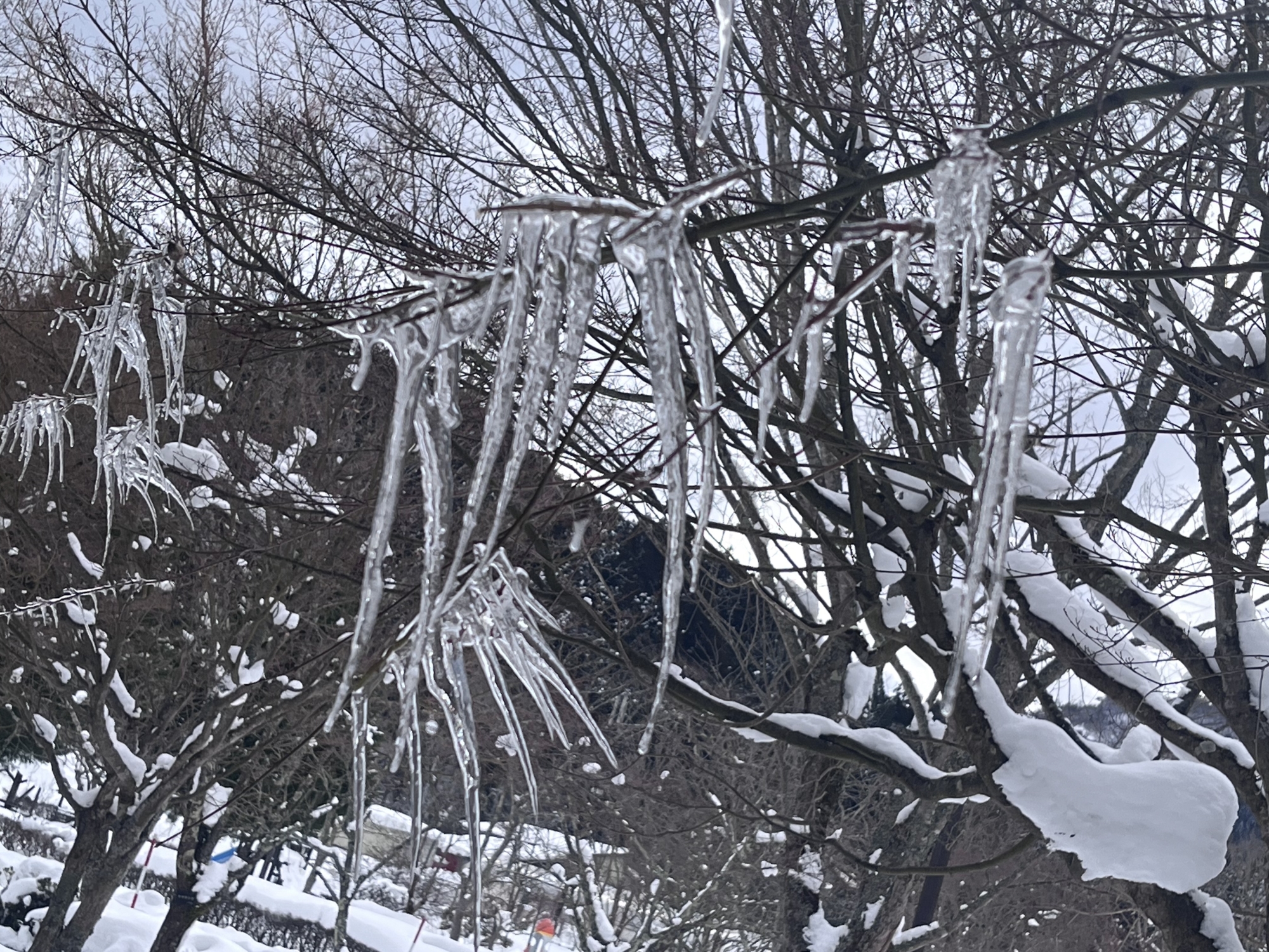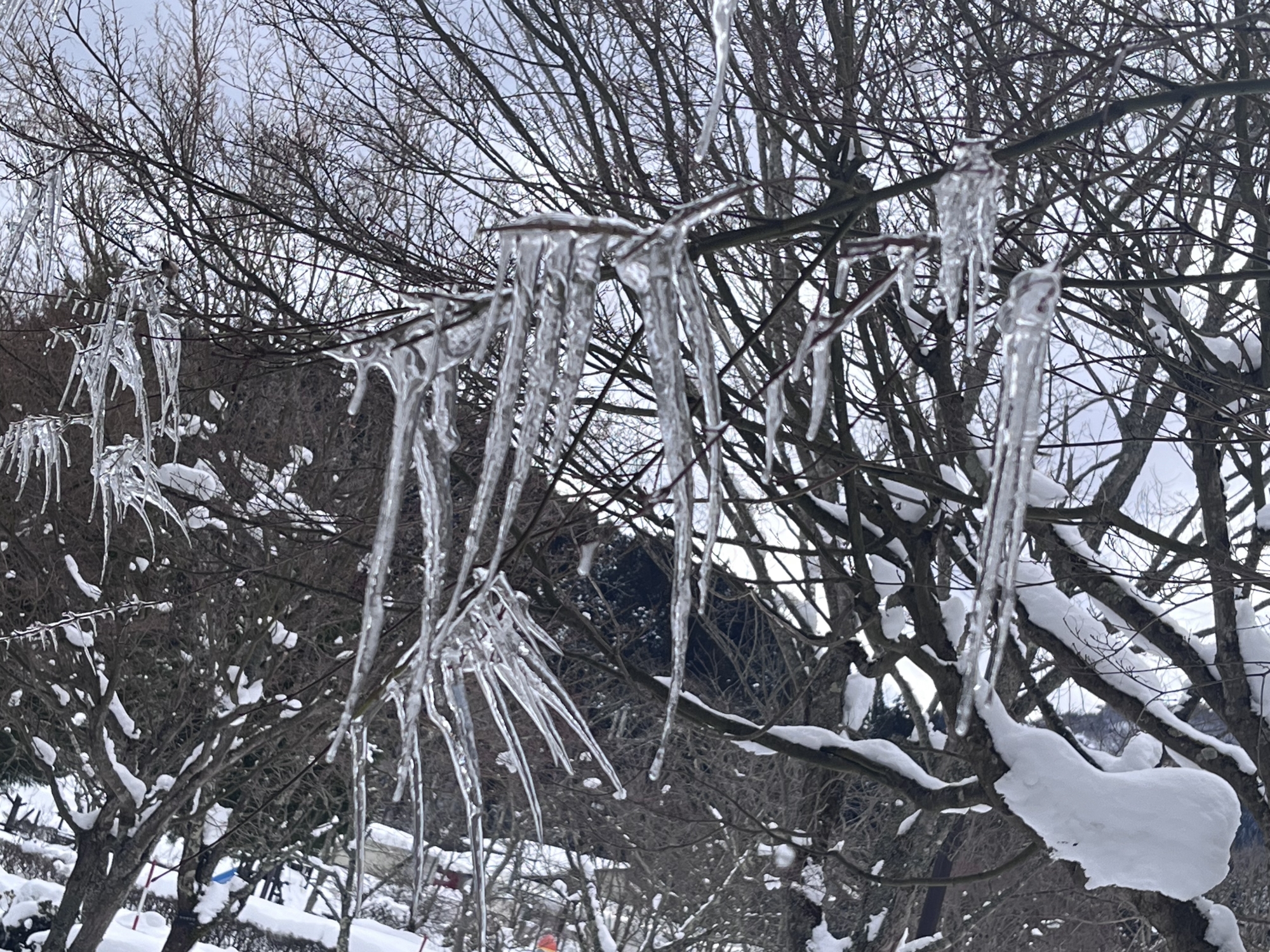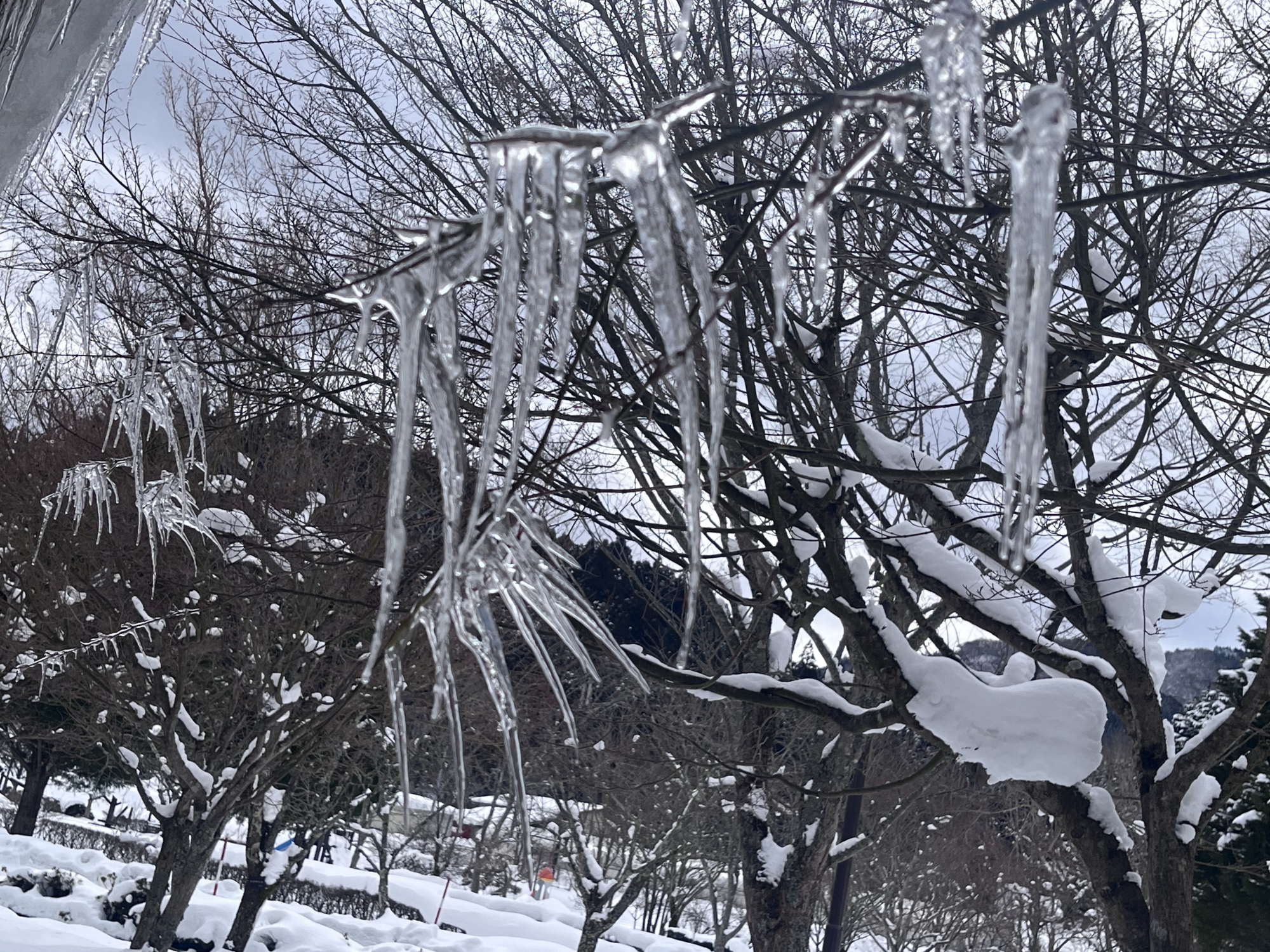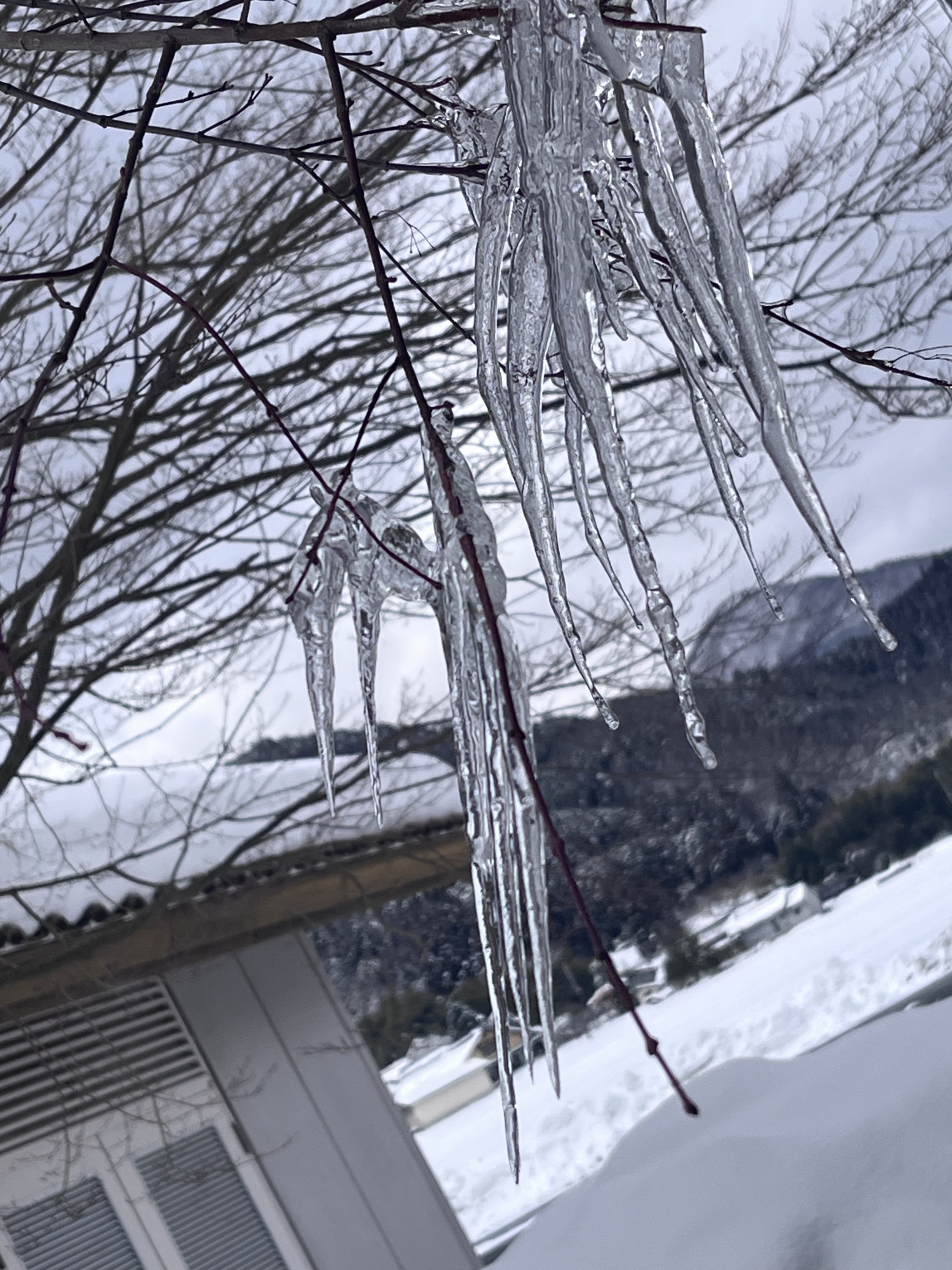 そして.デイサービスの所の氷柱~の、紅葉の枝の氷柱.