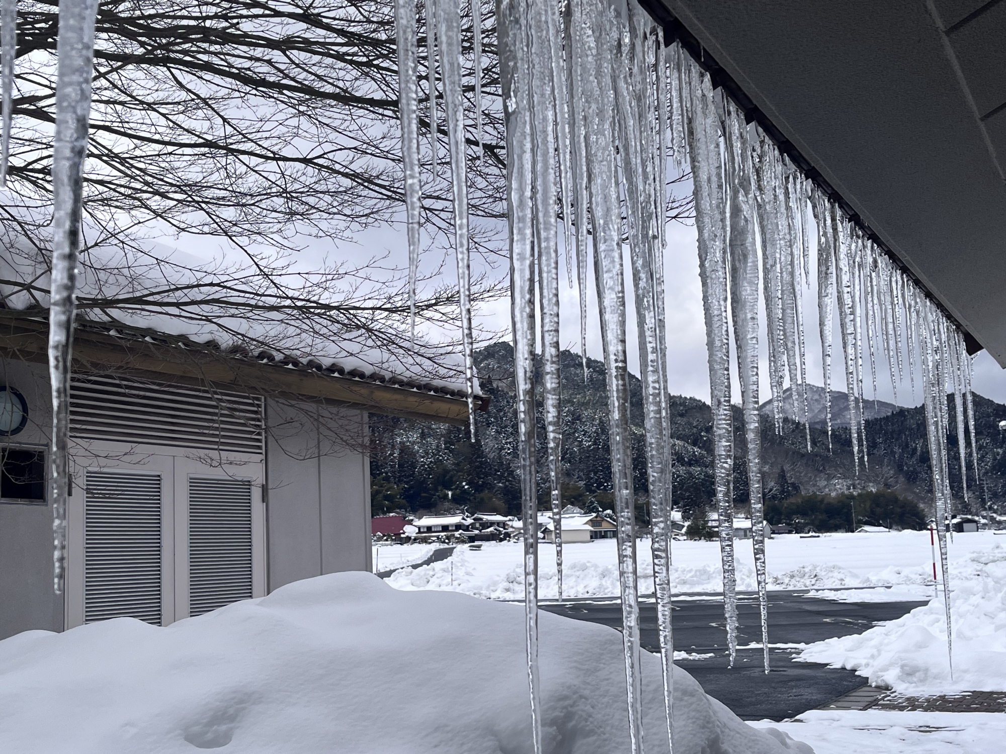 所長室の窓からの氷柱.