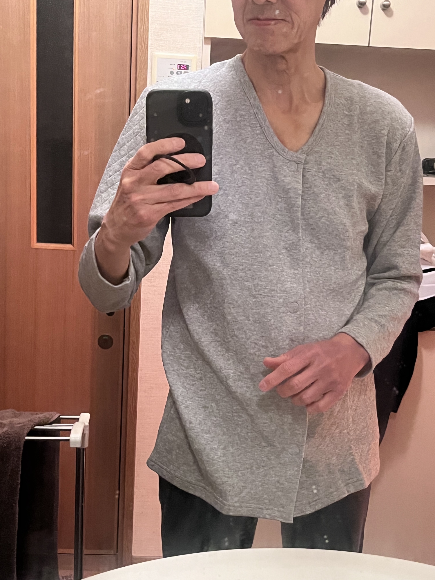 受傷から8日目……下着のLongTシャツはずっとそのままだったけど、痒くなったりもしてきて、また、右手首の先の動きや軽くもつ作業でも上腕の筋肉の痛みが軽減してきたし、さらに、外傷はないはずなのと、介護用の前開きマジックてーっぷのシャツも届いたので、入浴しようと脱いでいたら……皮下出血の跡が、なかなか派手派手感強い!!! 三角巾とバストバンドも対応できた.