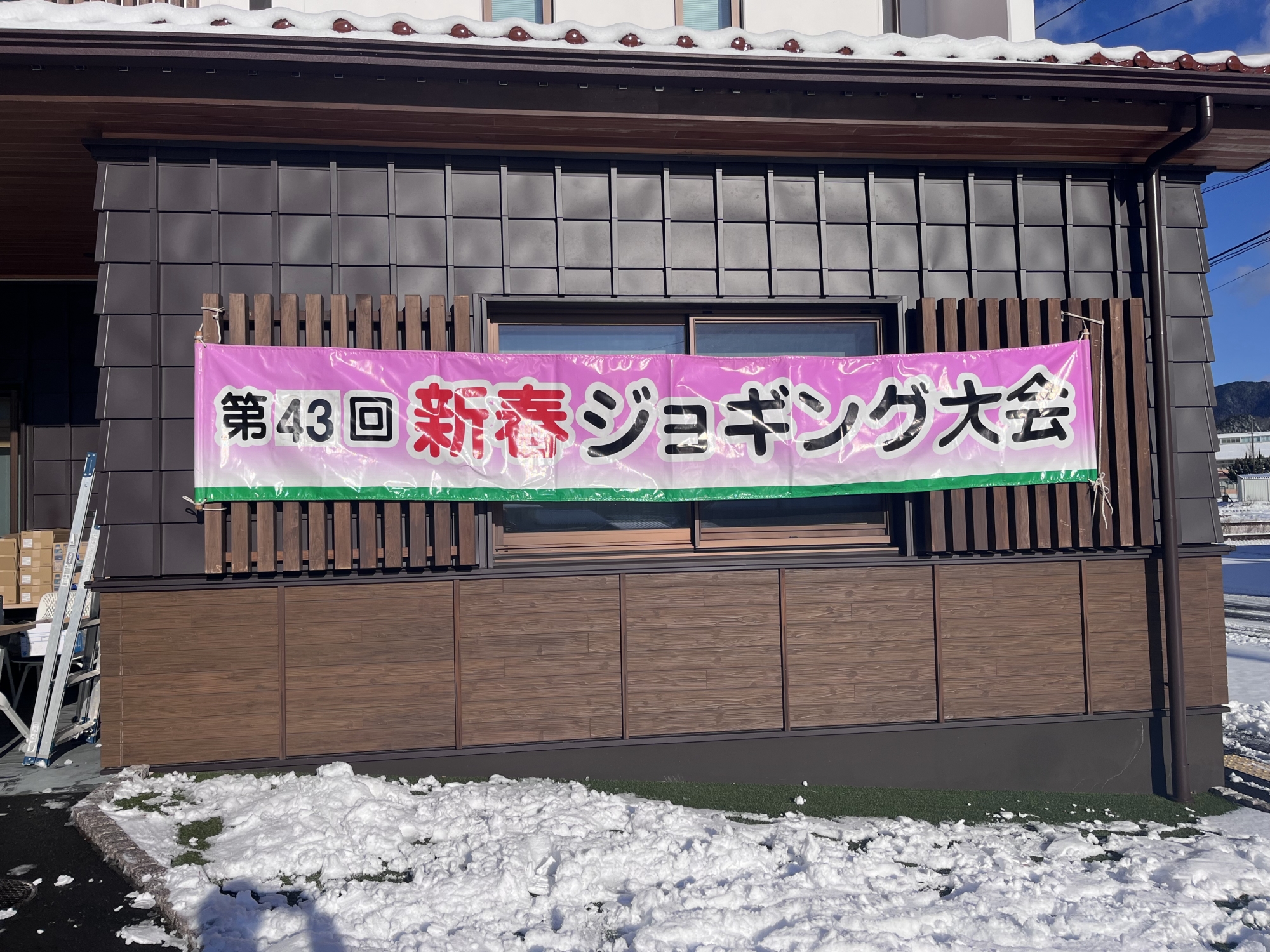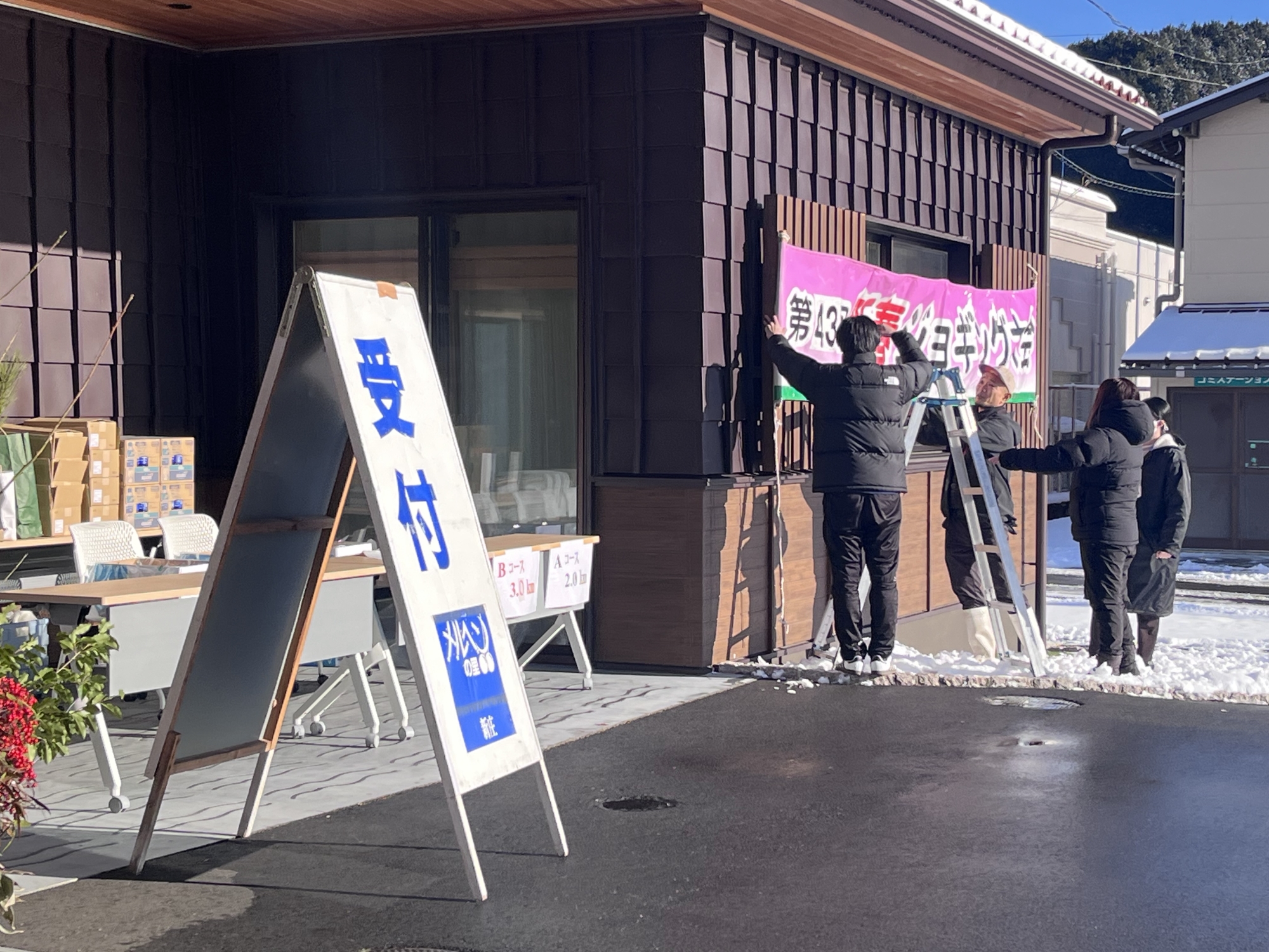 雪掻きもして、そして、ジョギング大会のスタッフで…….