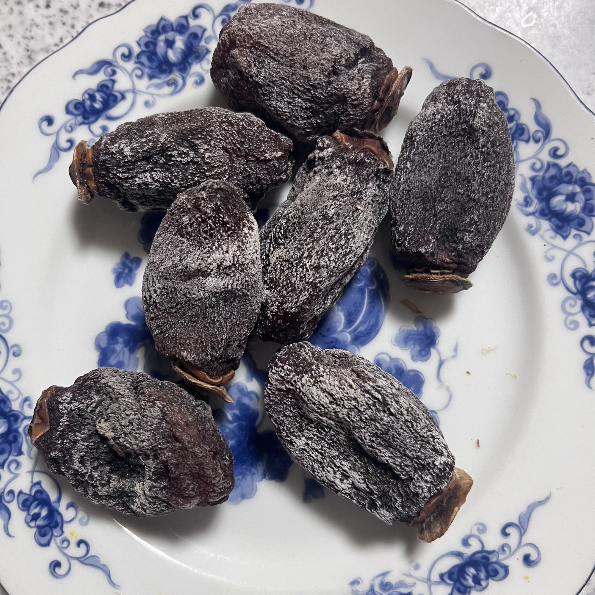 今朝は、結構積もったし、また、ちょっと重めで、1時間、雪掻きに掛かりました……と、Iさんから吊るし柿!! 感謝、旨い.