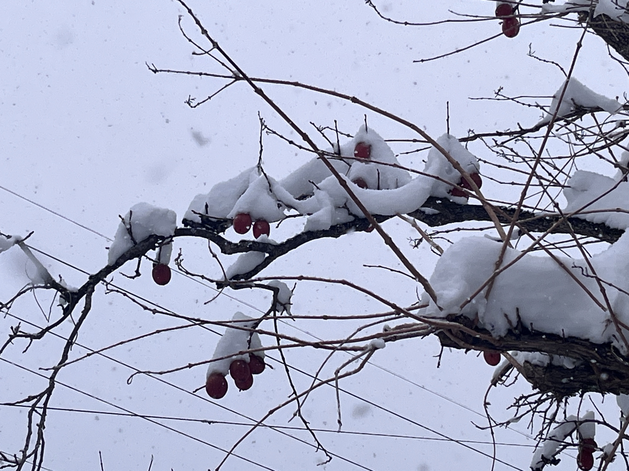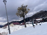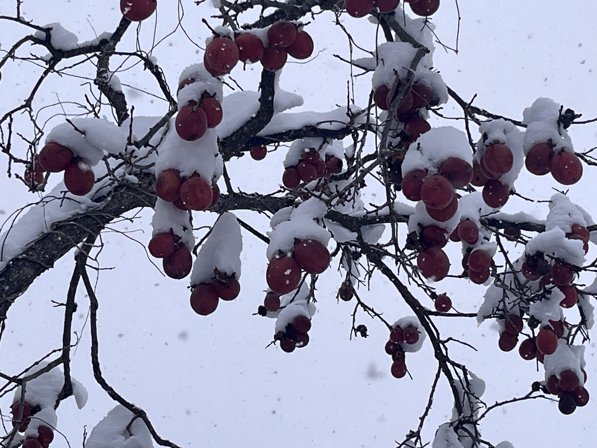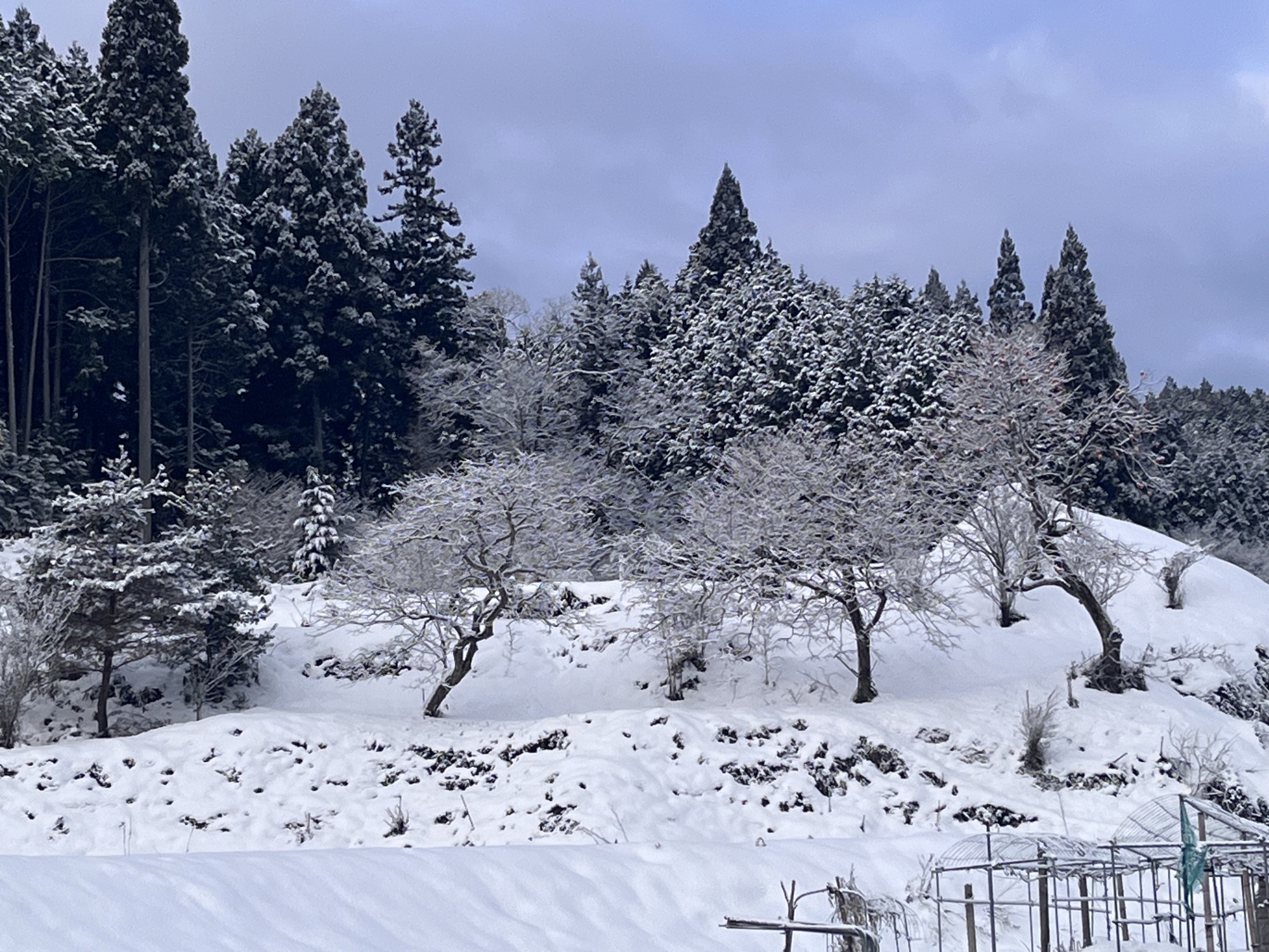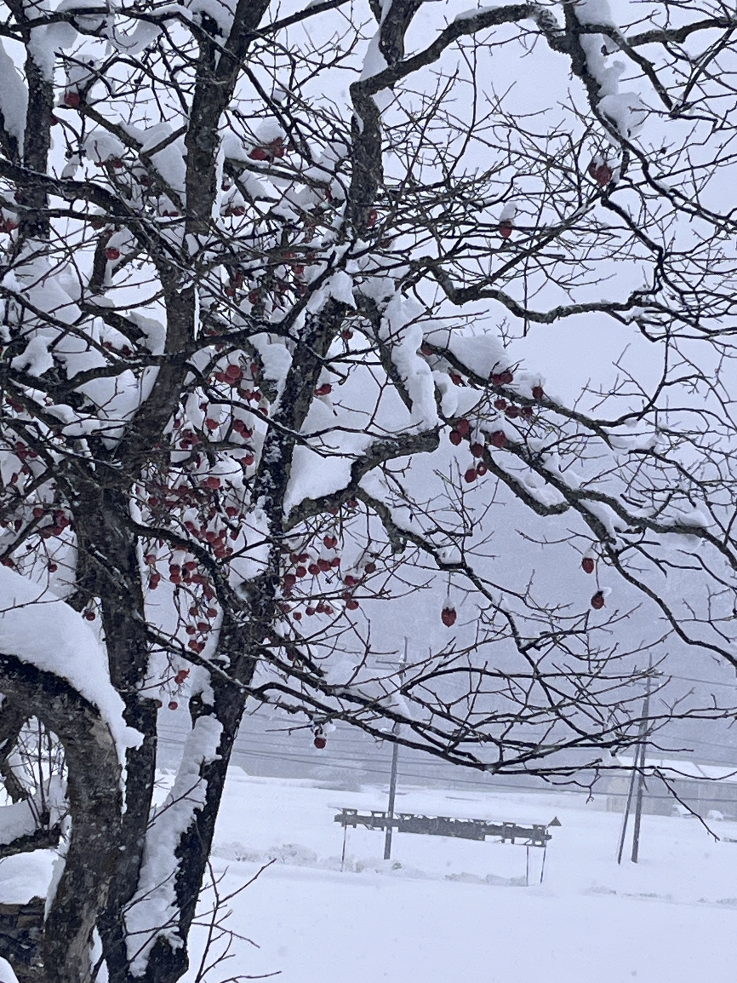 まだ、雪が……柿の木の雪.