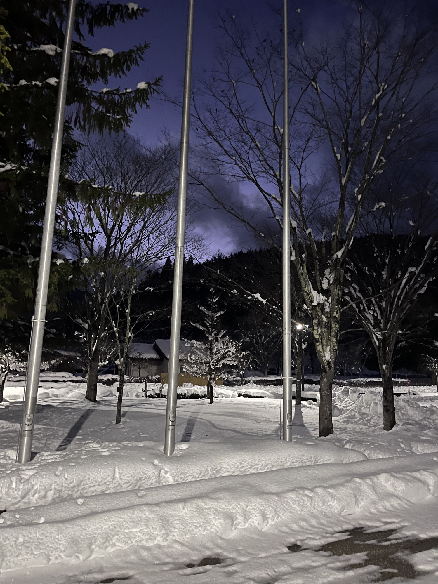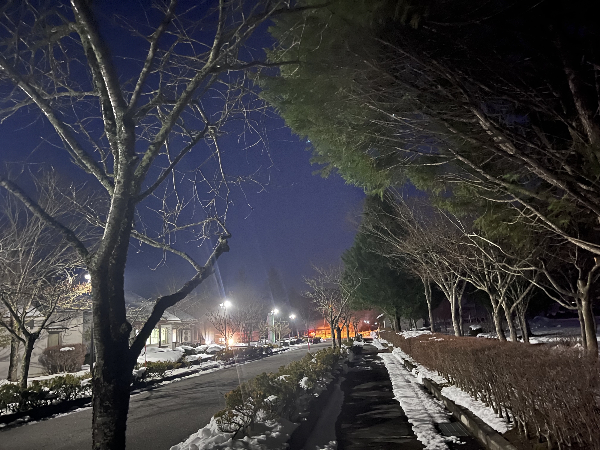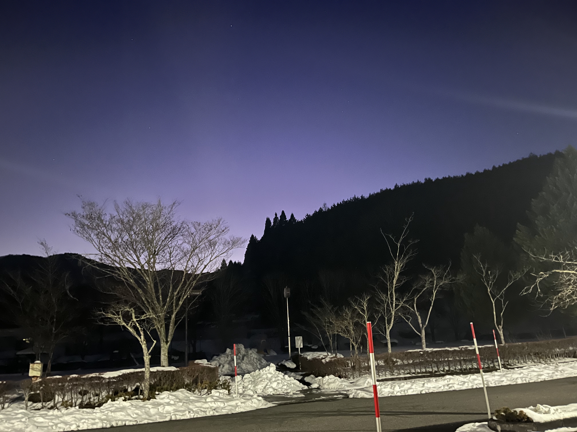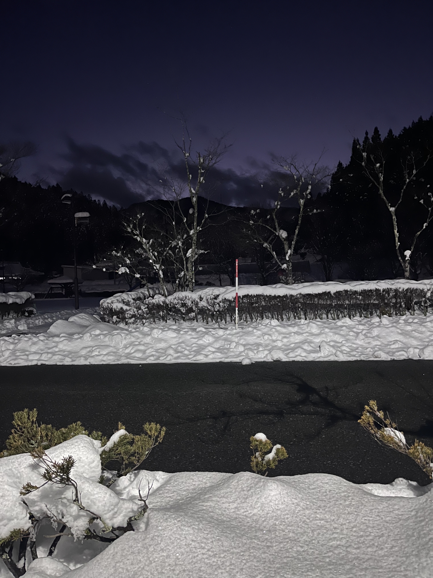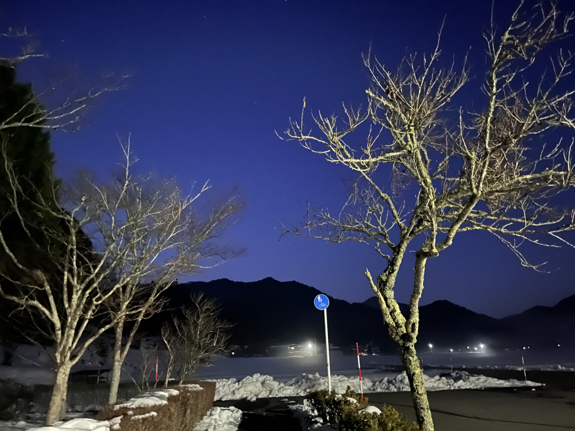 夜になっても変わらずの天気……ぐるっと官舎周り.