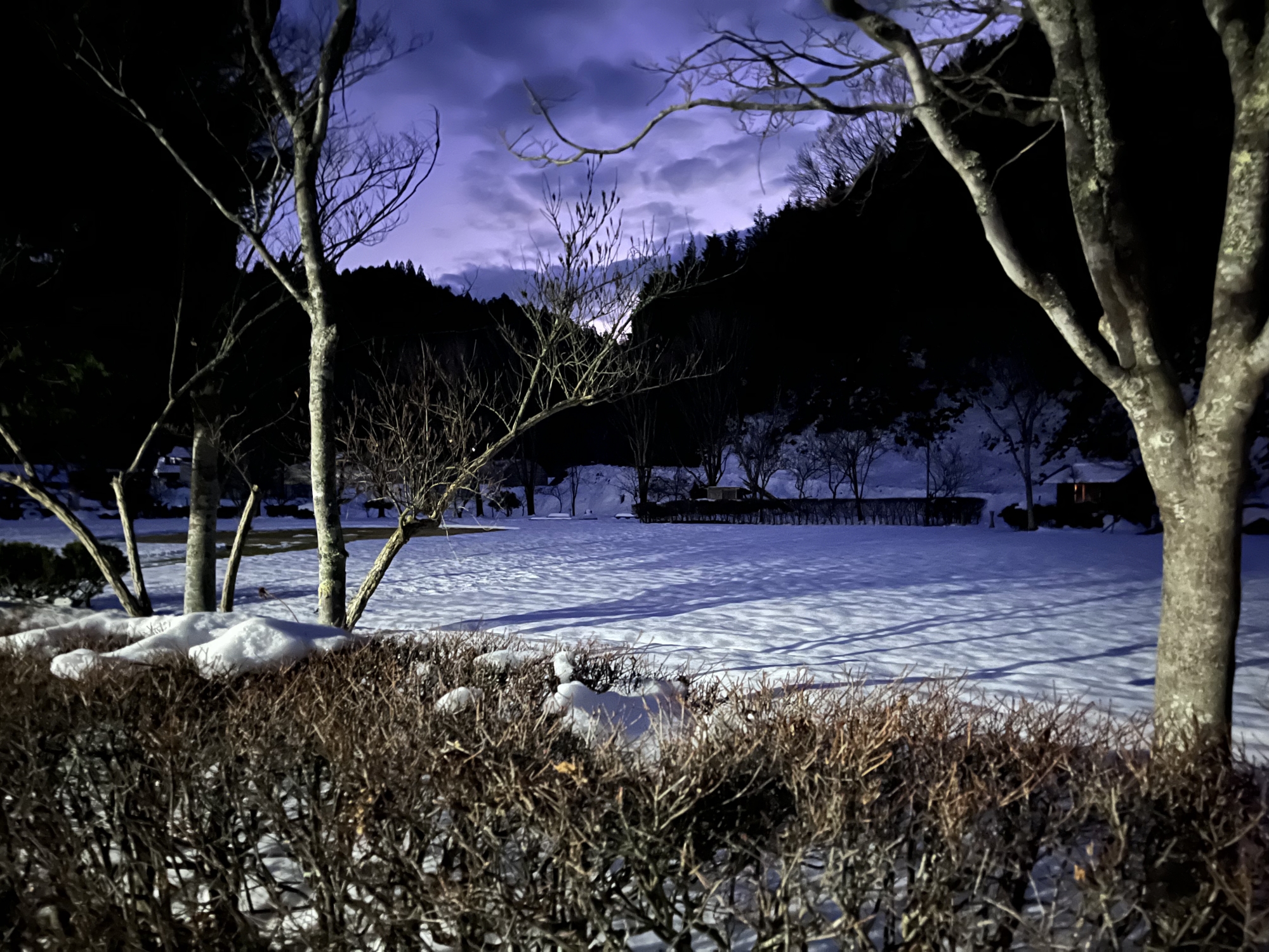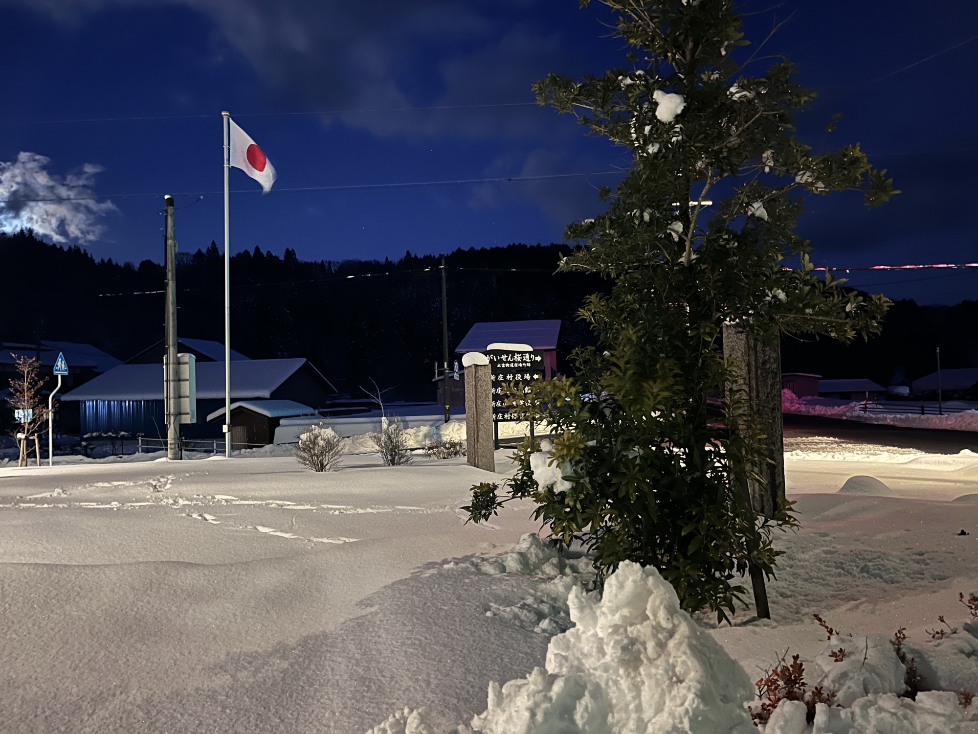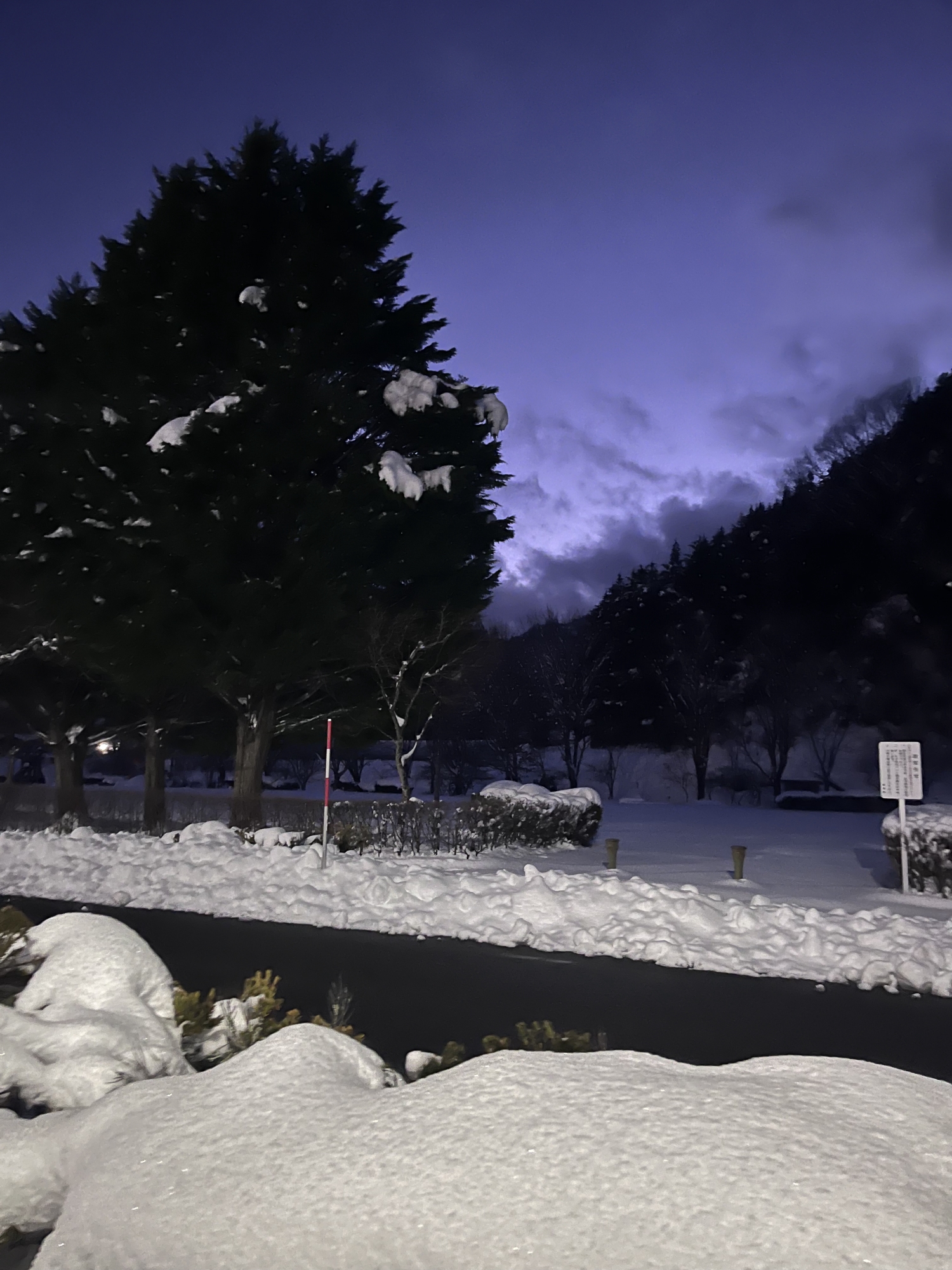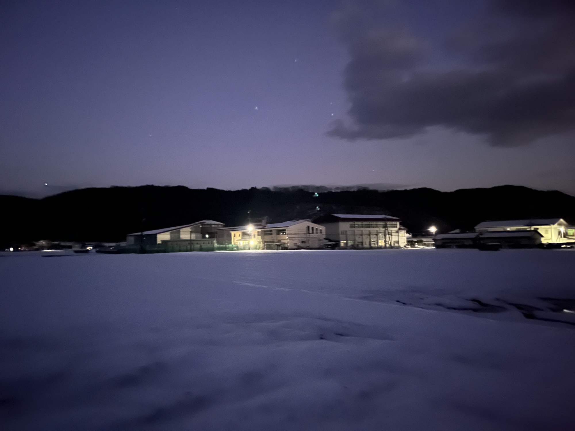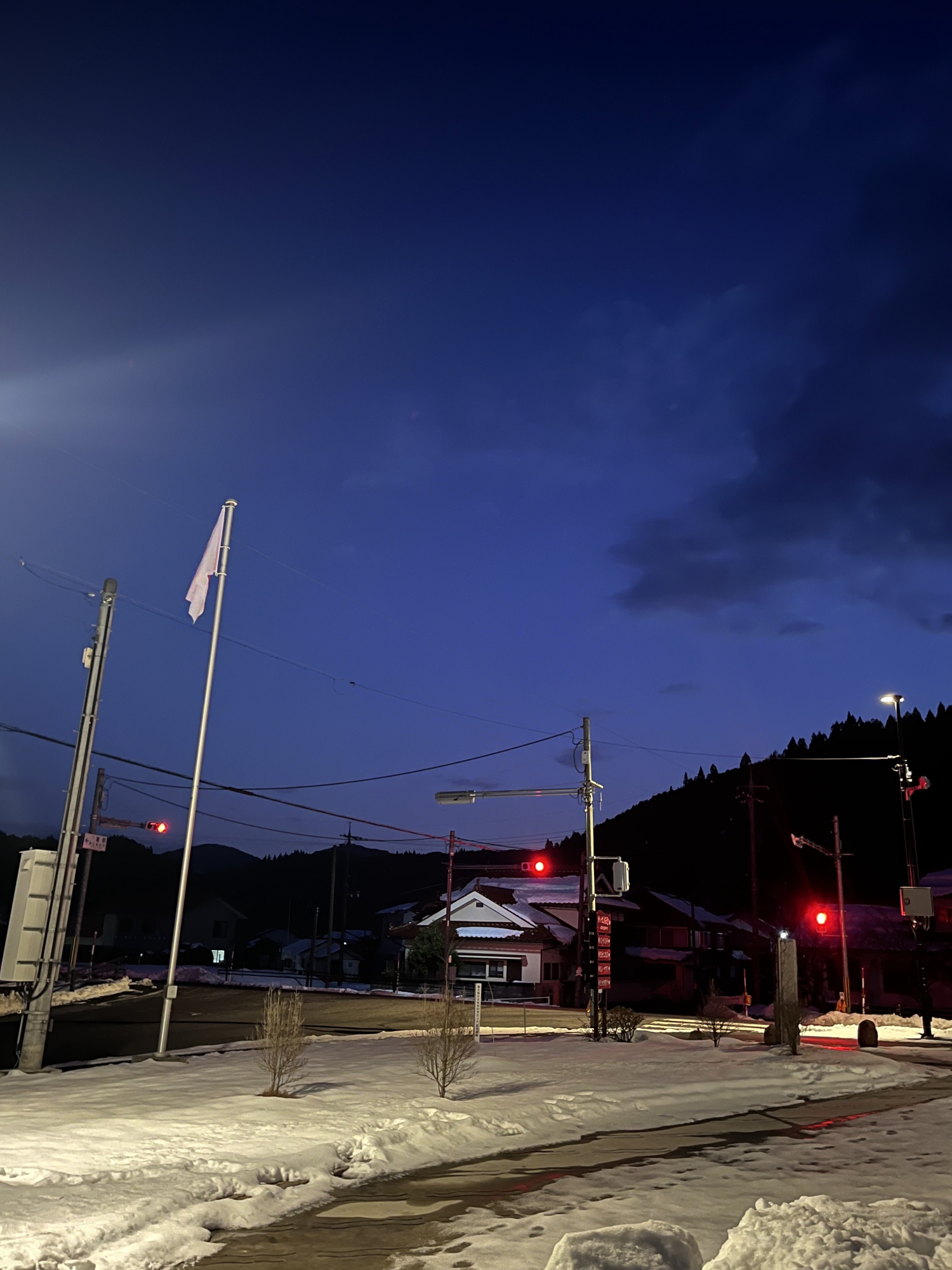 夜になっても変わらずの天気……ぐるっと官舎周り.