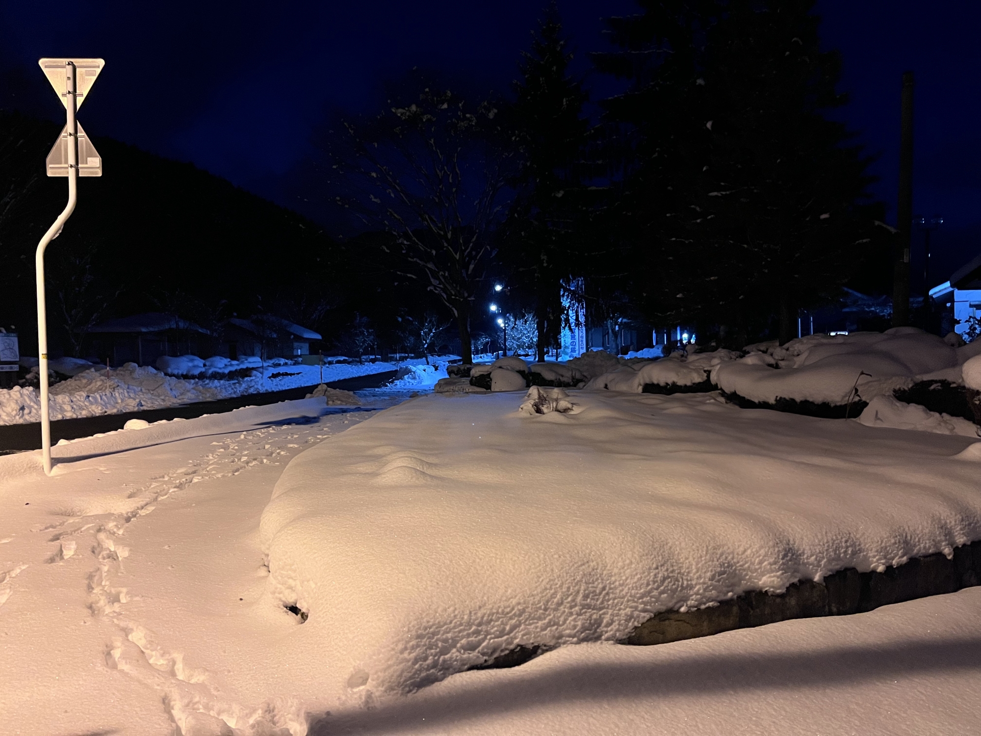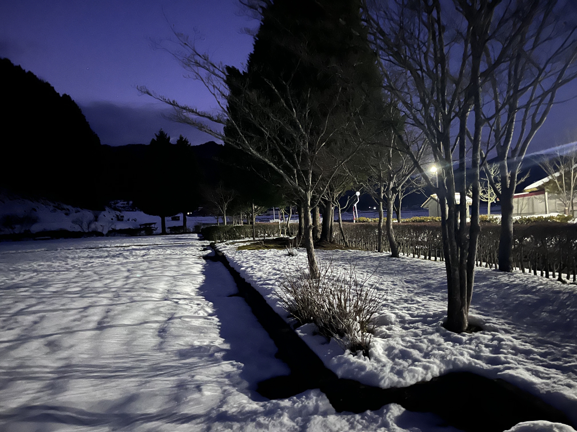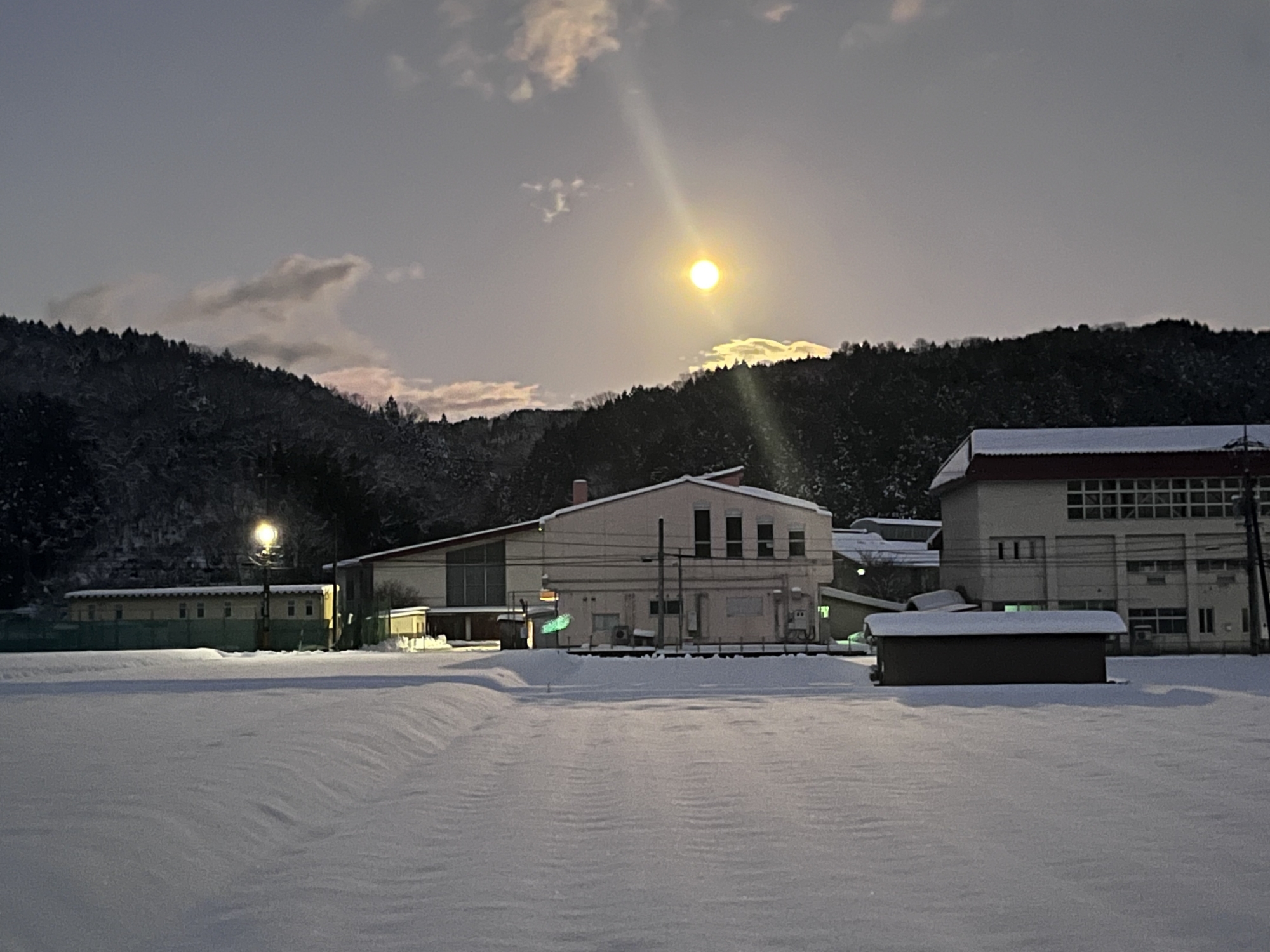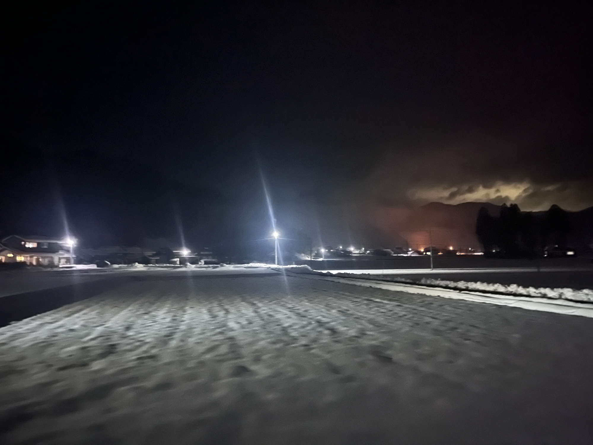 夜になっても変わらずの天気……ぐるっと官舎周り.