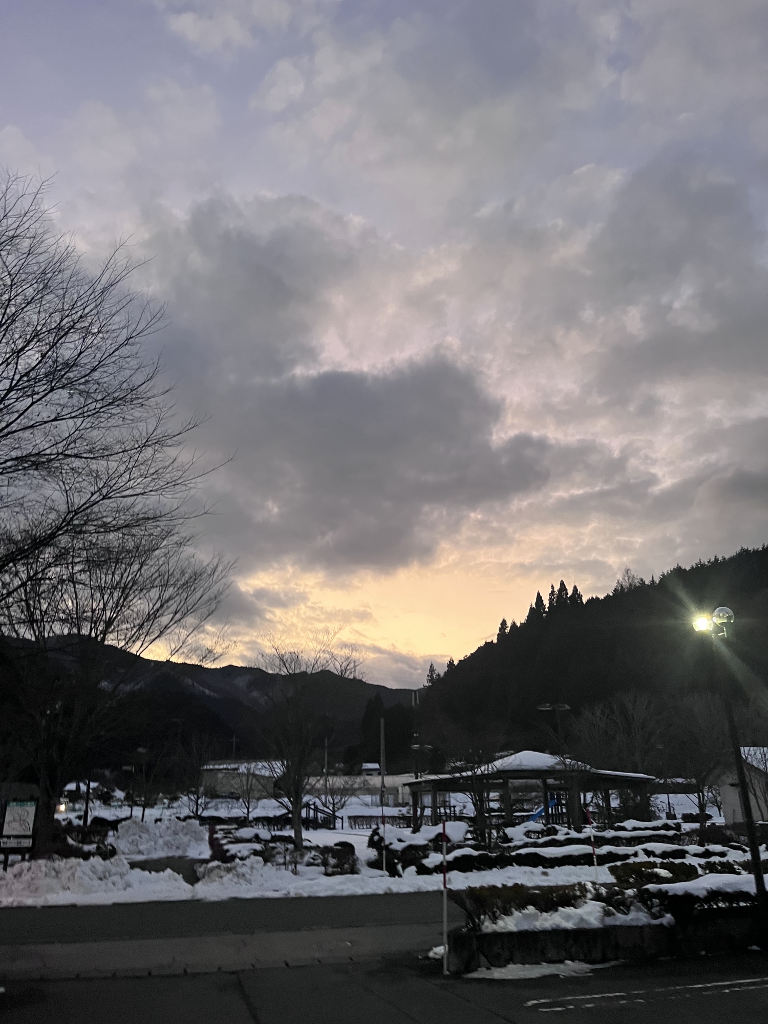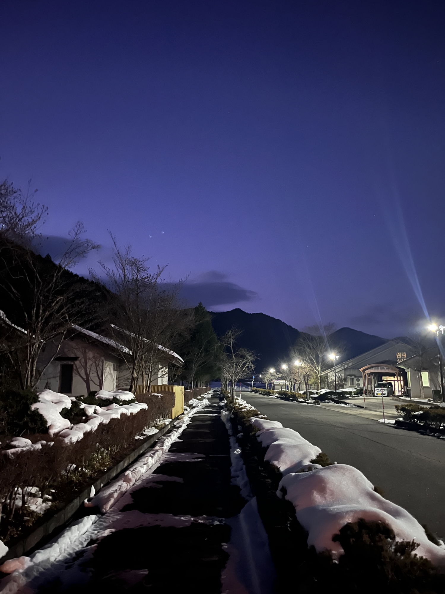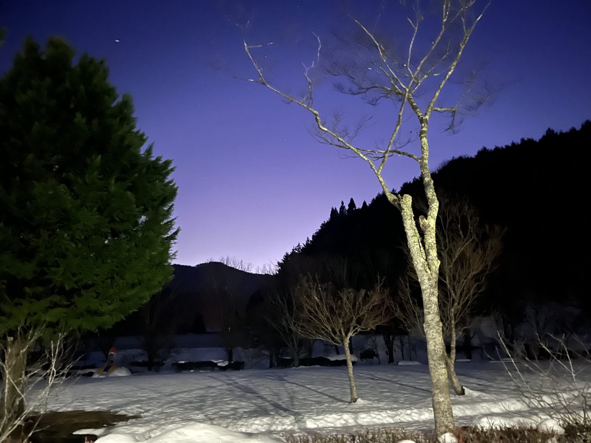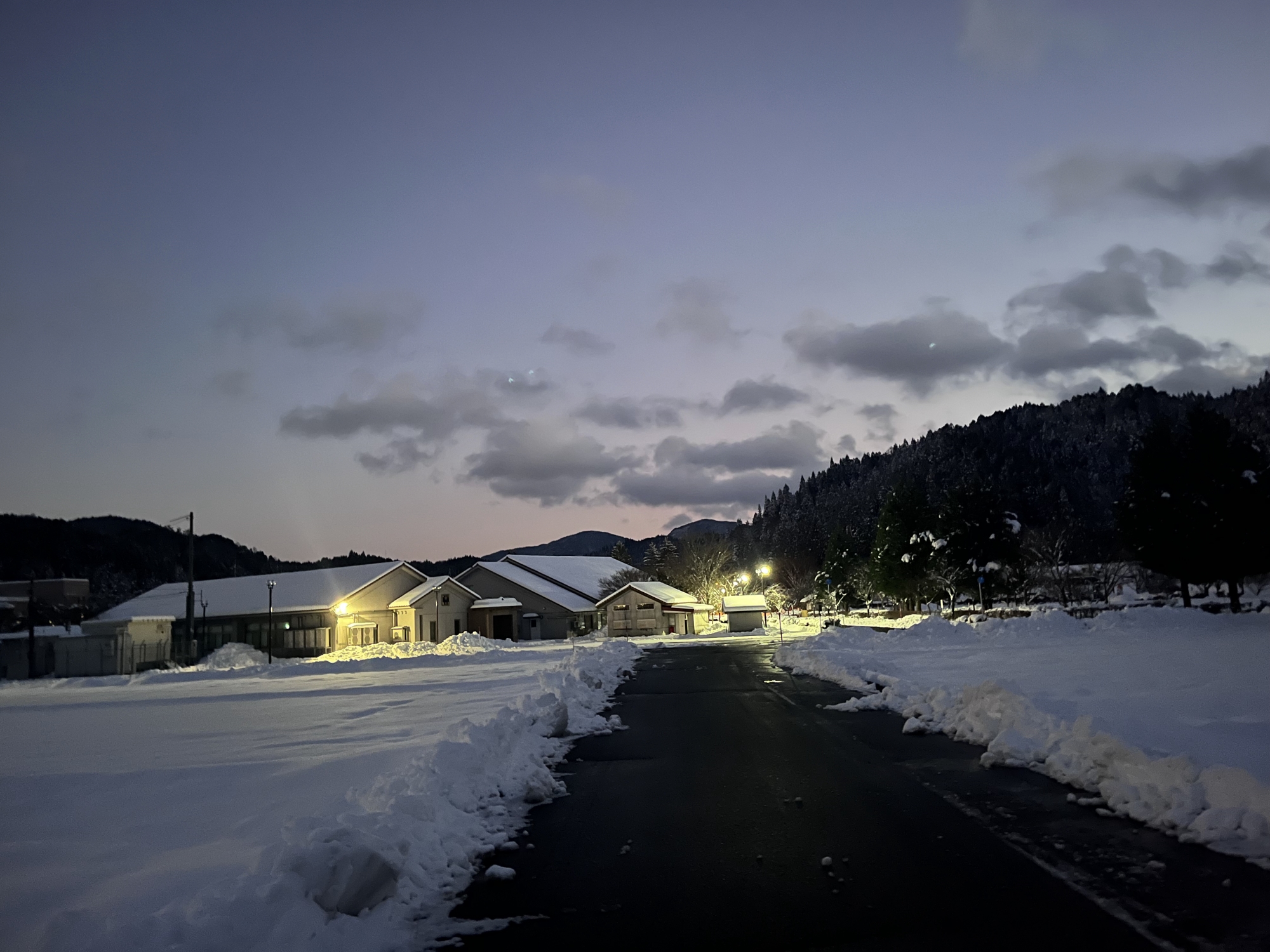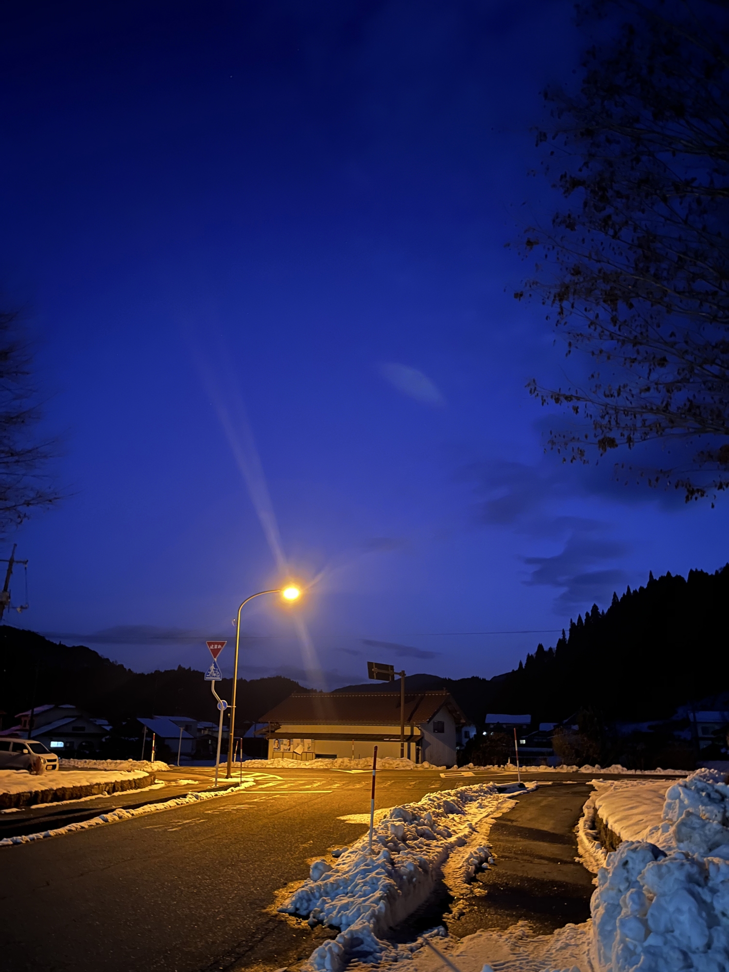 夜になっても変わらずの天気……ぐるっと官舎周り.