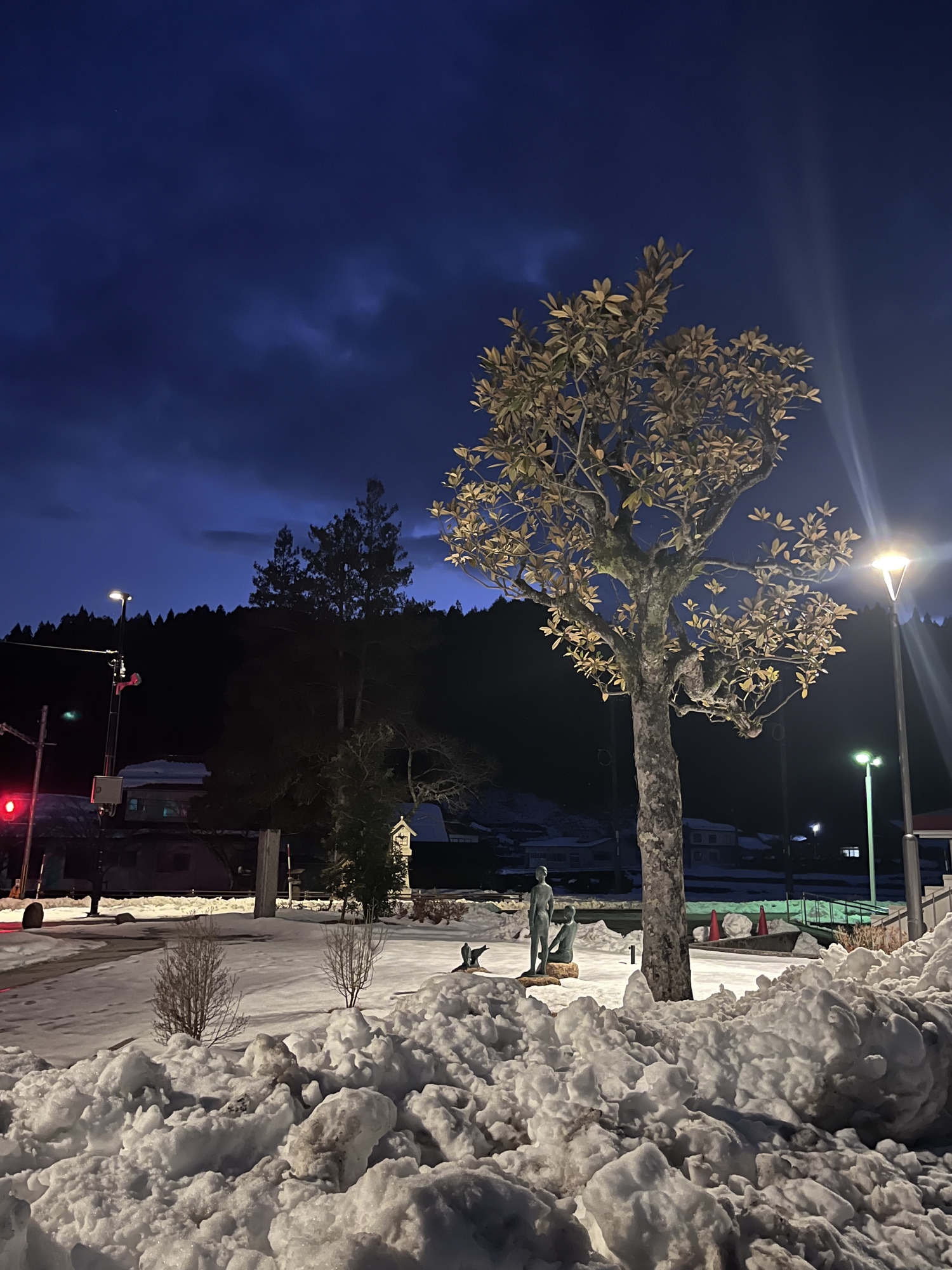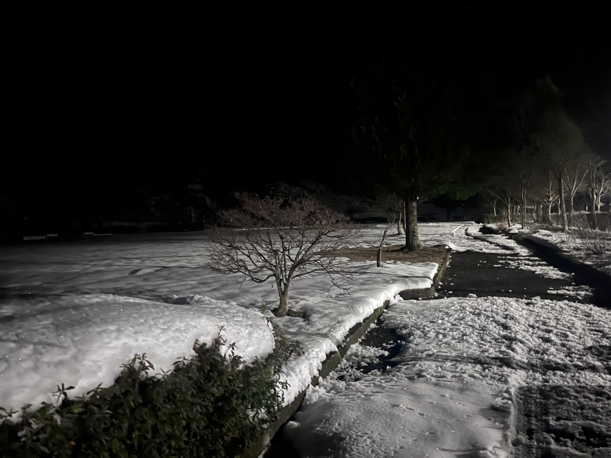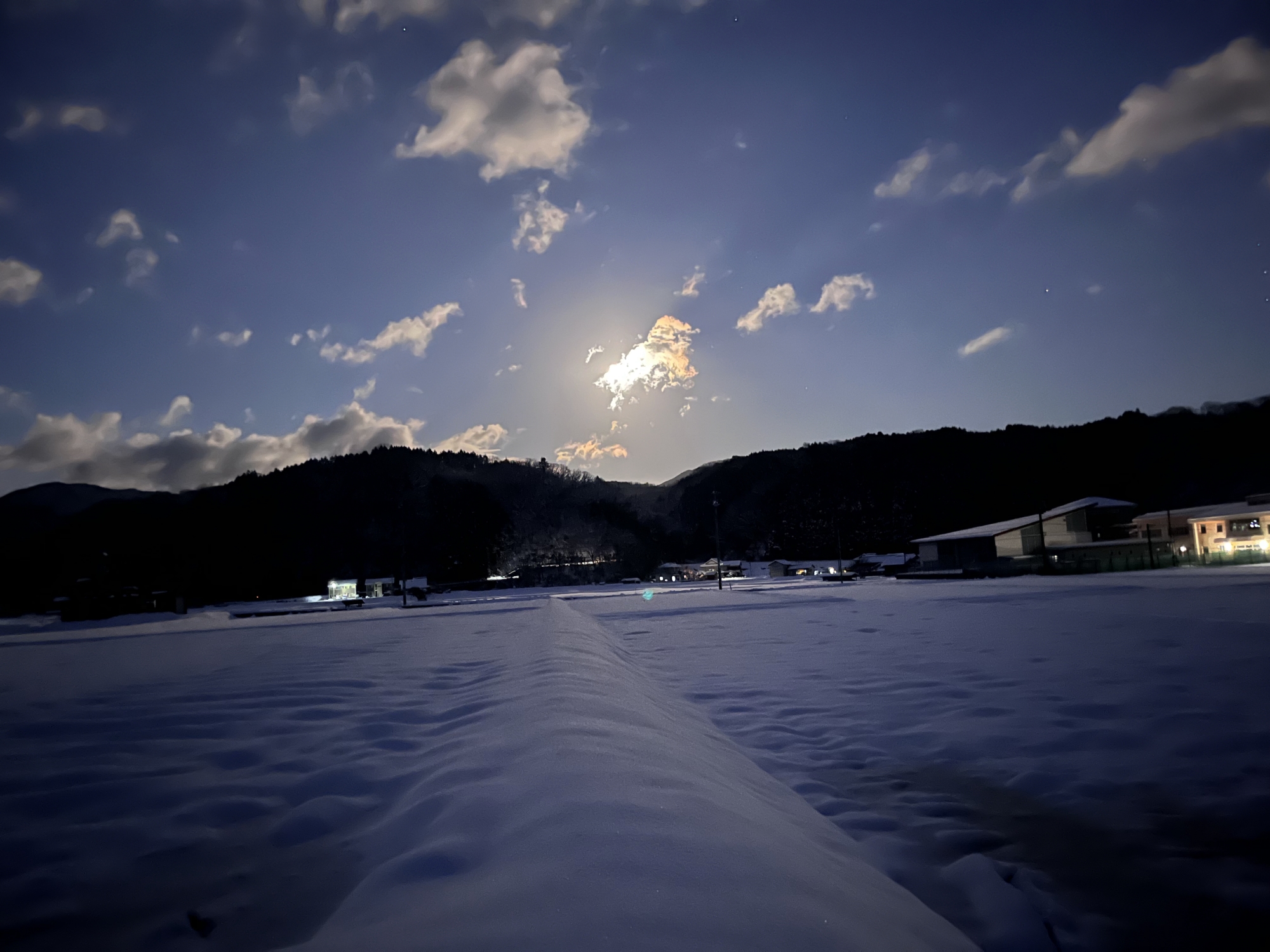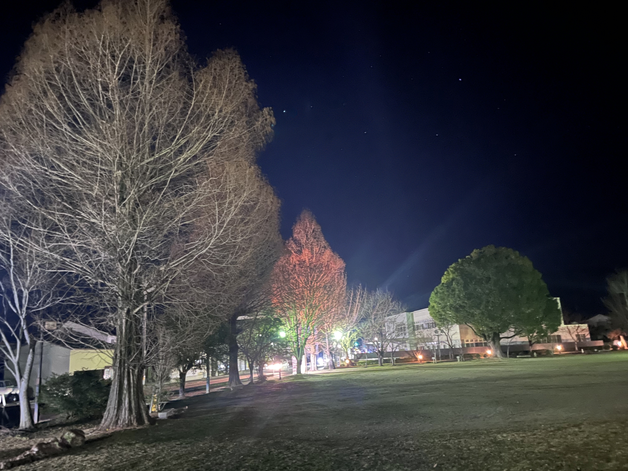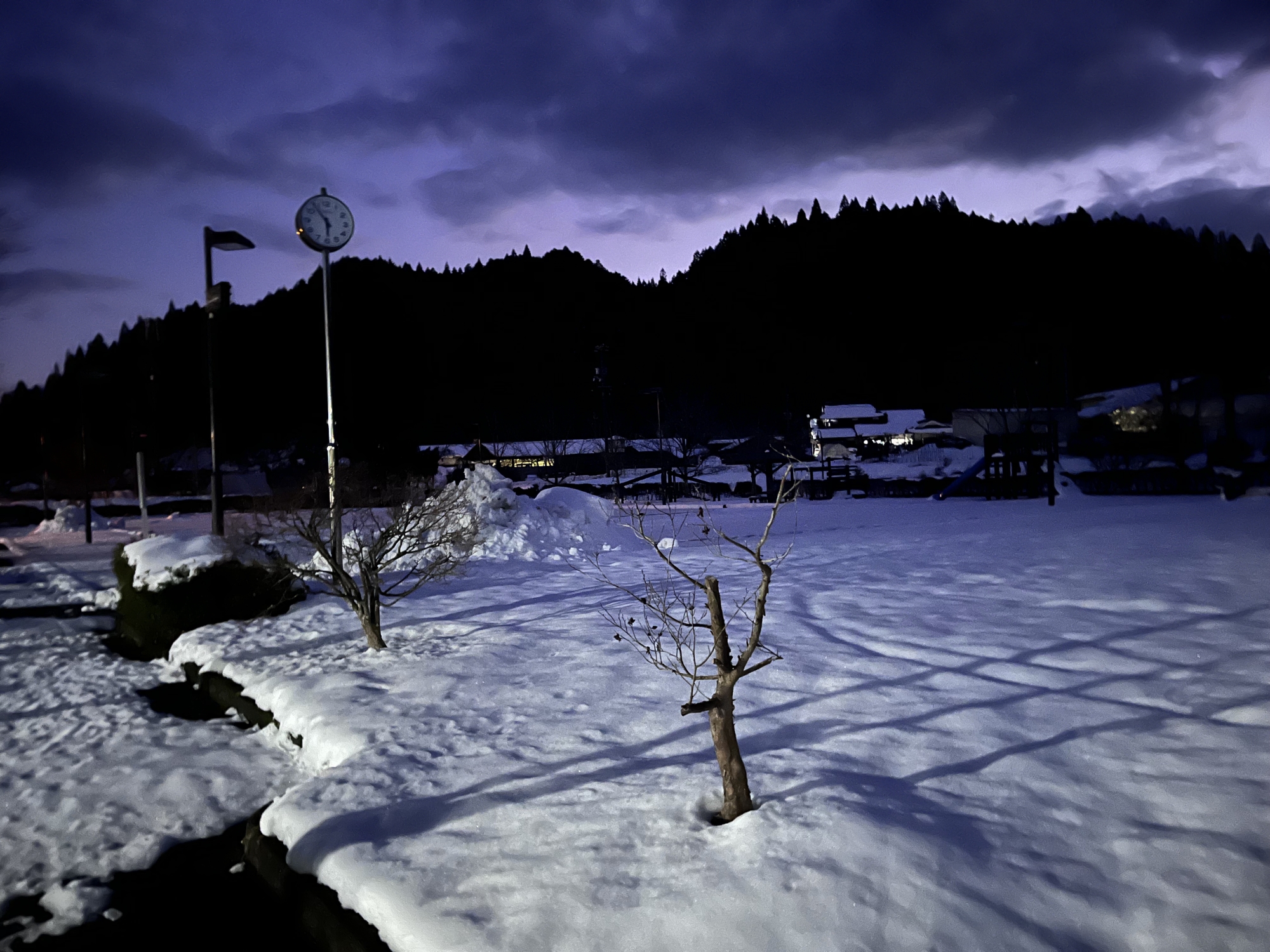 夜になっても変わらずの天気……ぐるっと官舎周り.