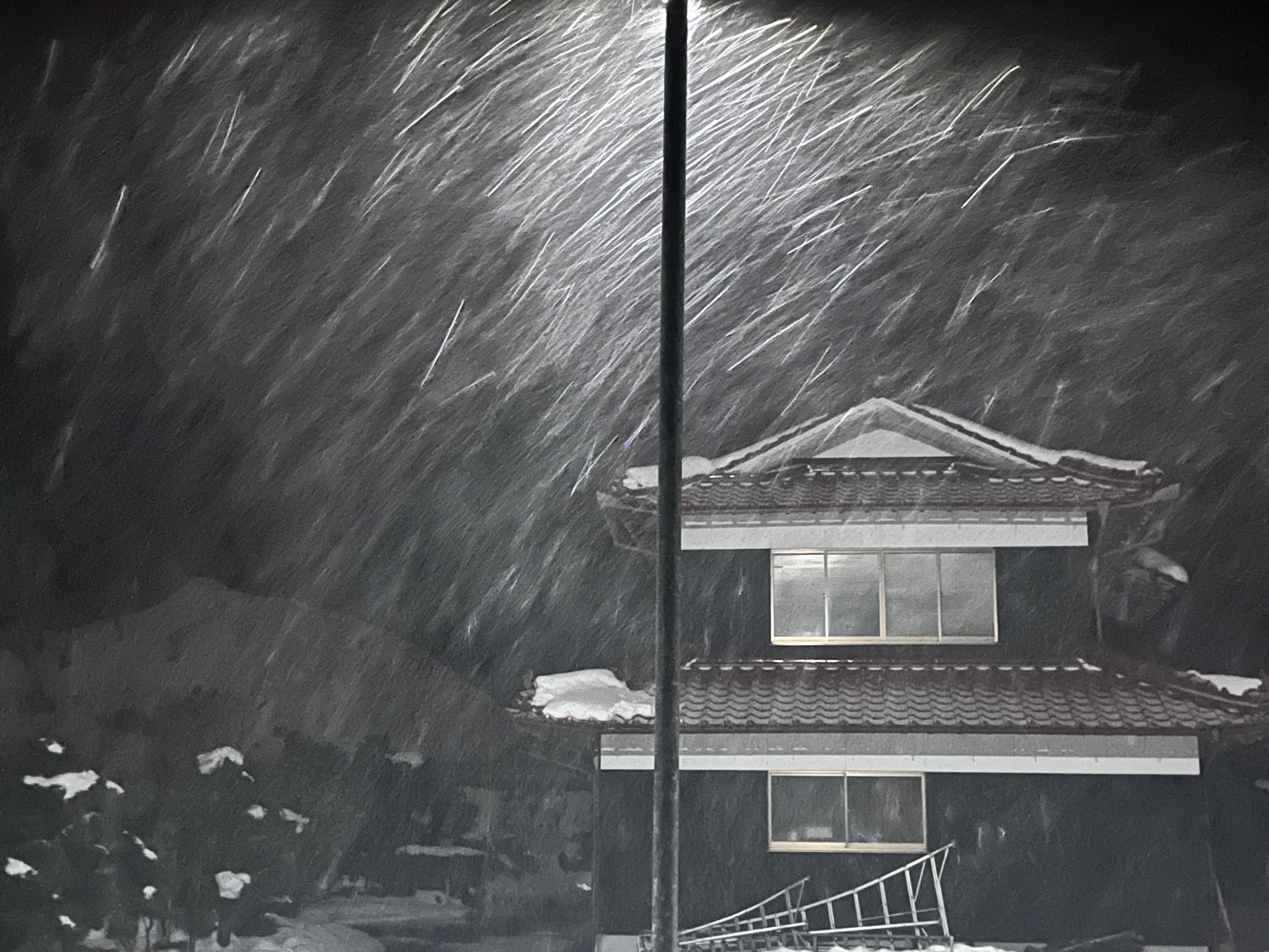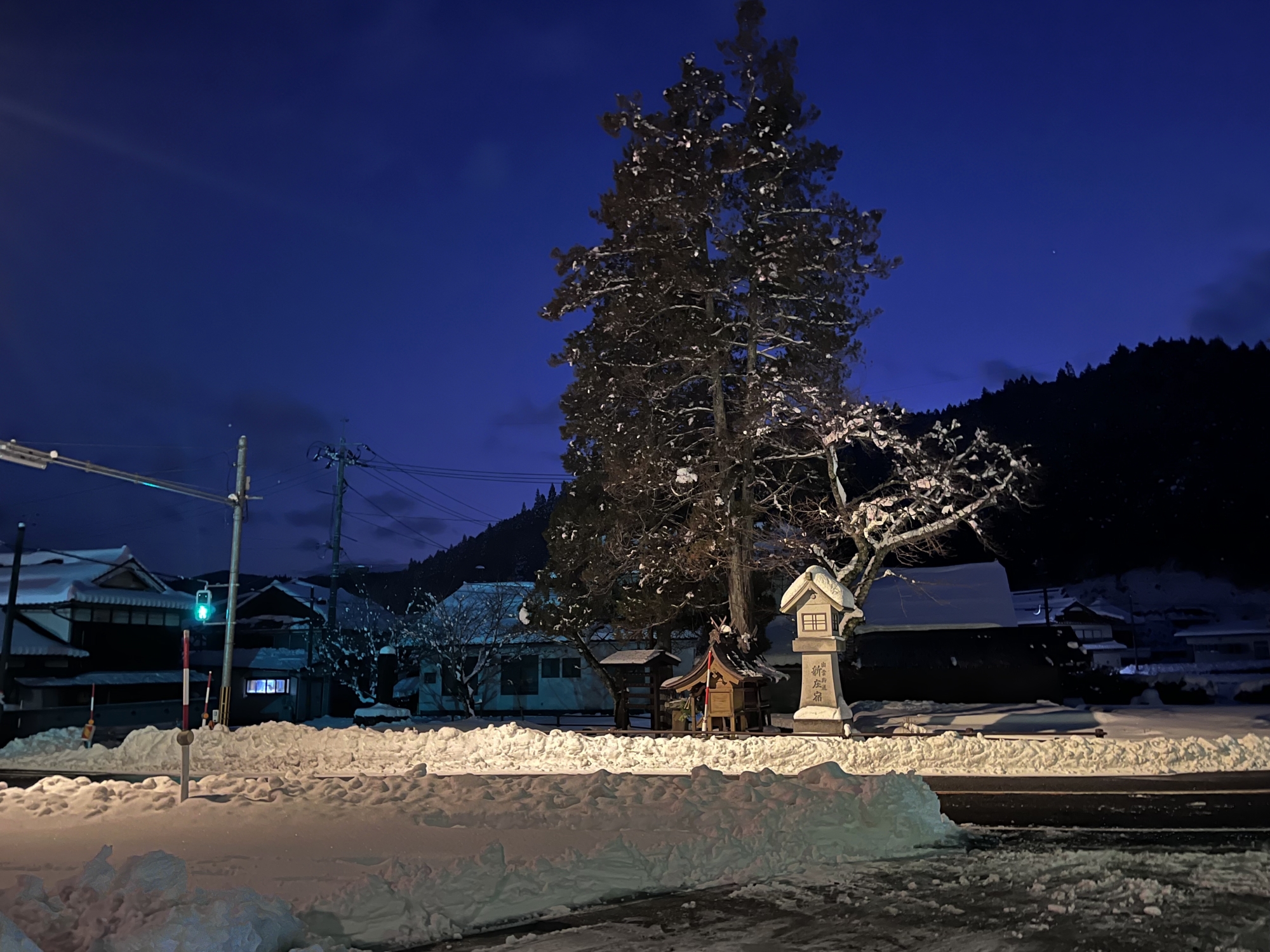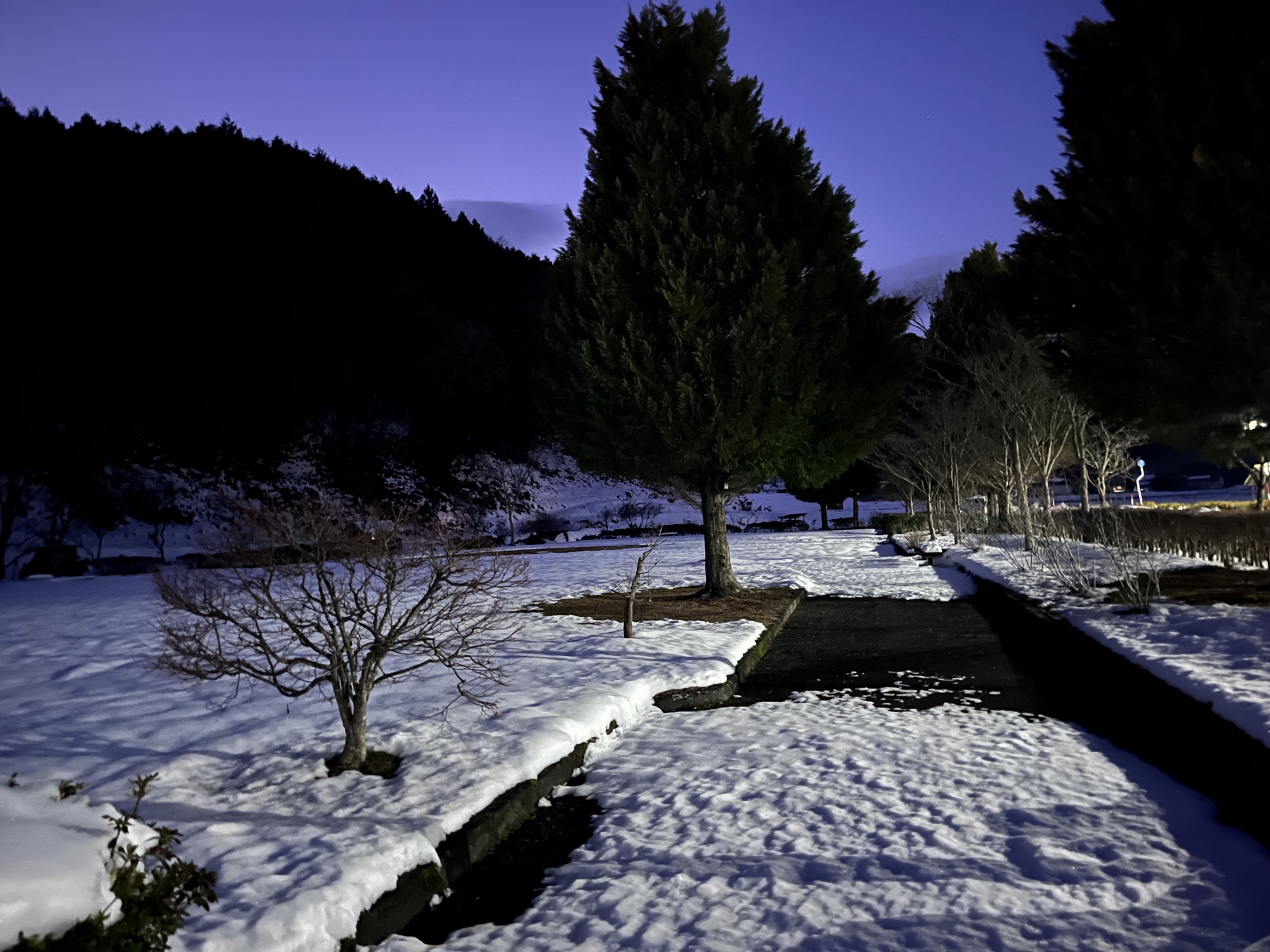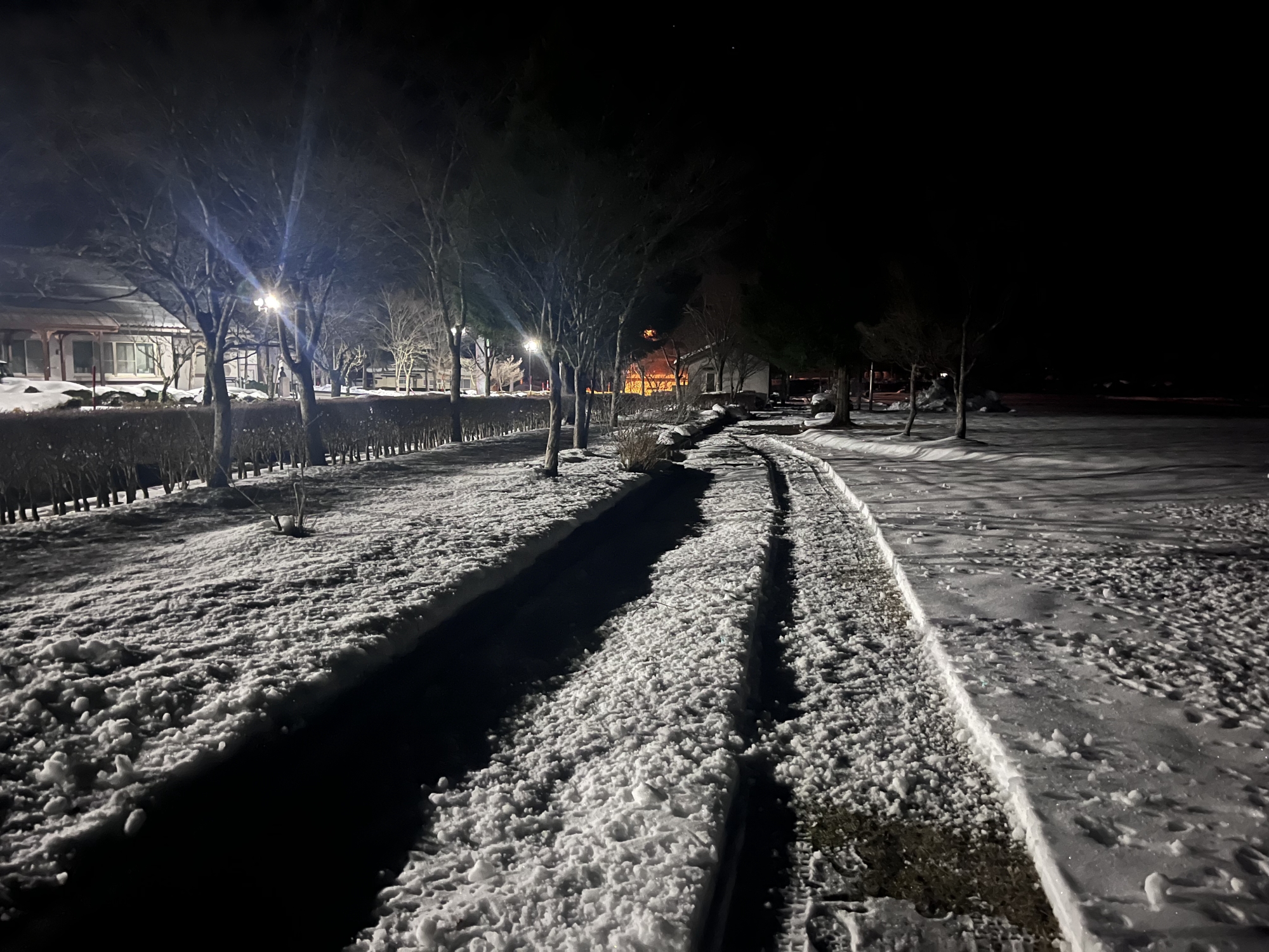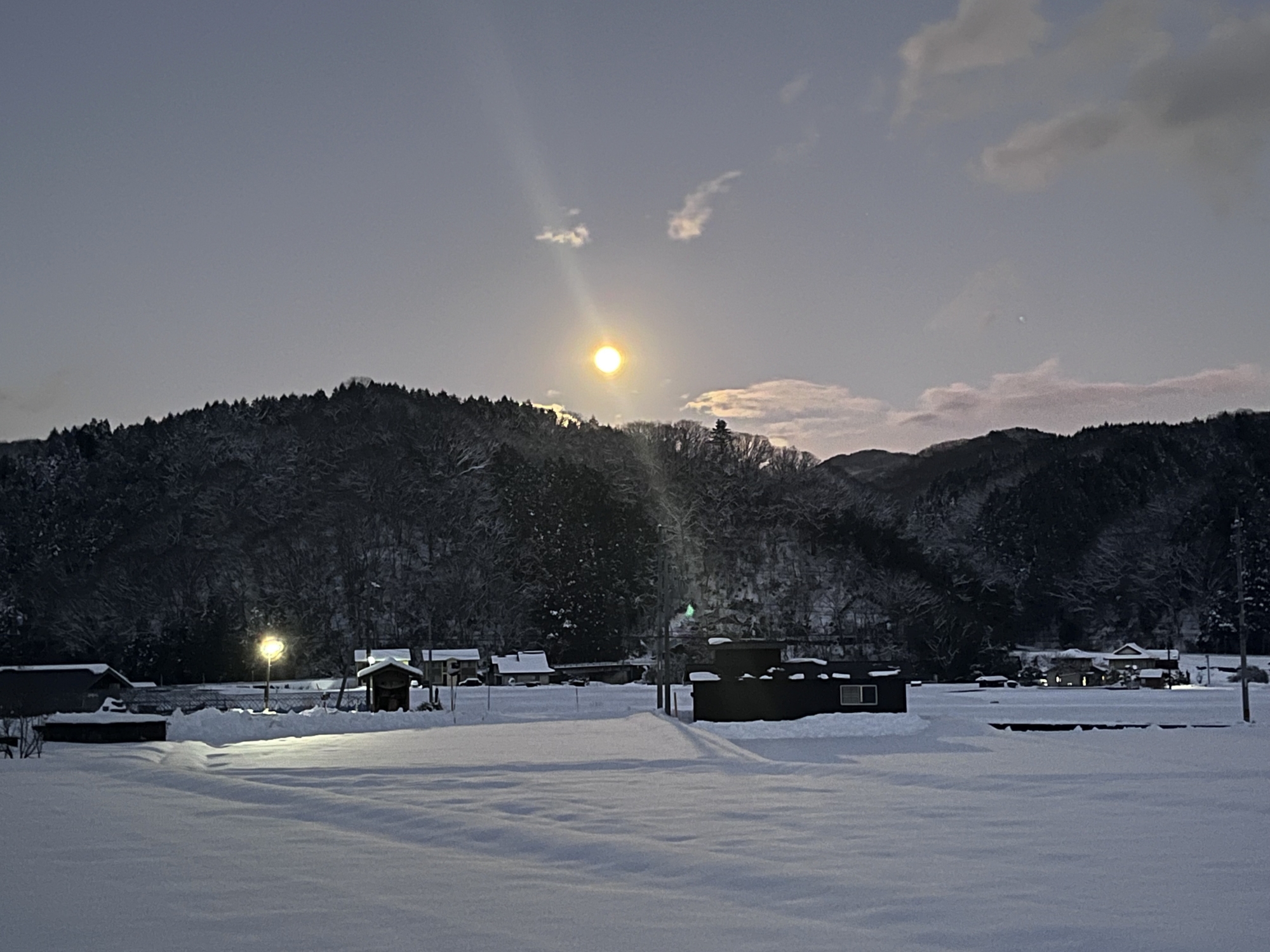 夜になっても変わらずの天気……ぐるっと官舎周り.