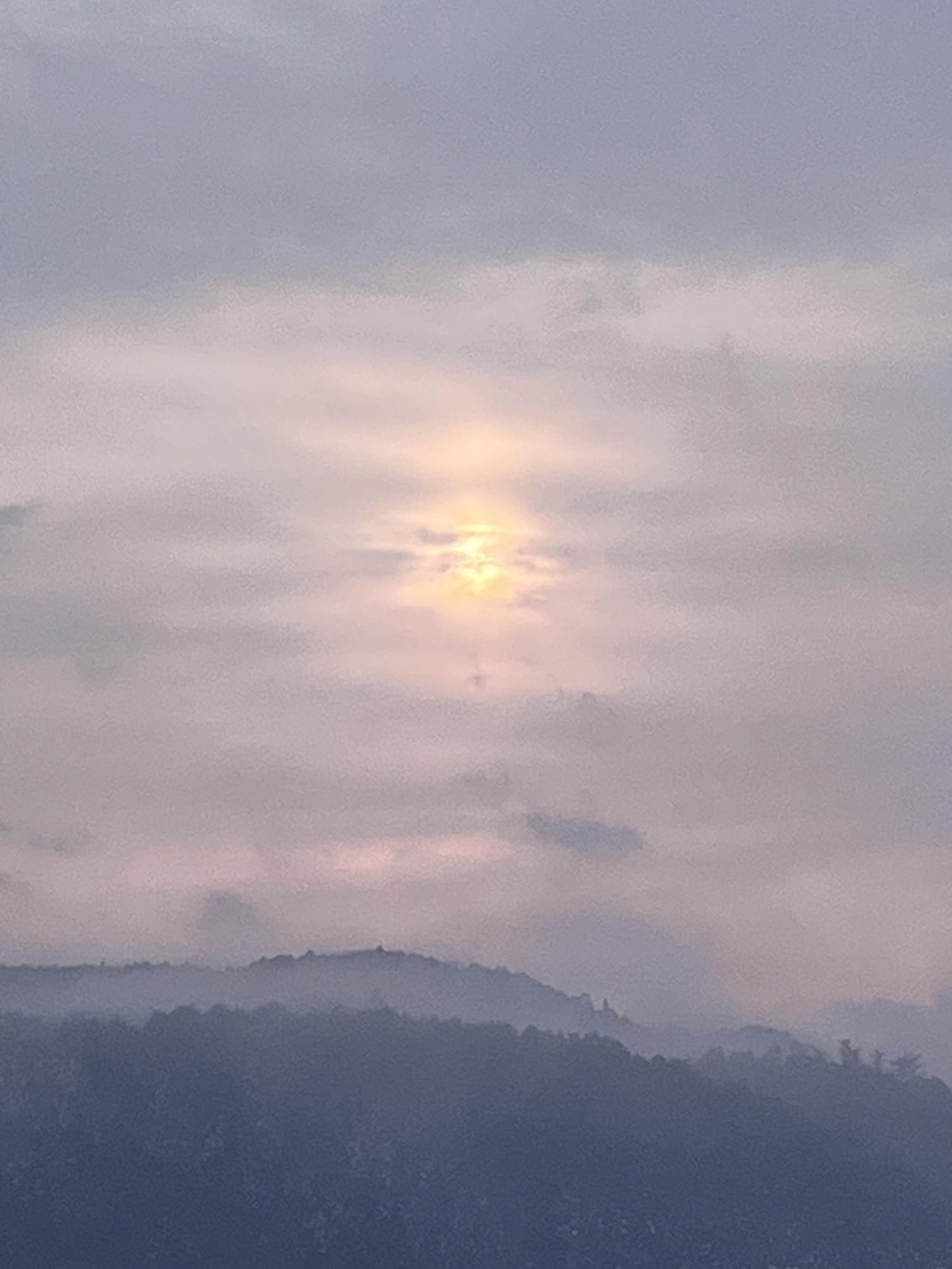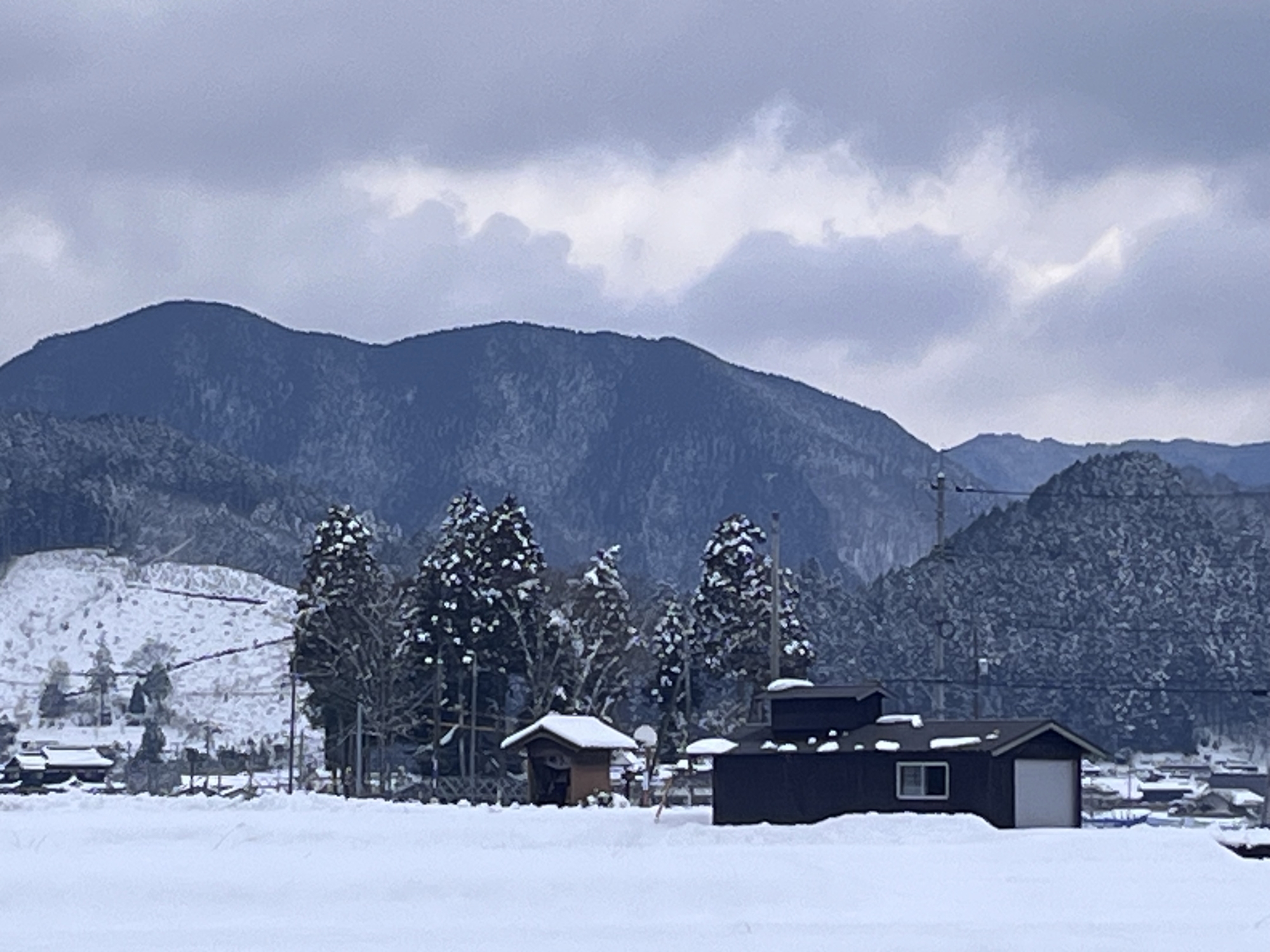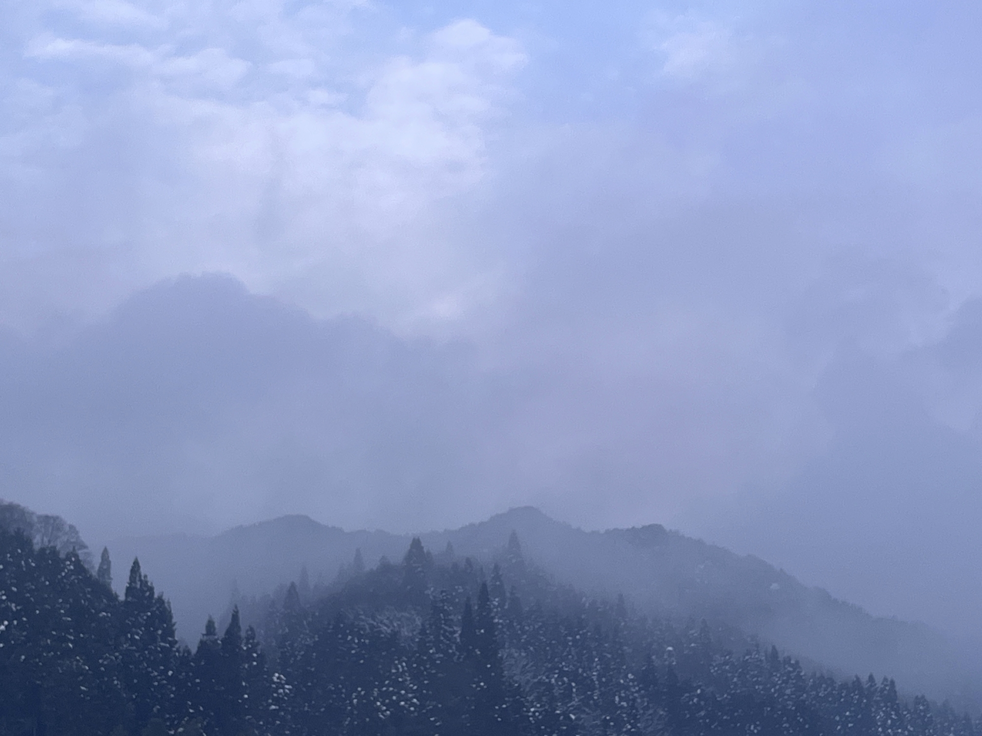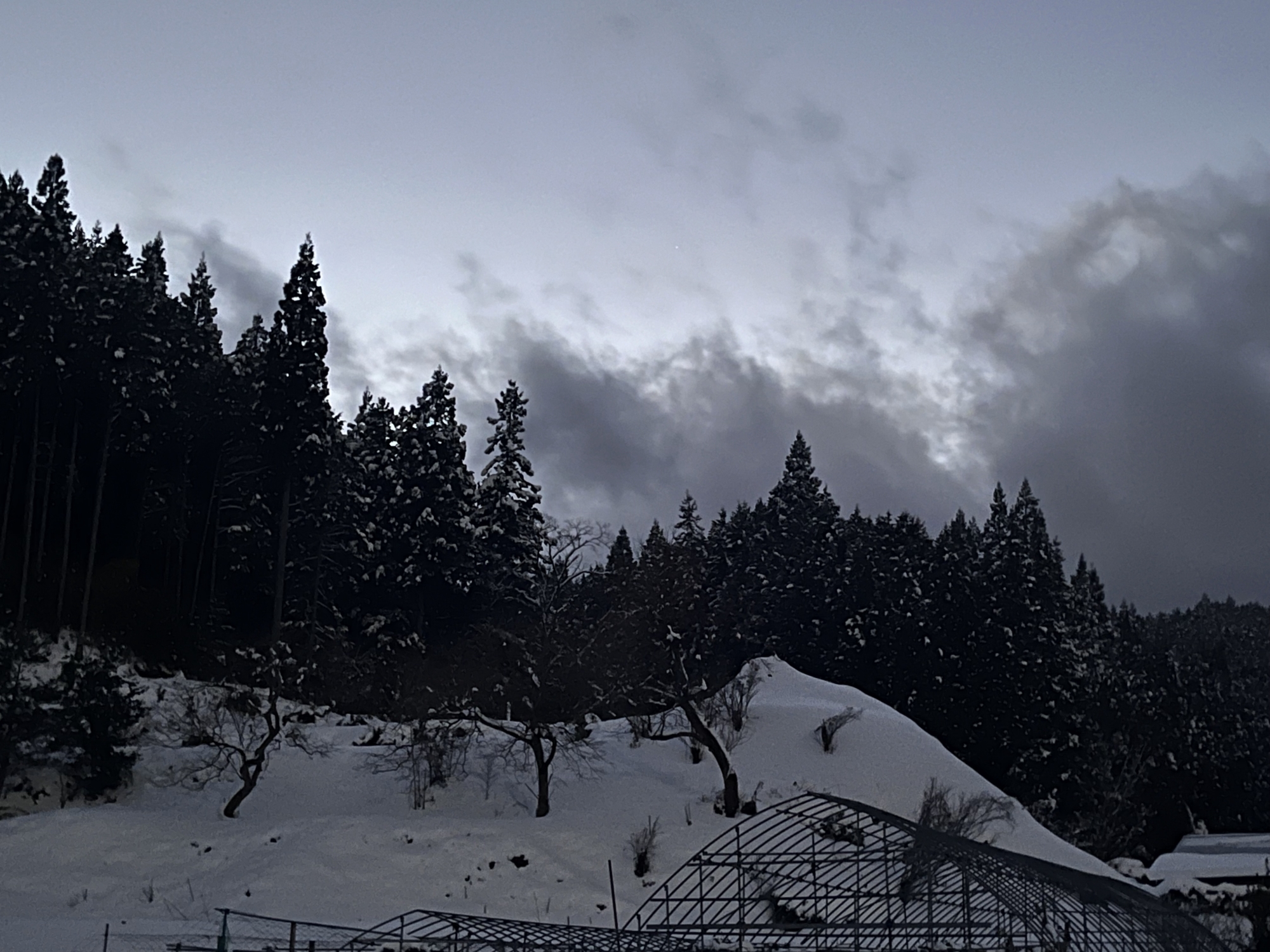 なんだか薄暗い朝~北の山の方は低い雲.