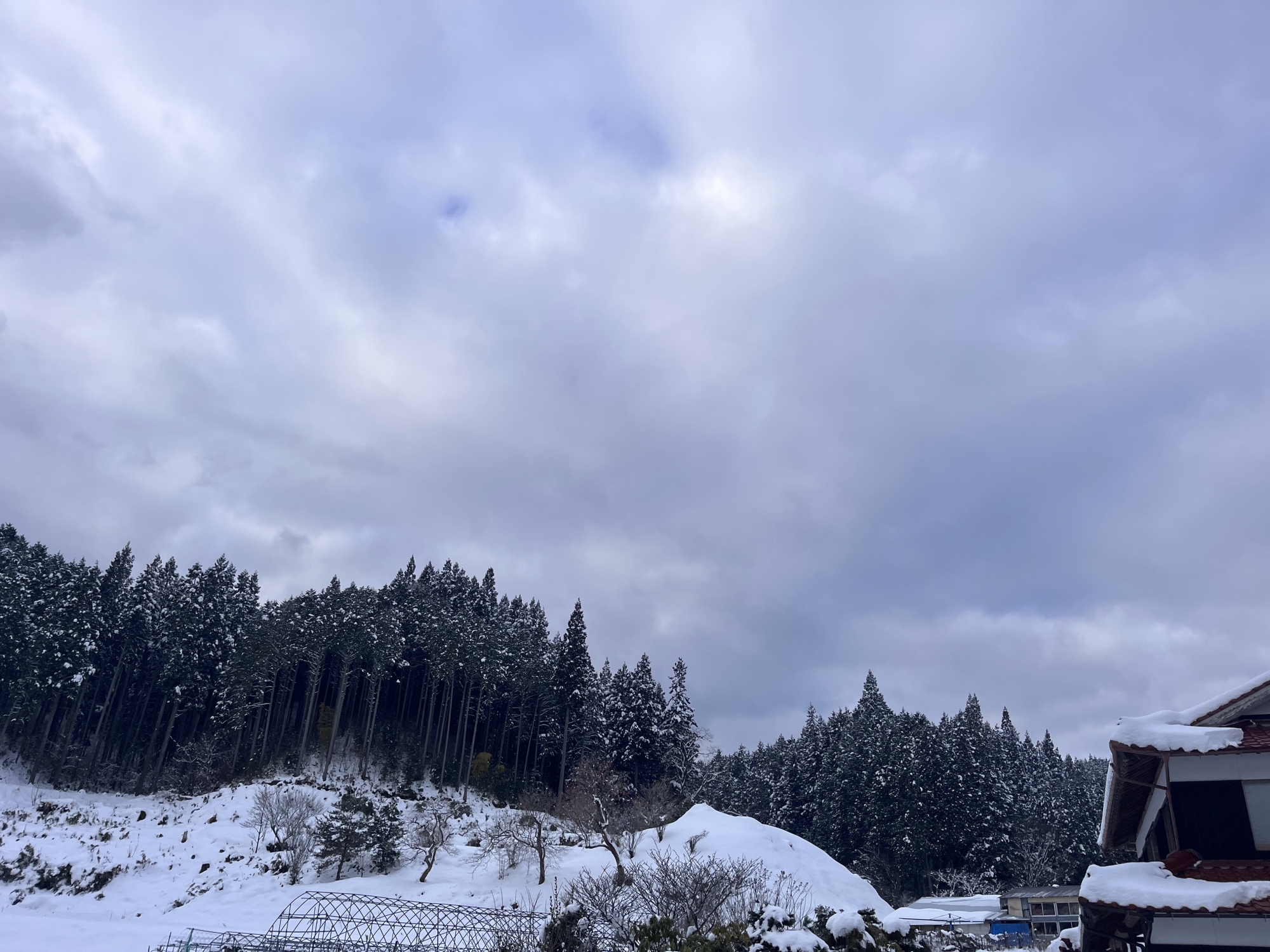 雪掻きの最中に、少しだけ青空.でも、明日の午前中いっぱいは、雪マーク.やれやれ.