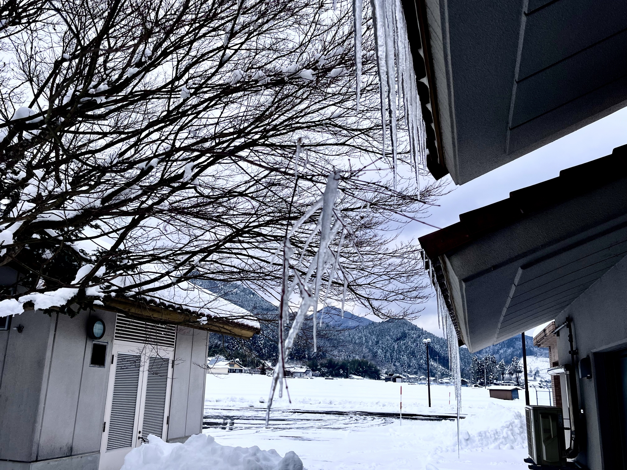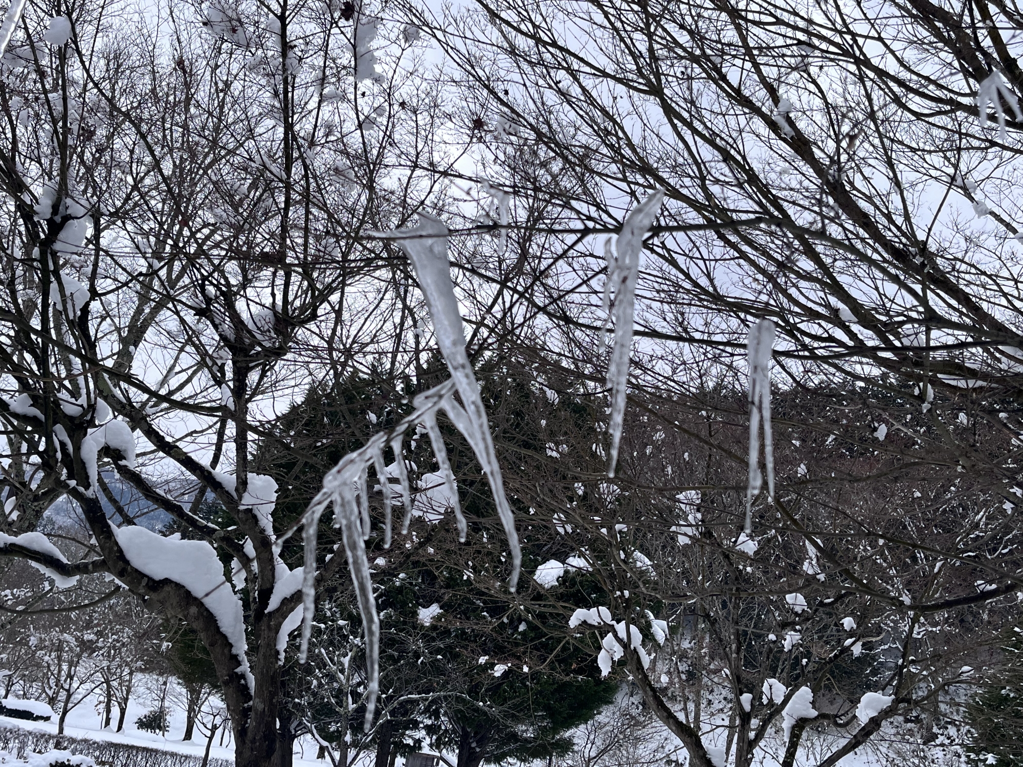 今回は、伸びがそこまっではないものの……紅葉の枝からの氷柱がすごい.