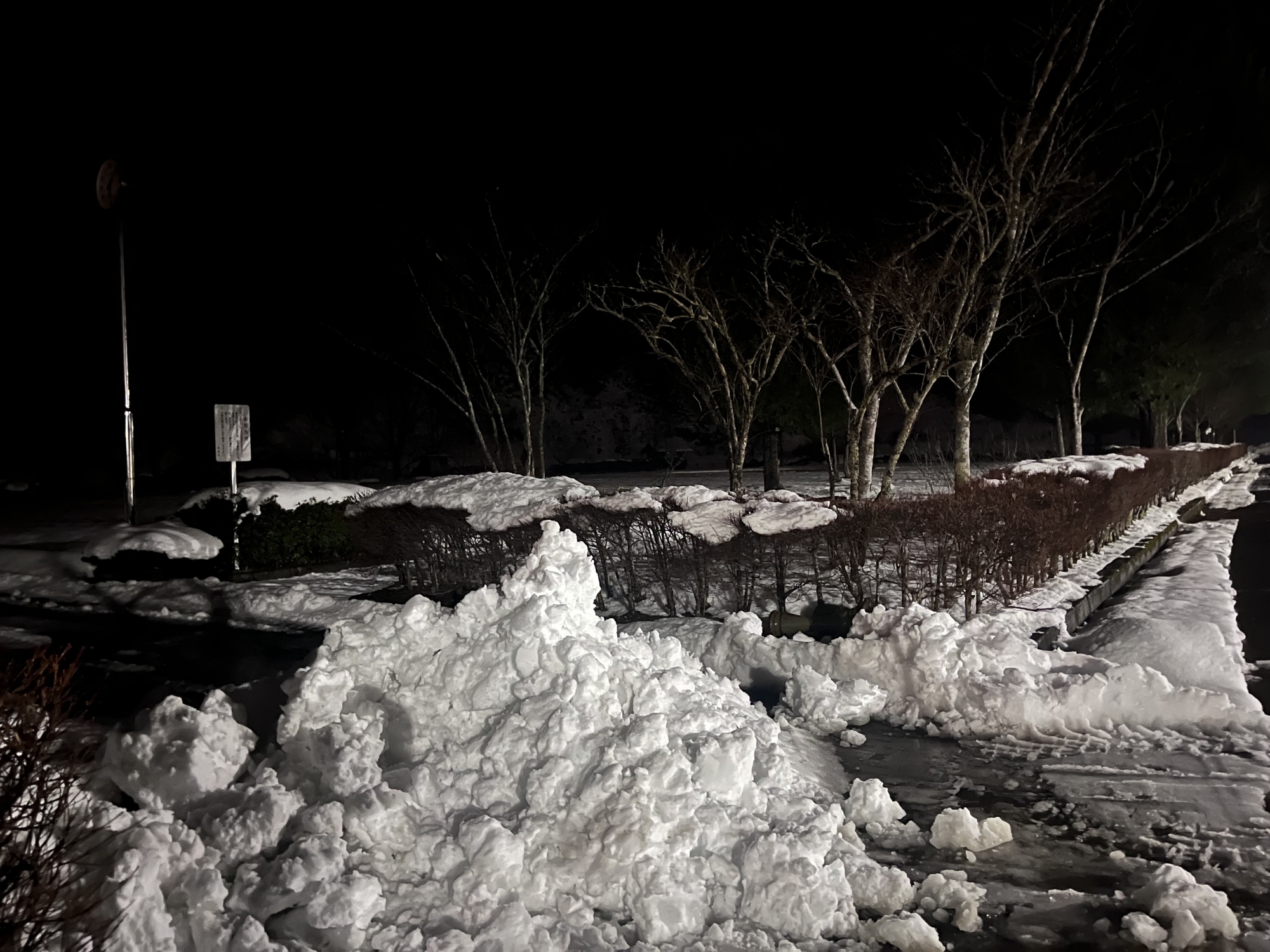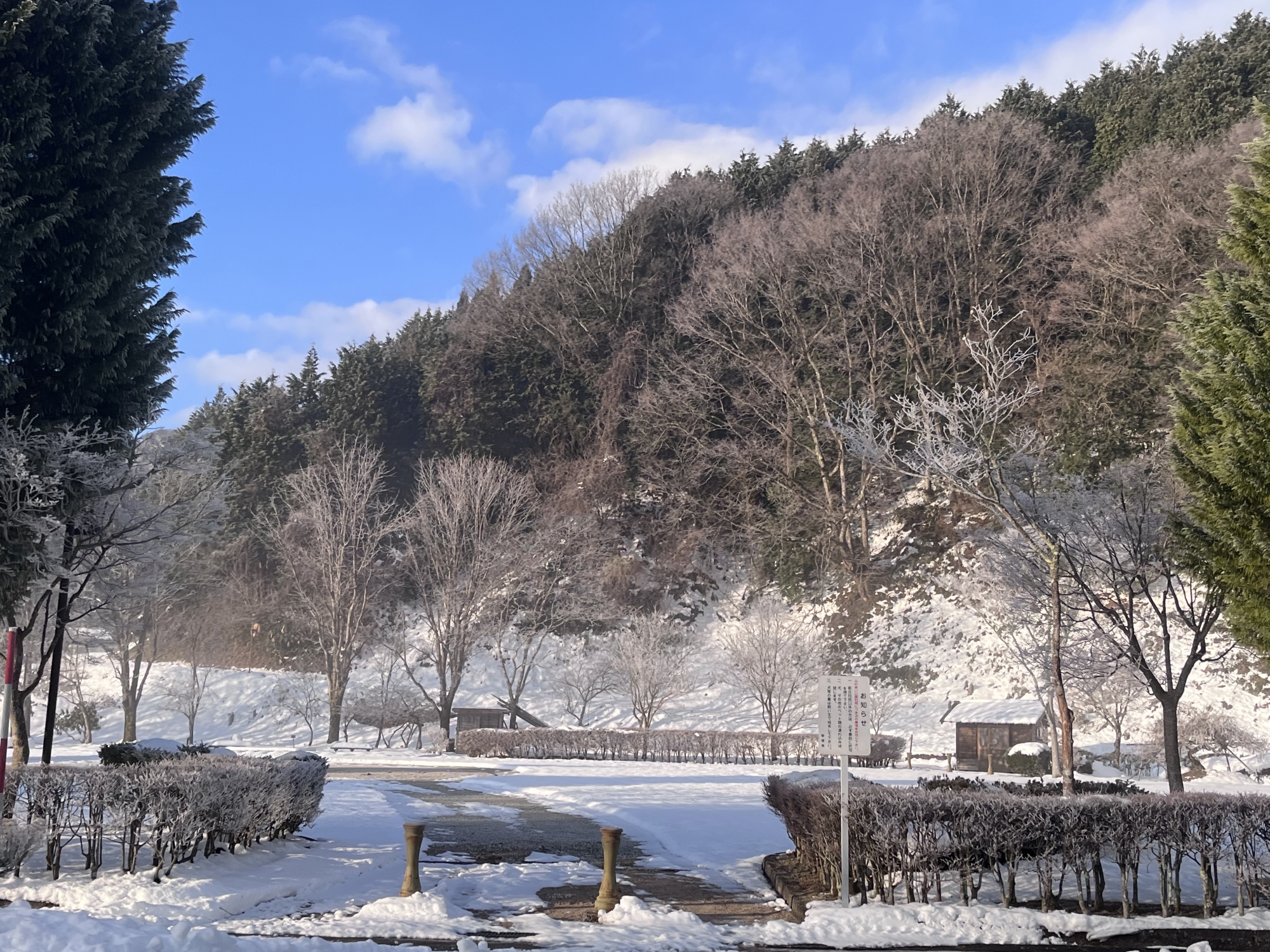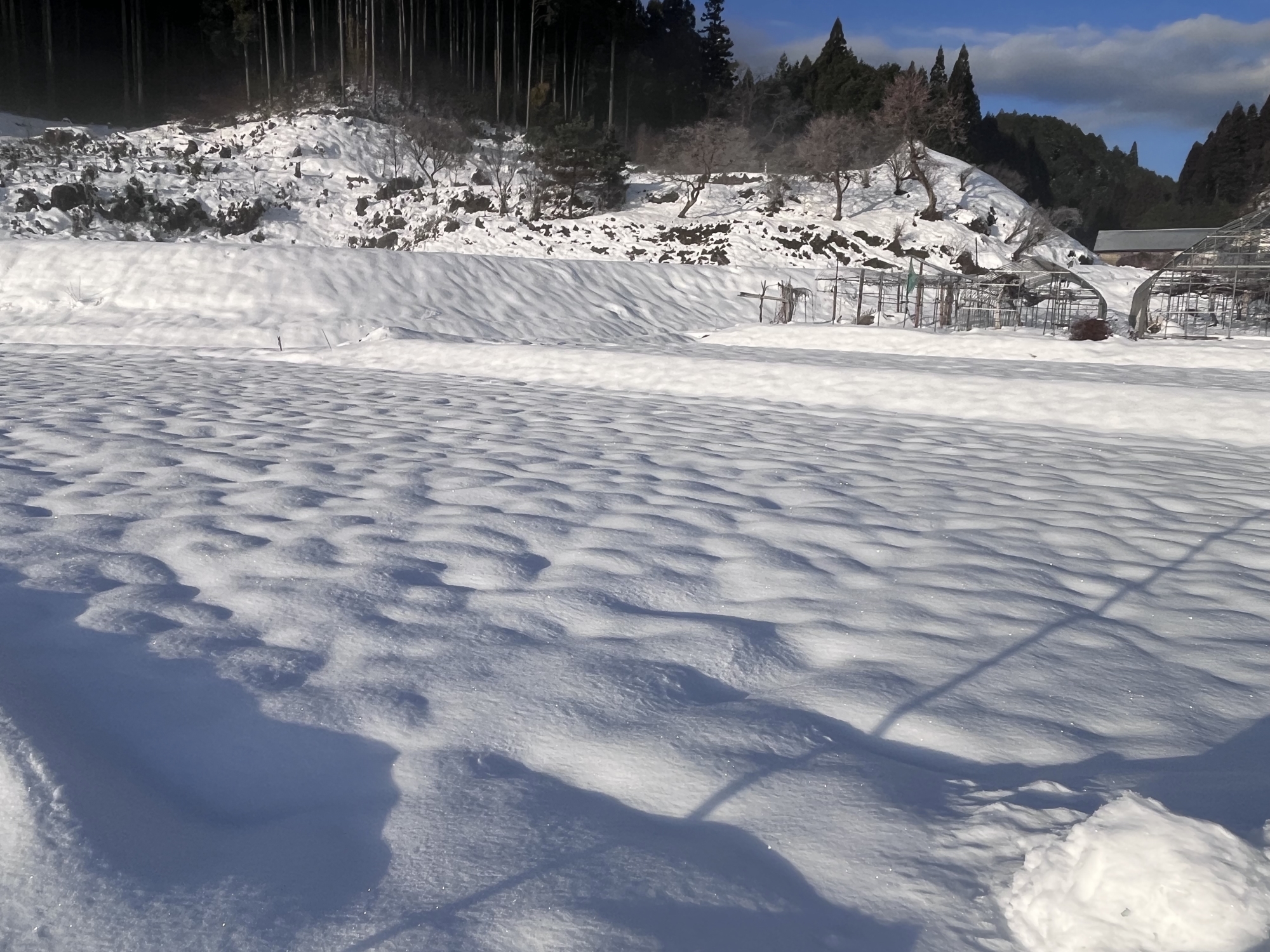 朝は冷え込んで……夜、少し降った雪が凍った感じ!!