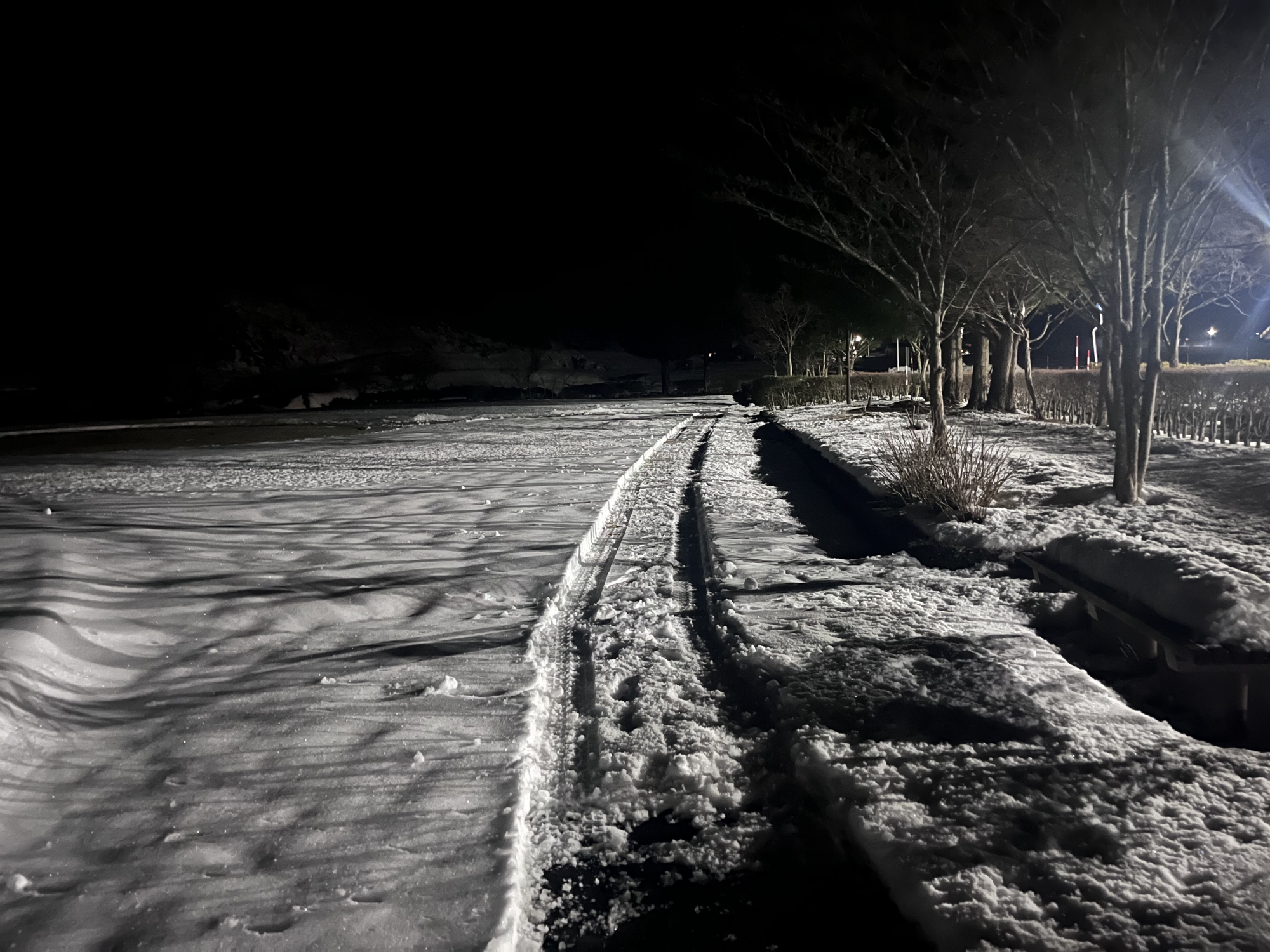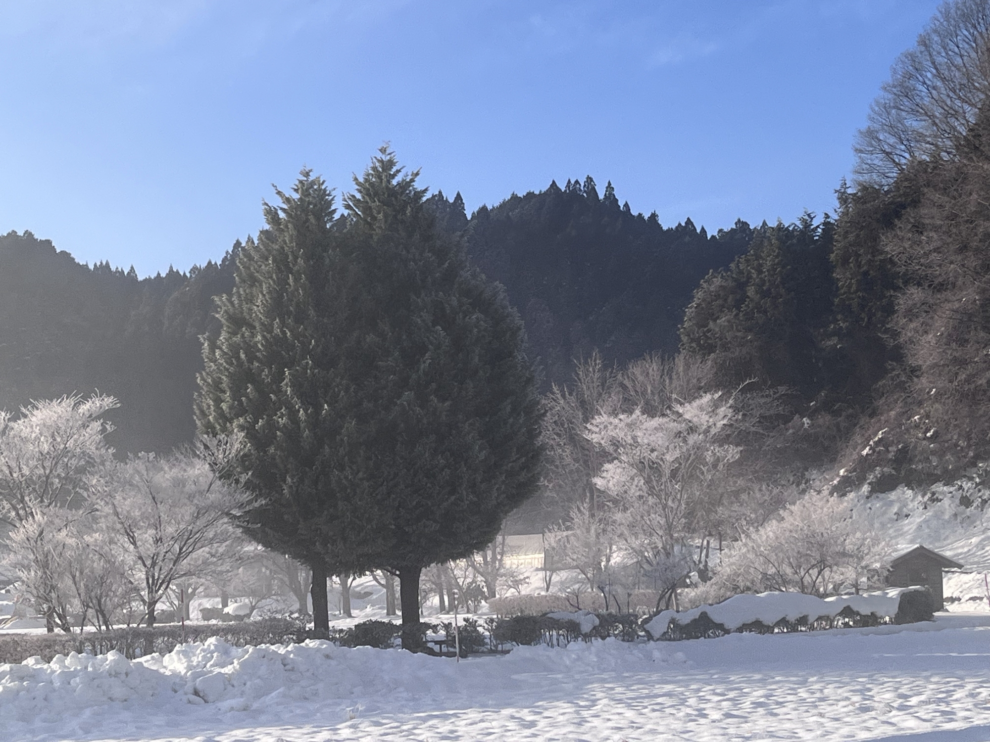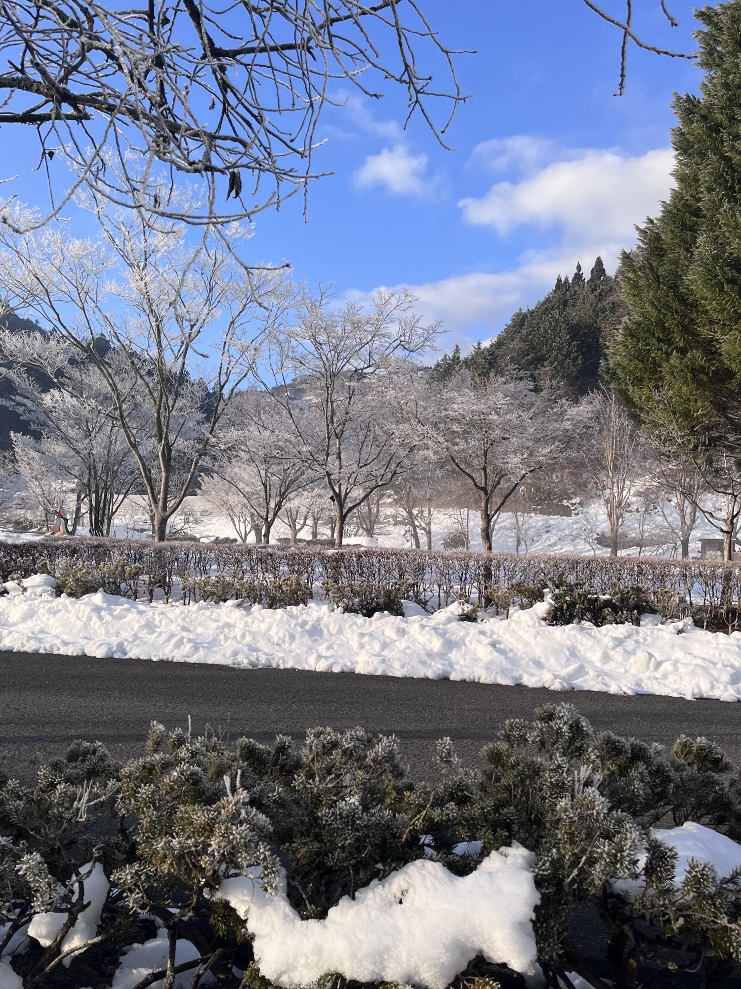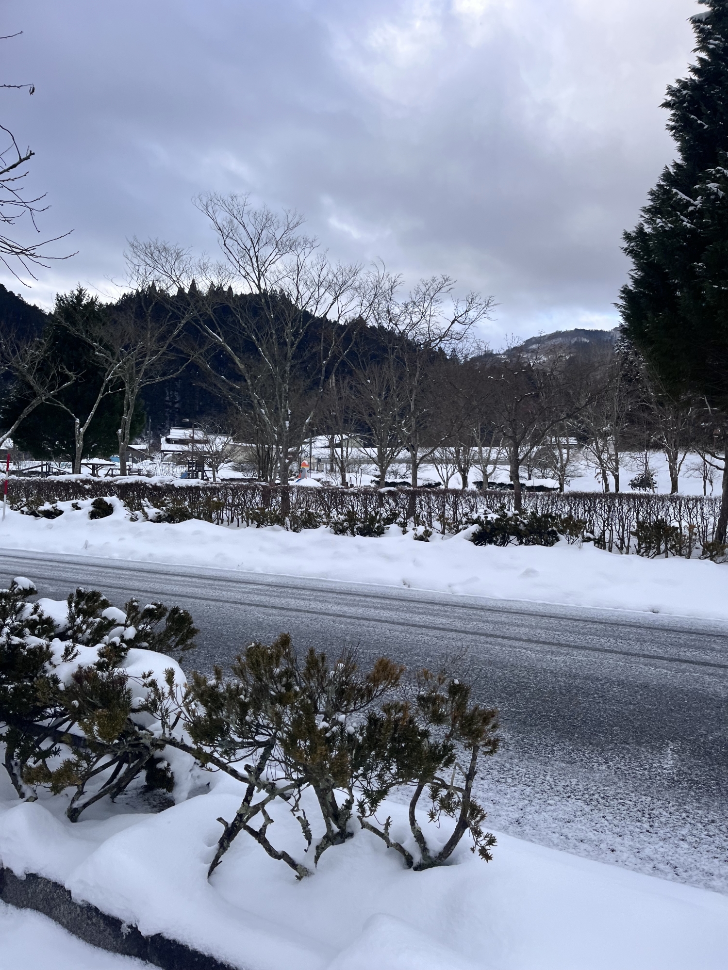 朝は冷え込んで……夜、少し降った雪が凍った感じ!!
