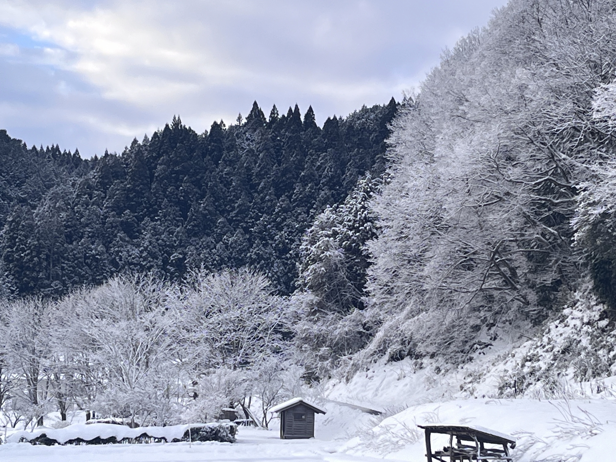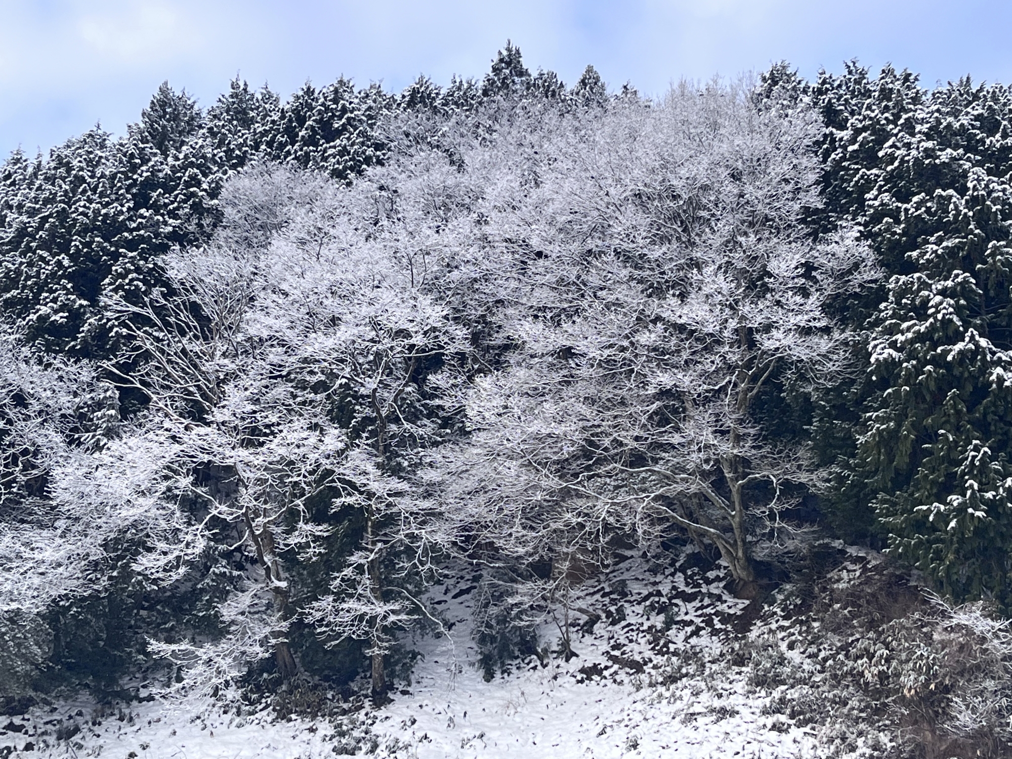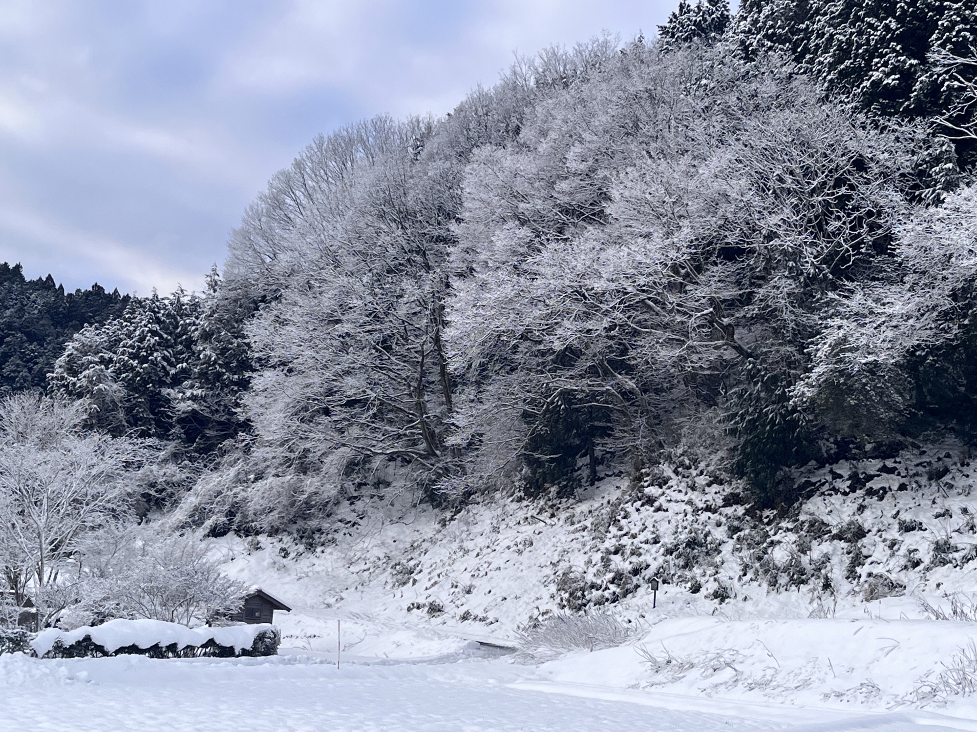 そして、枯木にも白い縁取りが美しい.