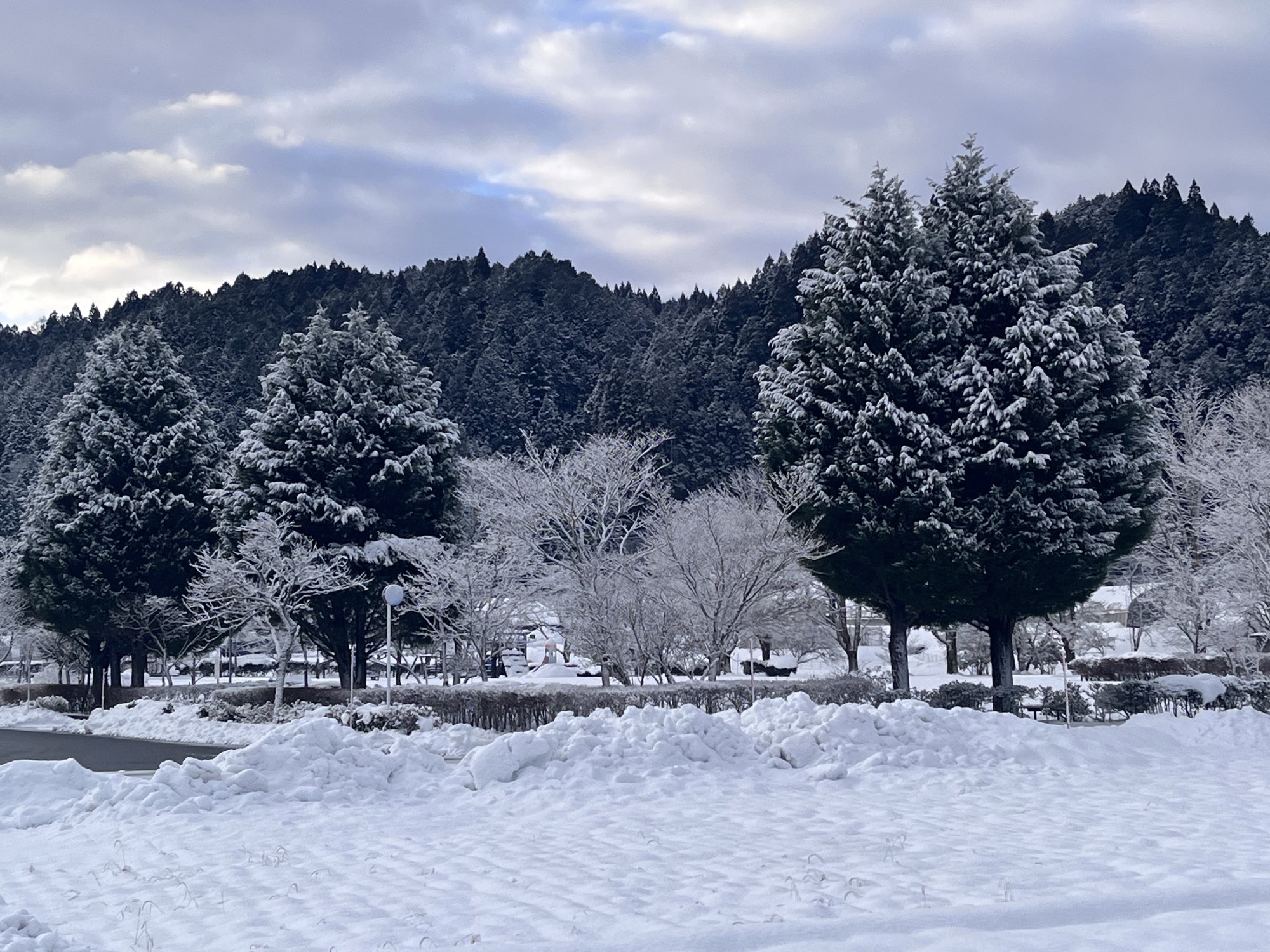 ふれあい公園は、雪が溶けていませんね.