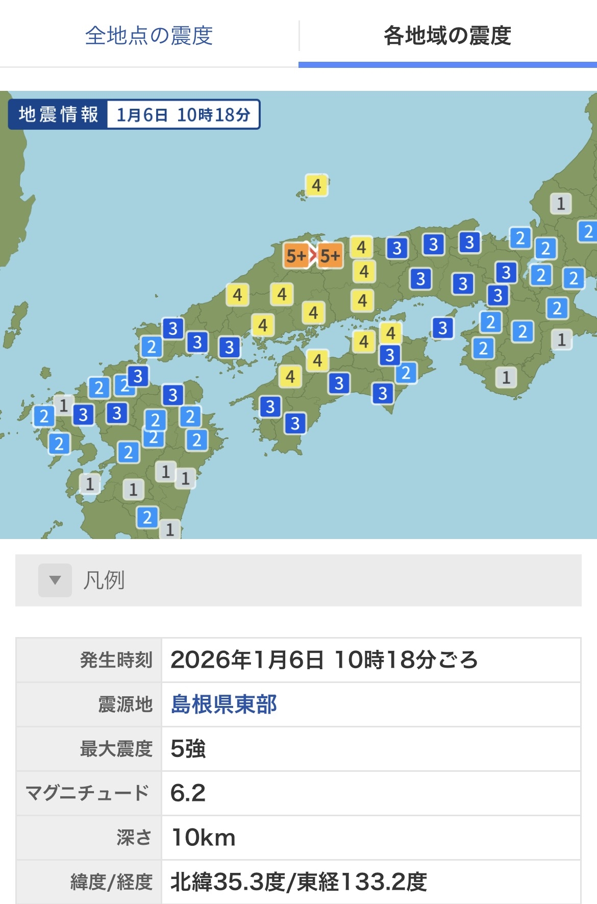 10:18 ~ 揺れました.島根東部震源の地震~震度4~M6.4だったみたい.