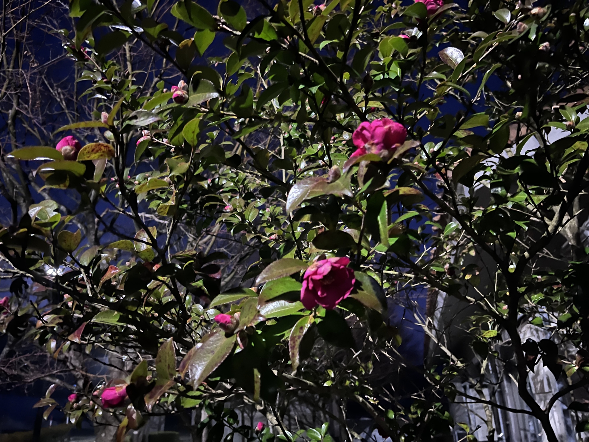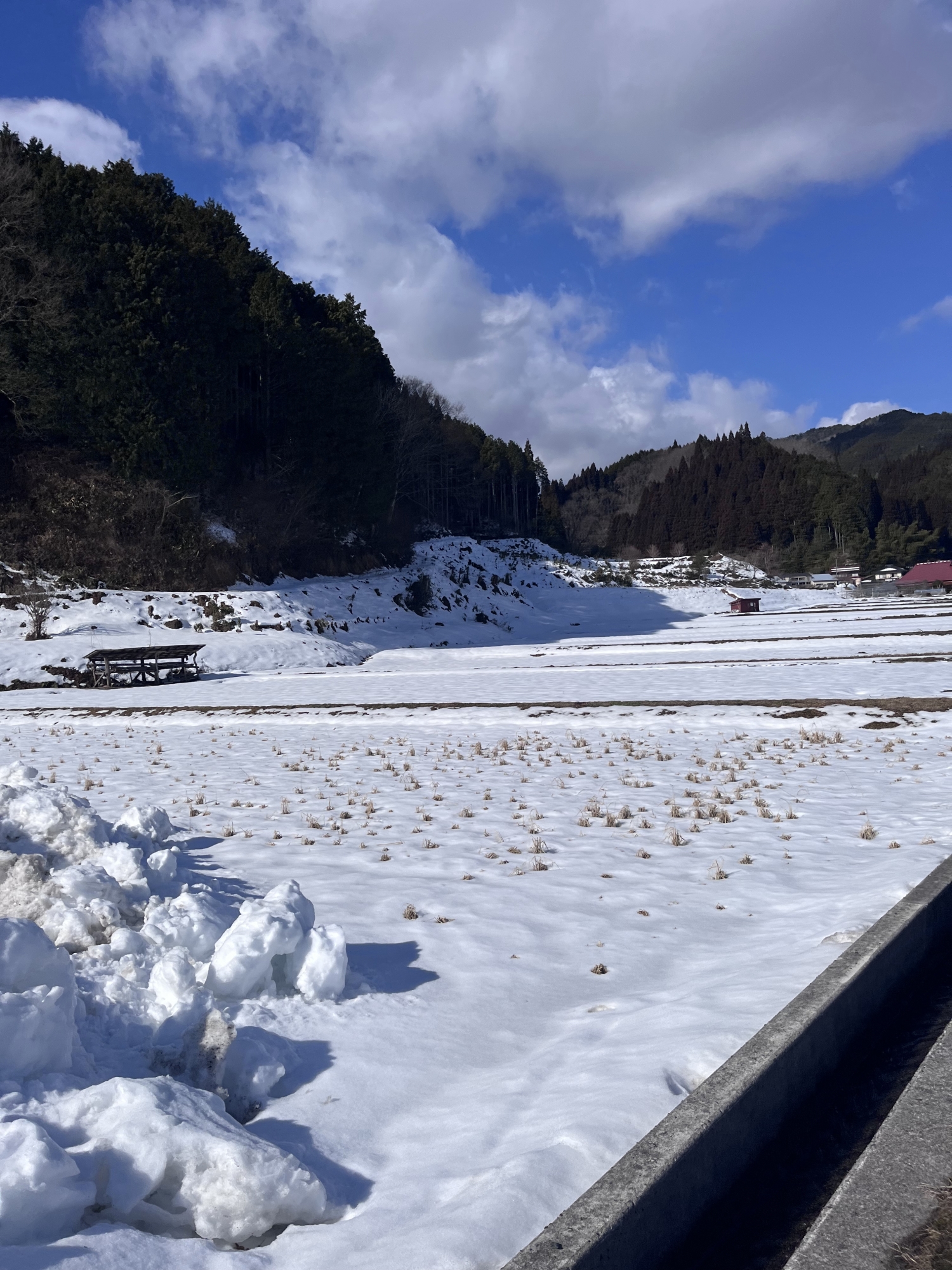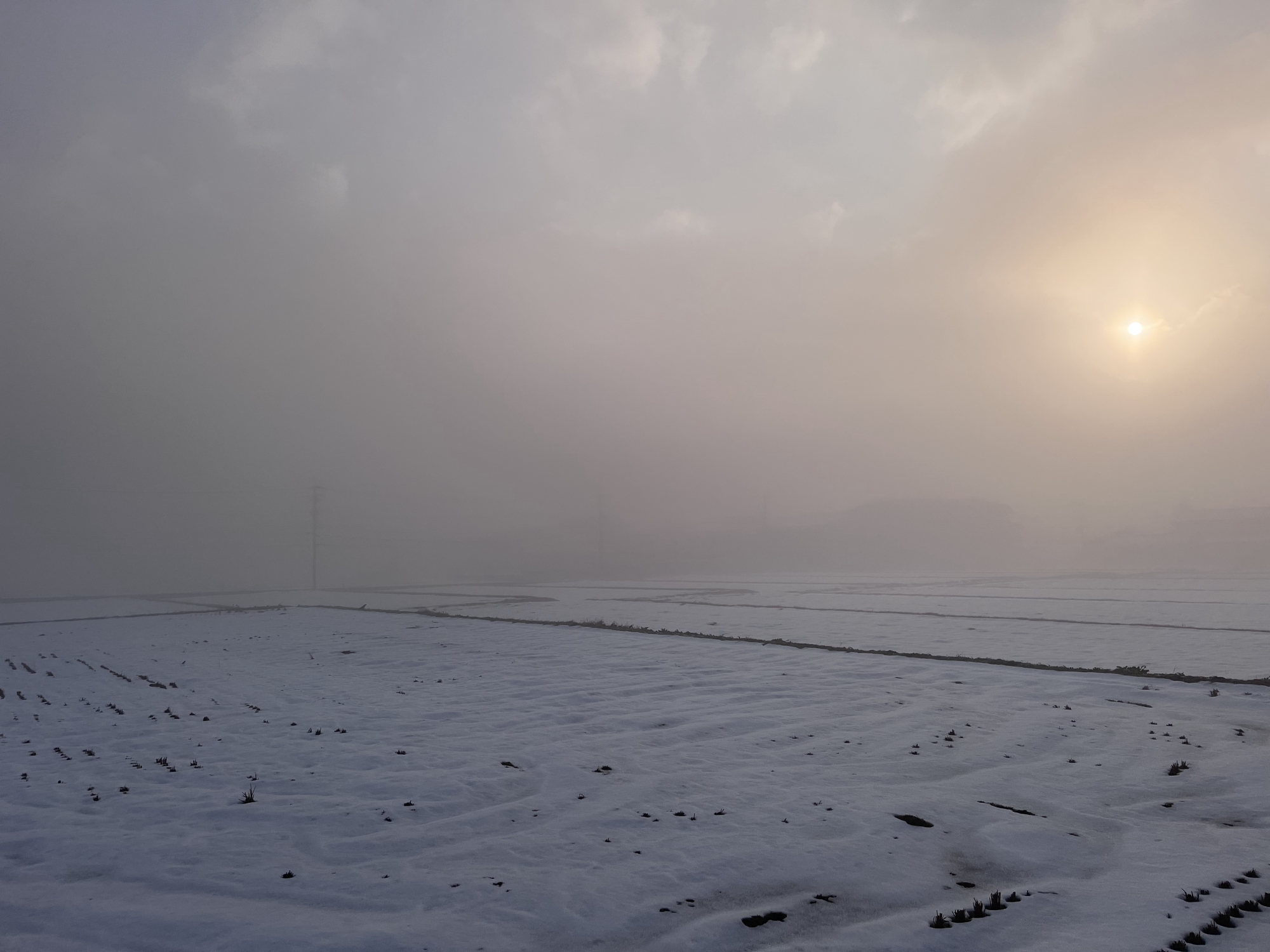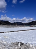 山茶花咲いて、田圃の雪も薄くなってきました.