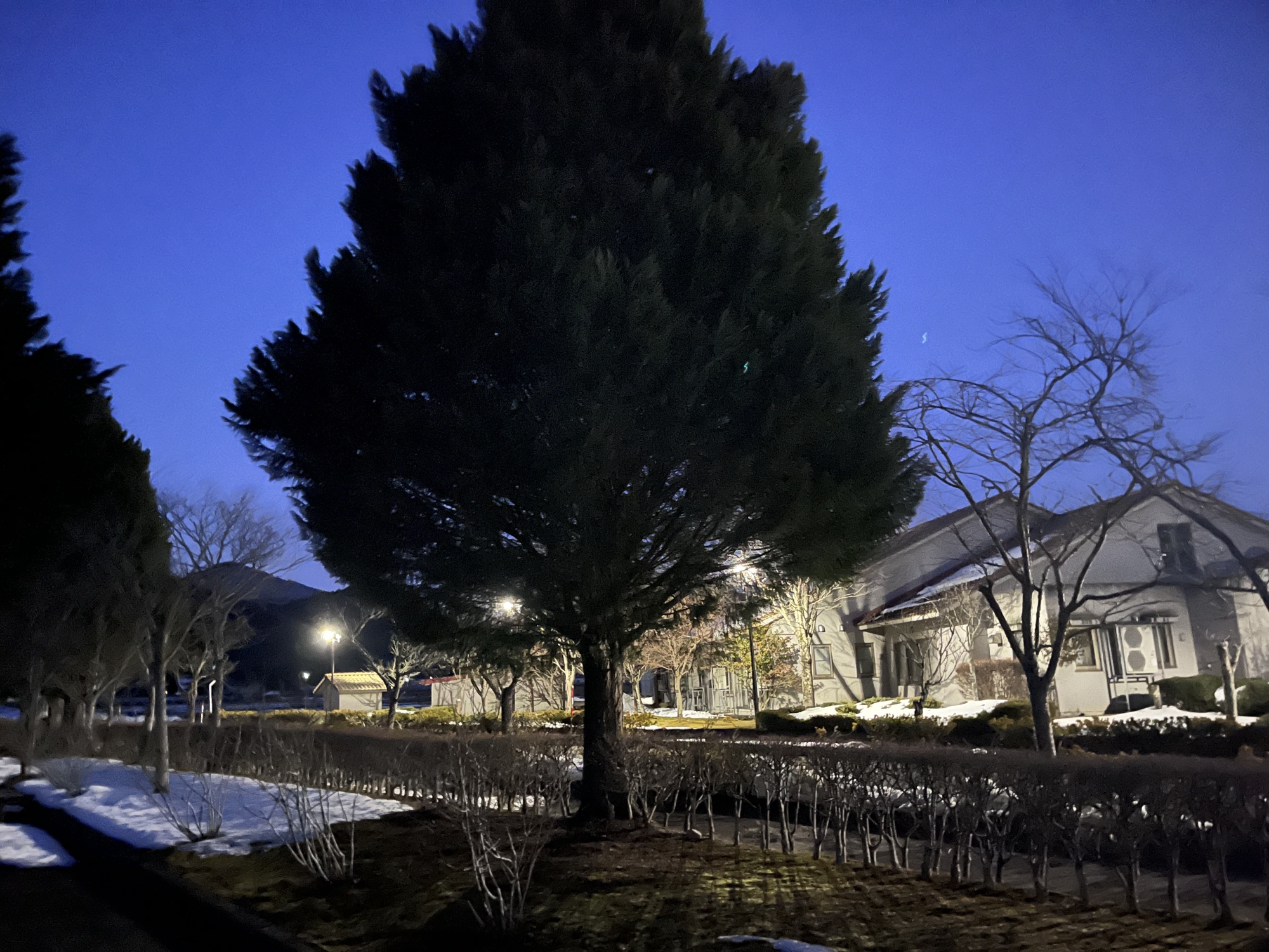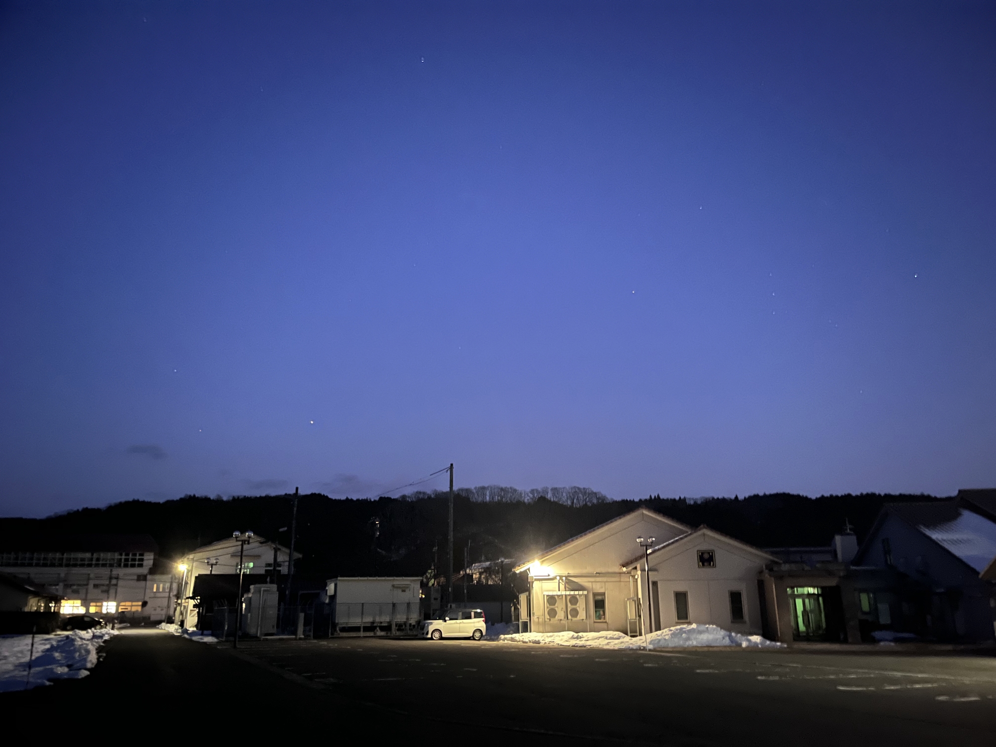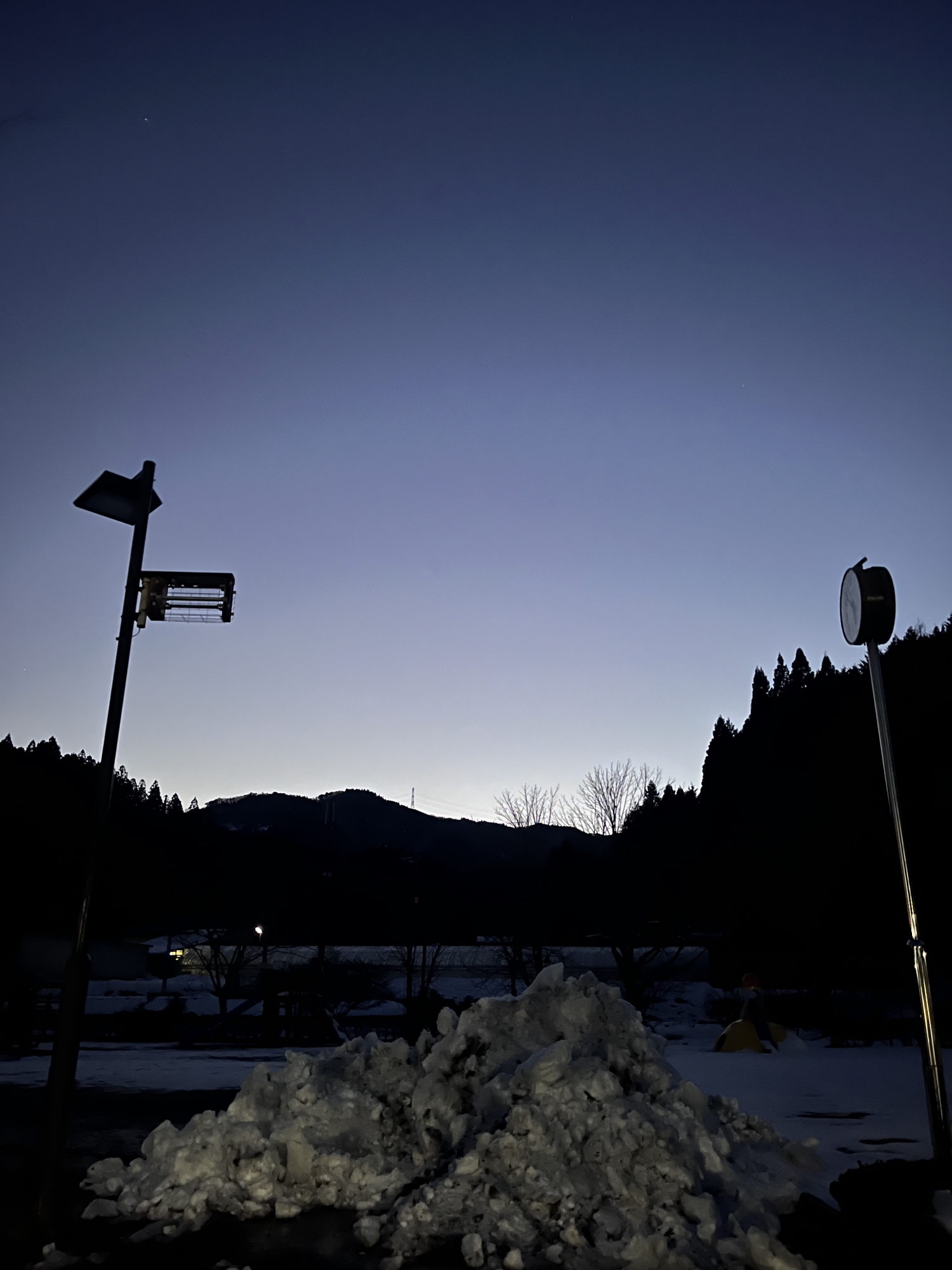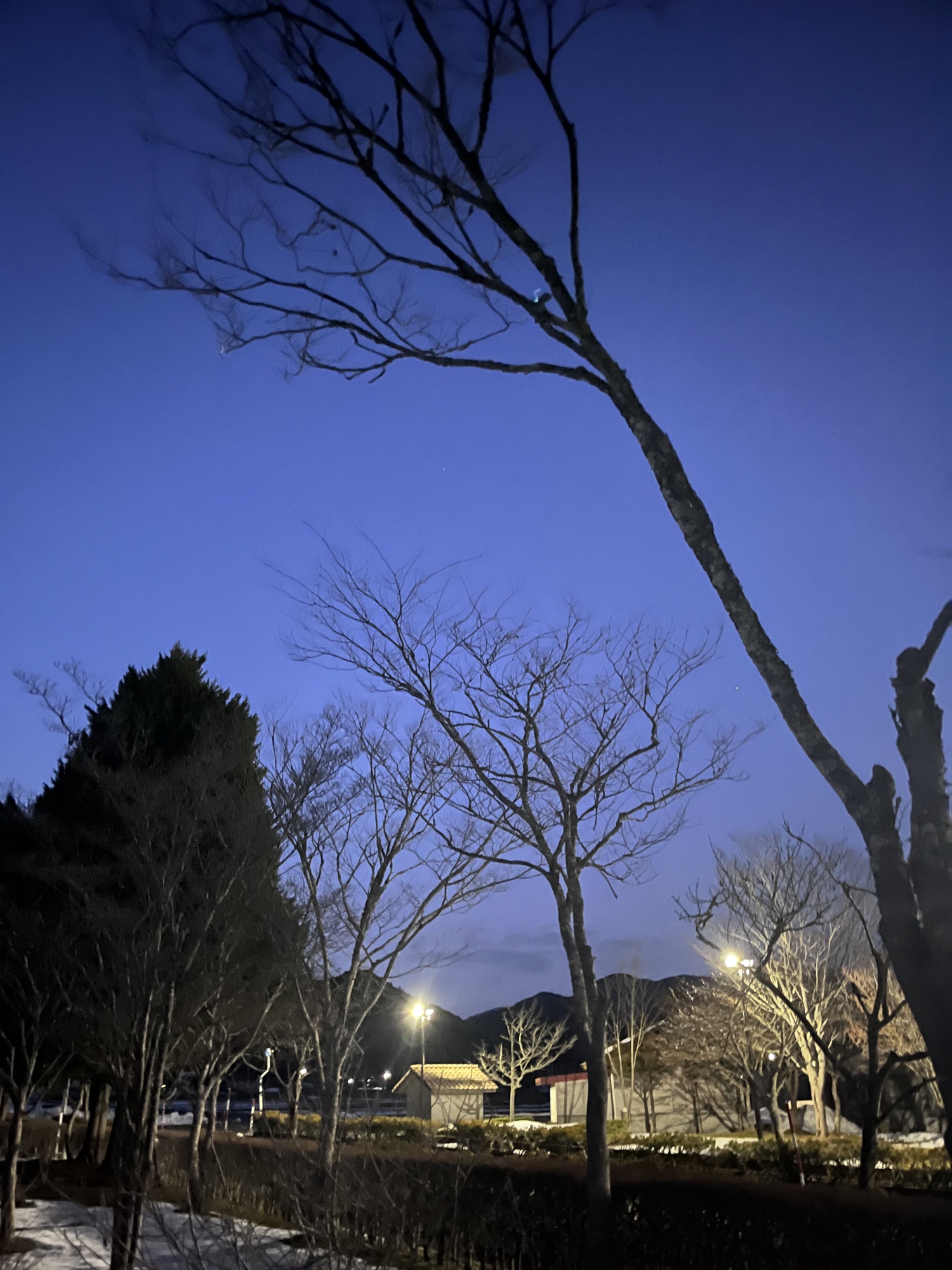 そして、もう帰路……陽が長くなってきて、まだ暮れてませんが、雲もなく、絶妙な色合いの空です.
