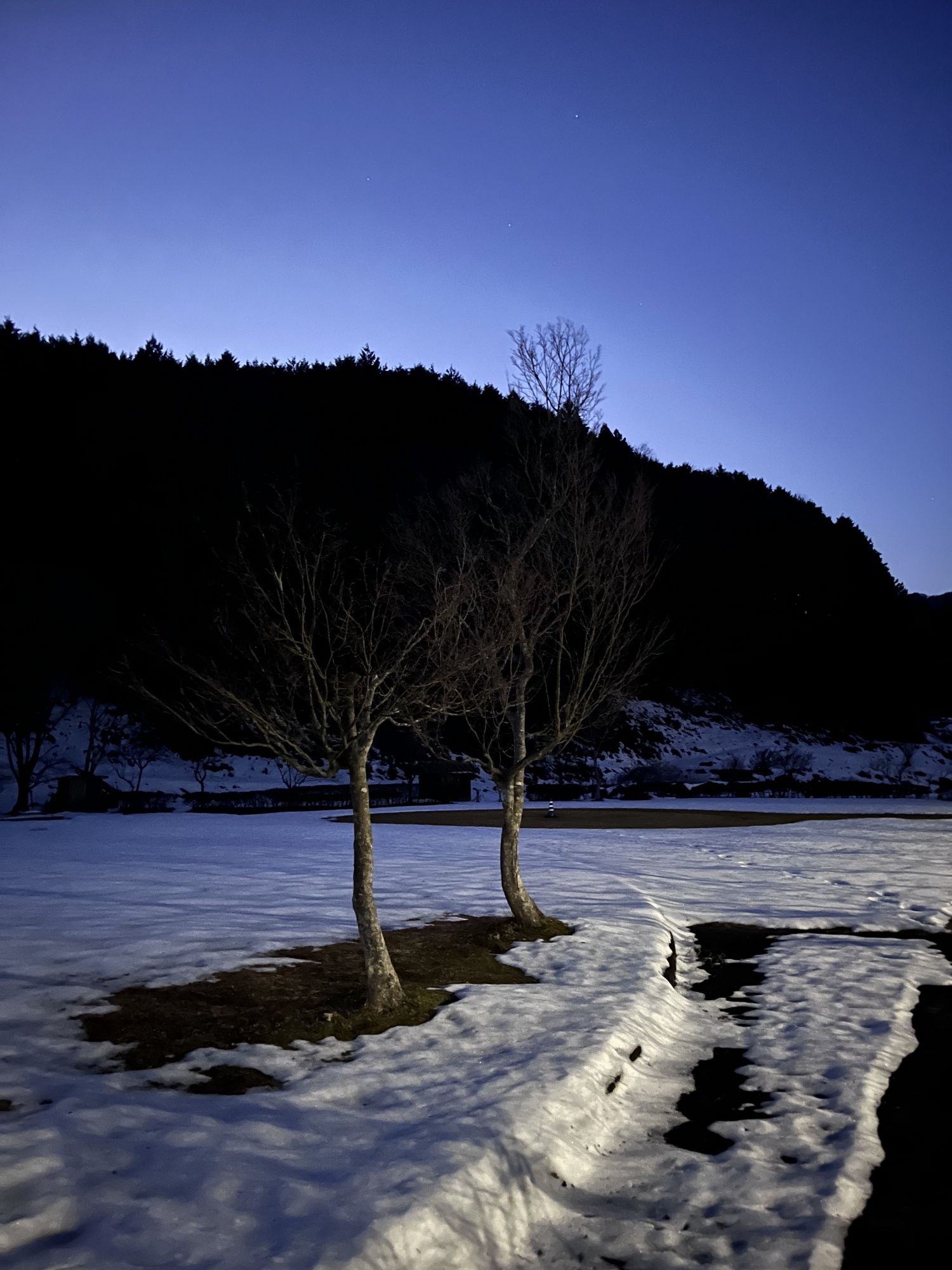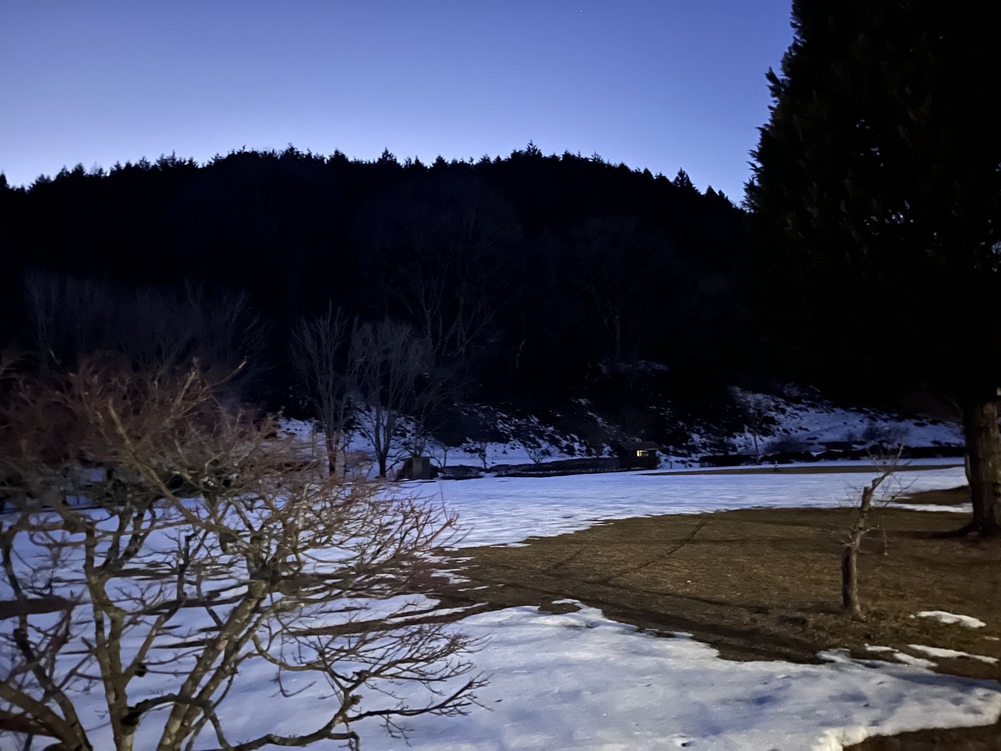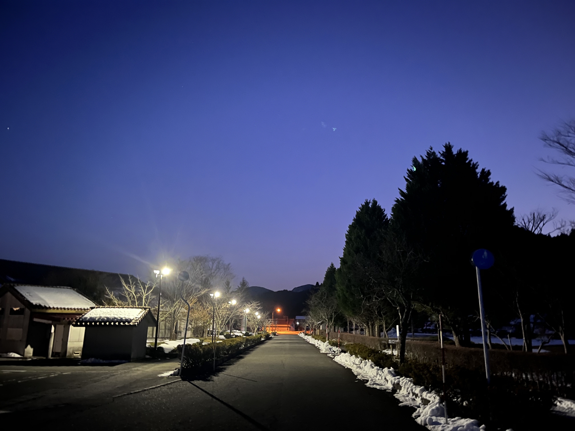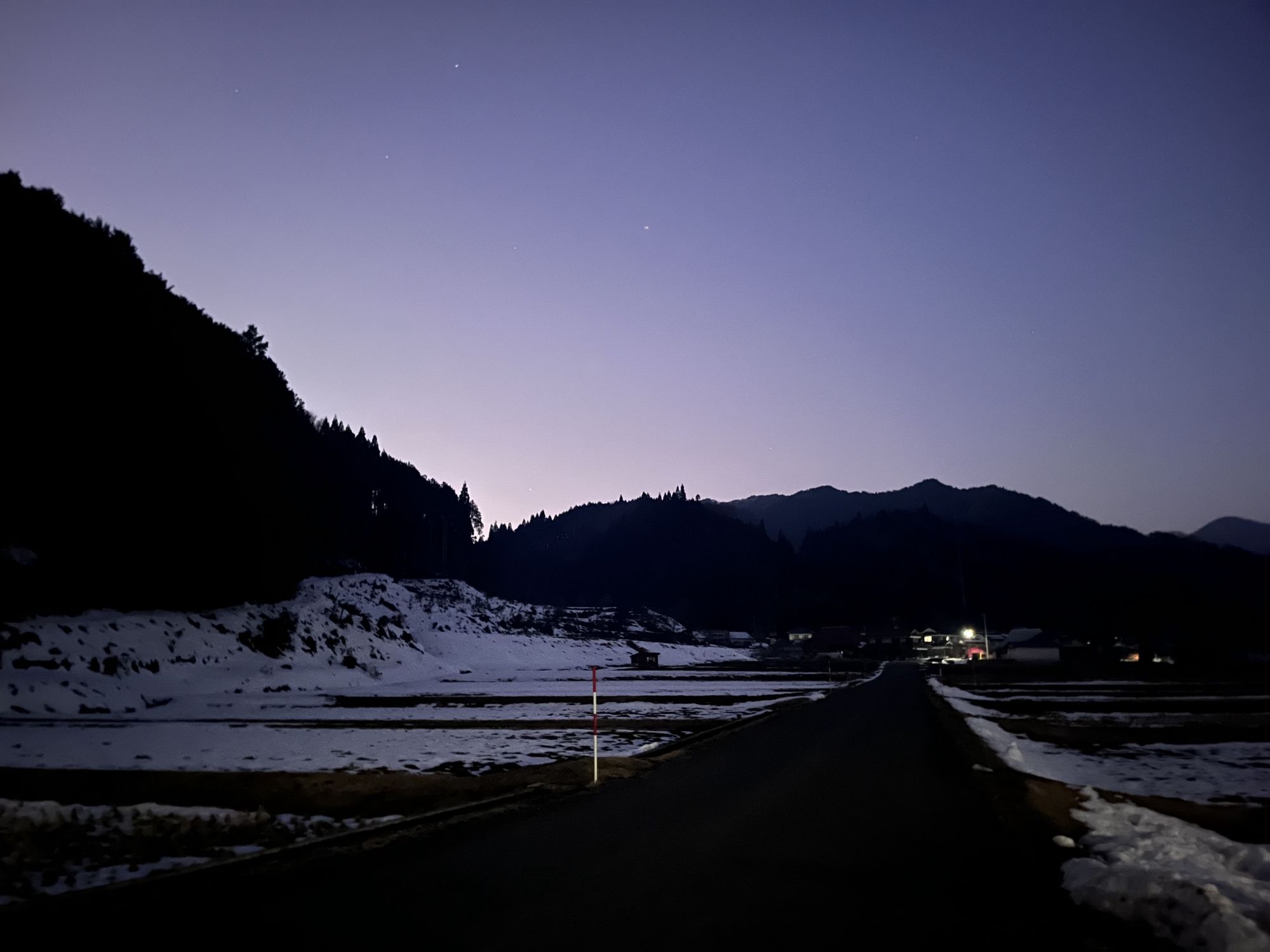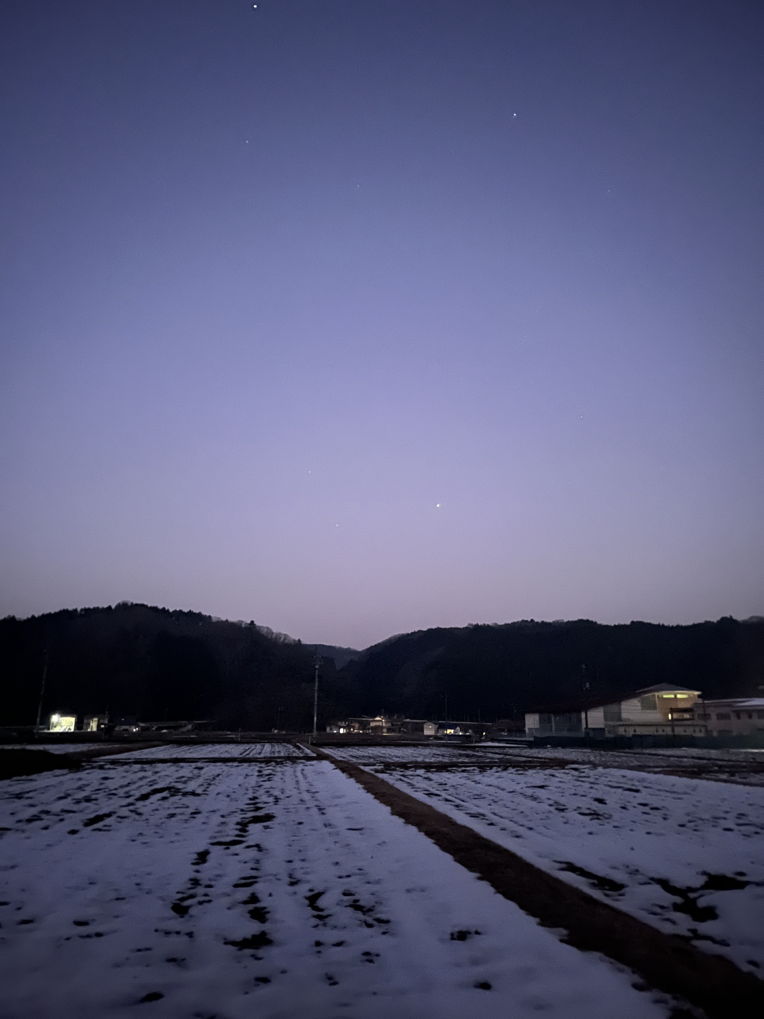 そして、もう帰路……陽が長くなってきて、まだ暮れてませんが、雲もなく、絶妙な色合いの空です.