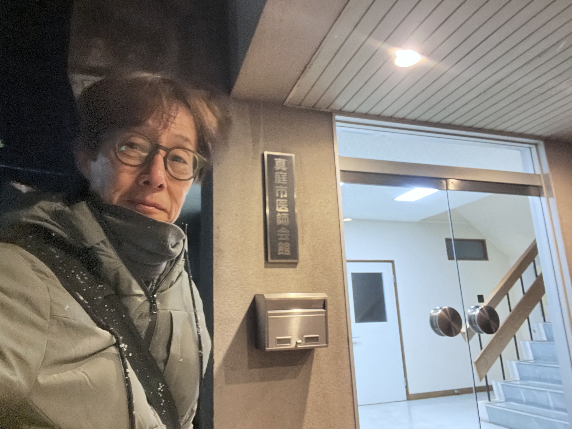 夕方、早めに戻って……夜、真庭市勝山で会議.