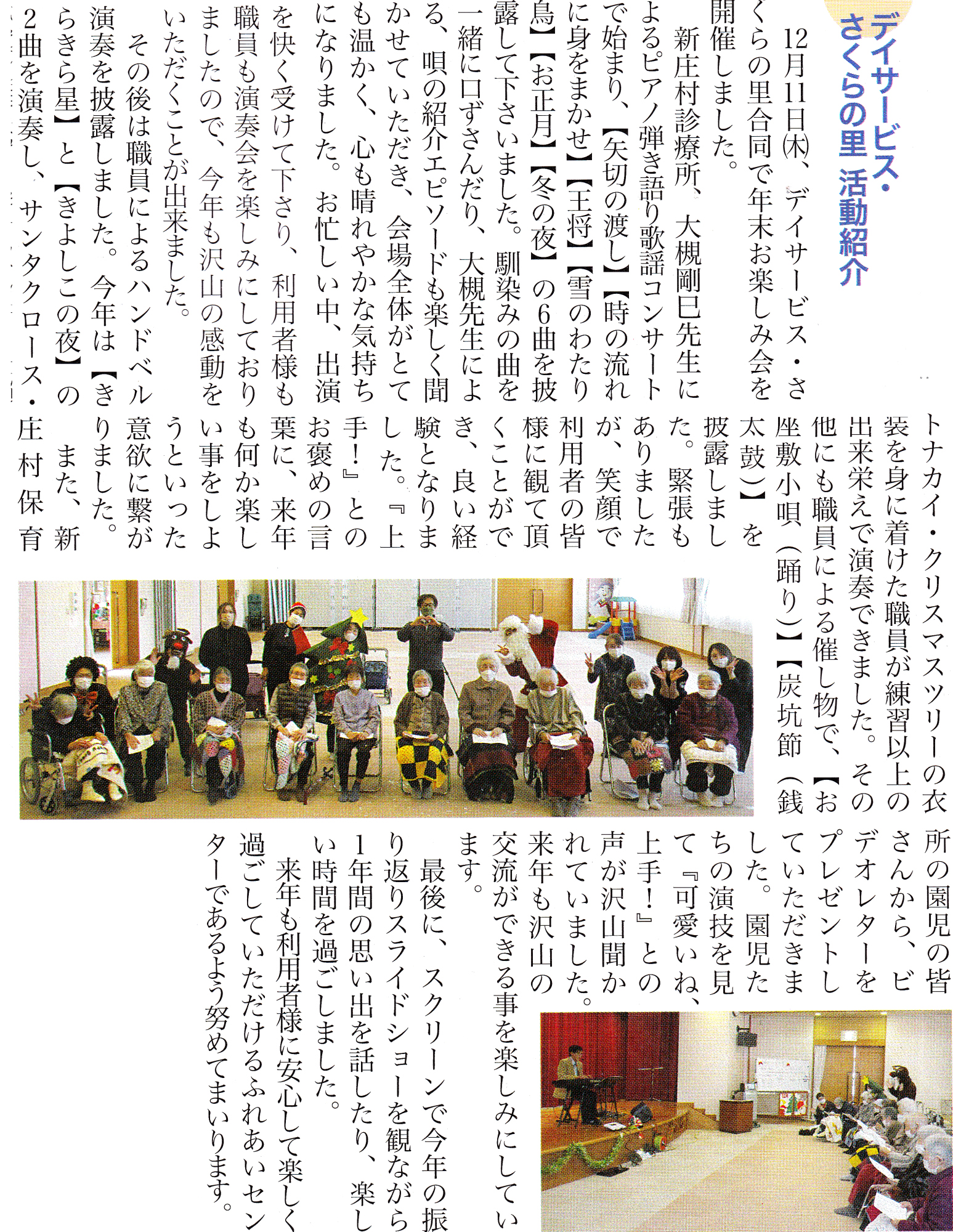 届いた村の広報の「社協」の所に、12月の年忘れ会の記事.