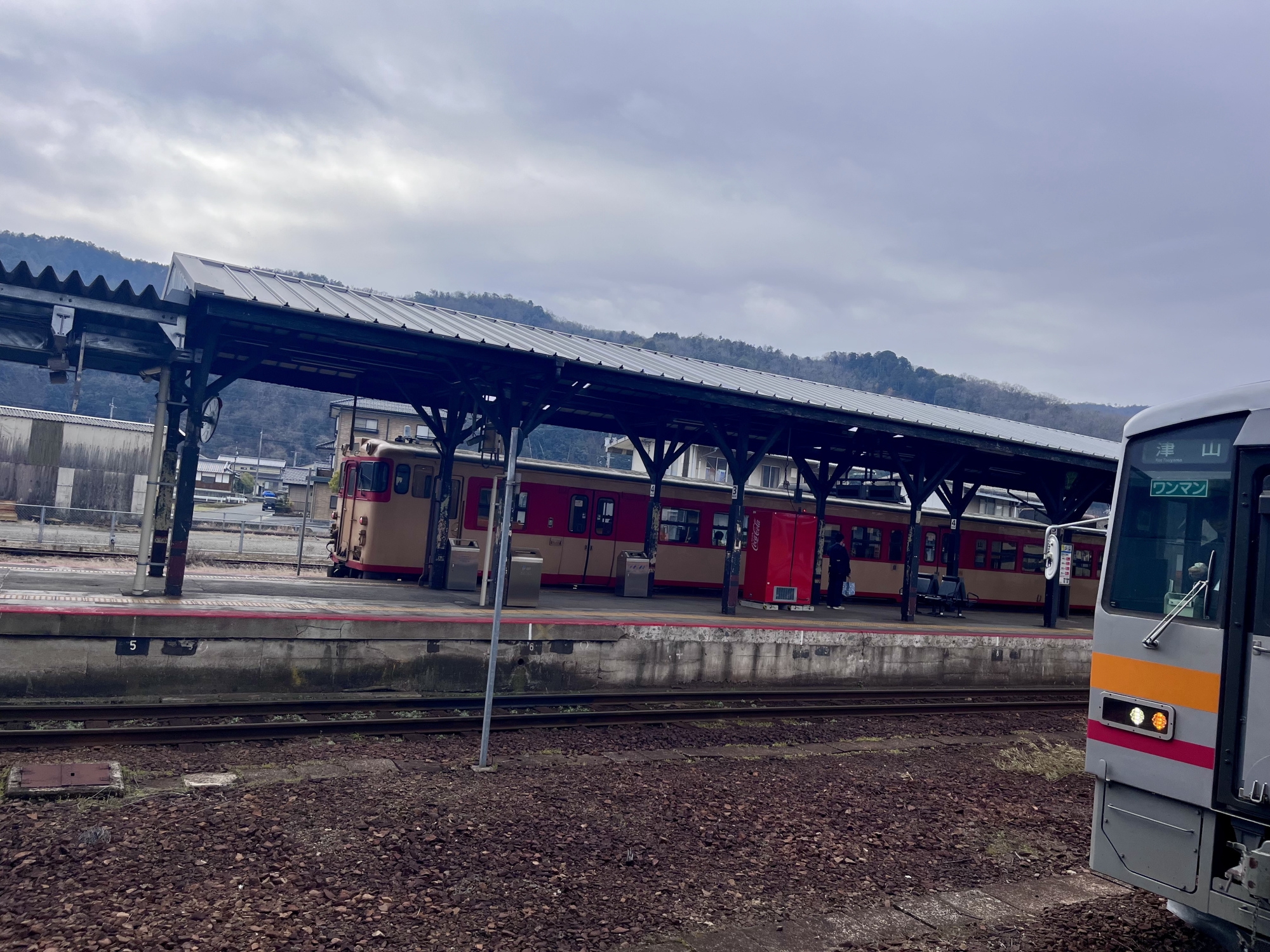 今日は、.全国的に春の暖かさってことで、少し薄着で、当初の予定通り、まにわくん→姫新線で津山へ、Port Art & Design TSUYAMAへ