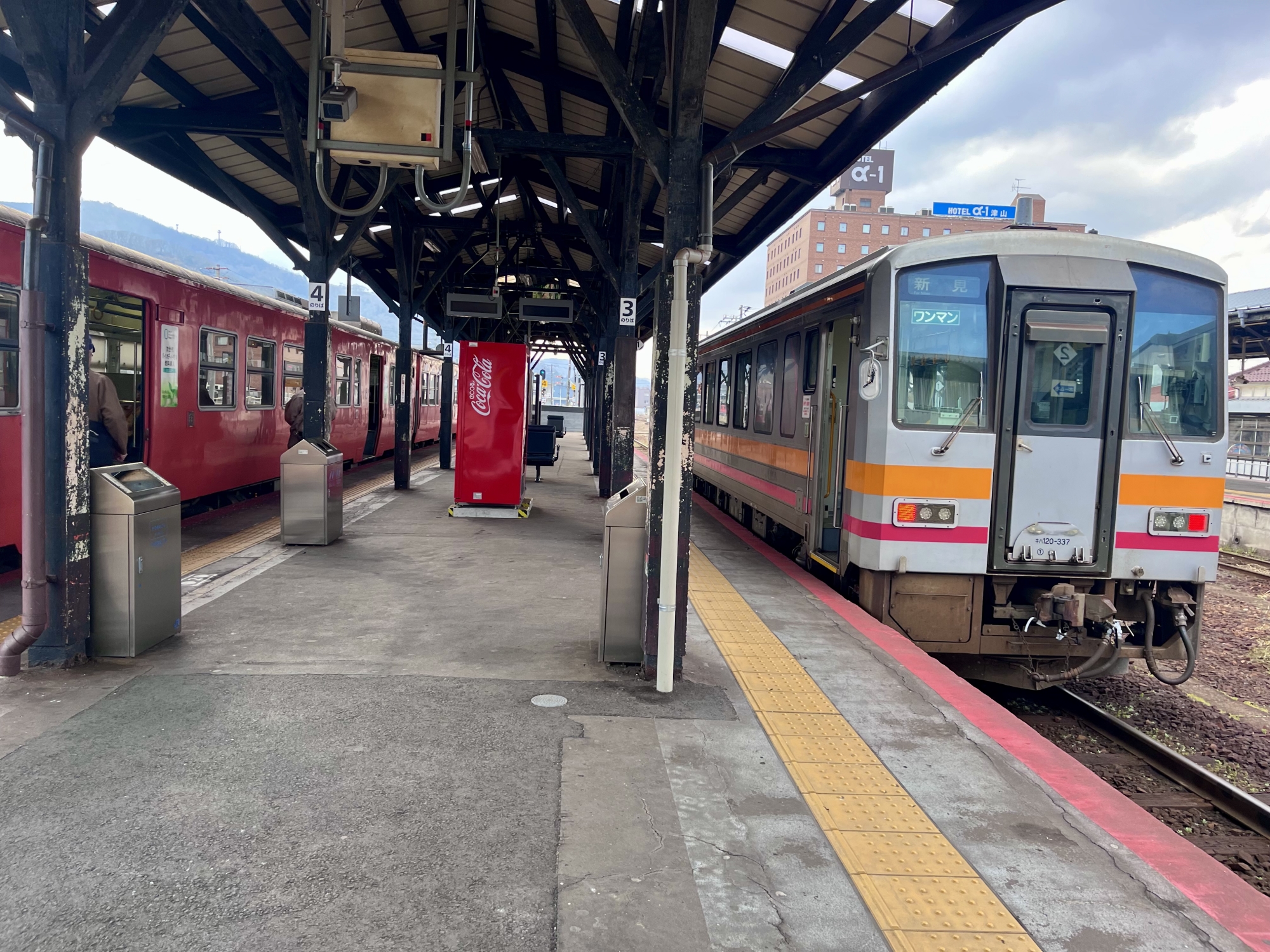 丁度、この時刻は、上り(新見行)も下りも同時発車!