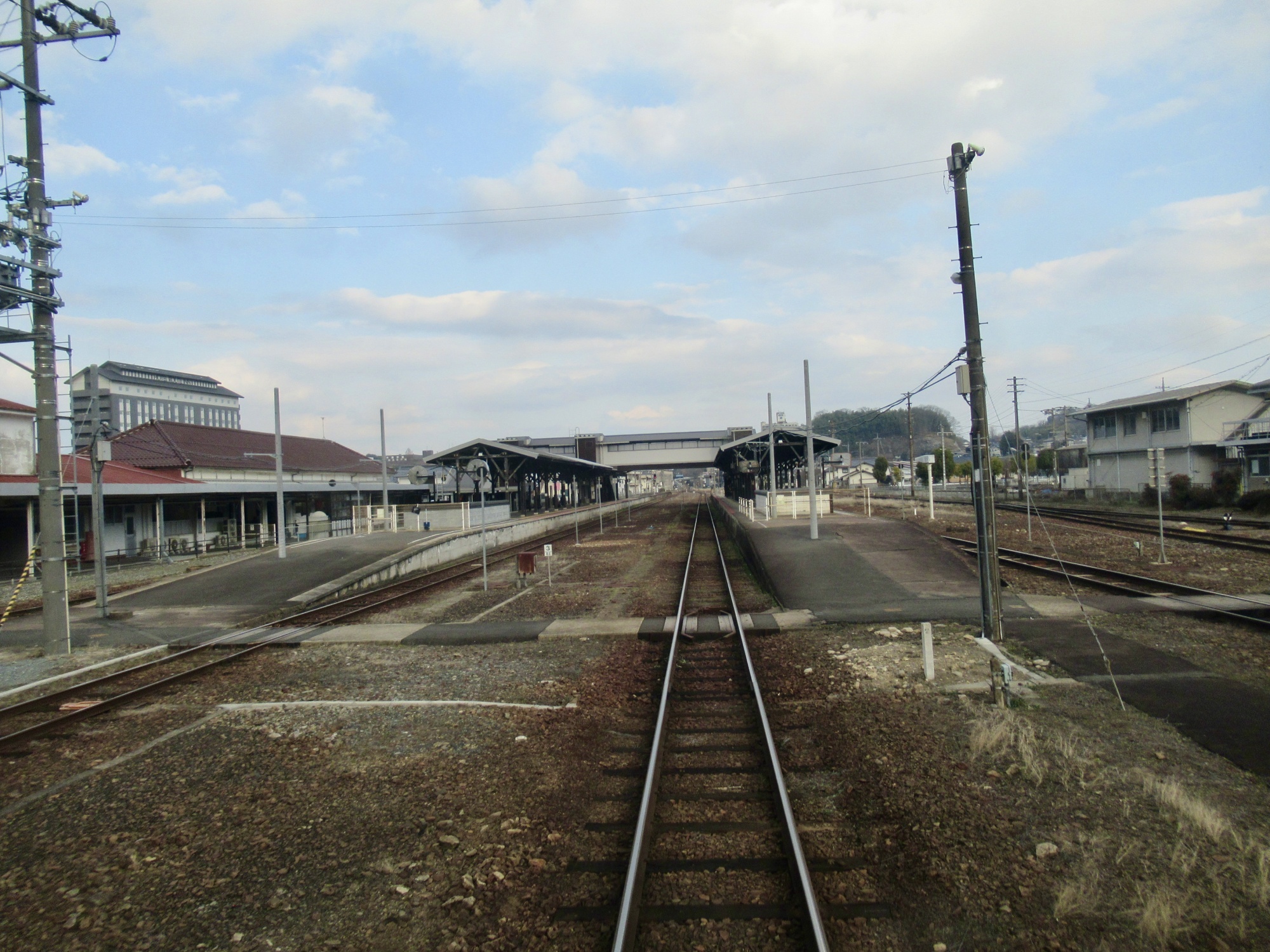 さて、最後尾に立って、基本、過ぎて行く駅舎とホームを撮影.