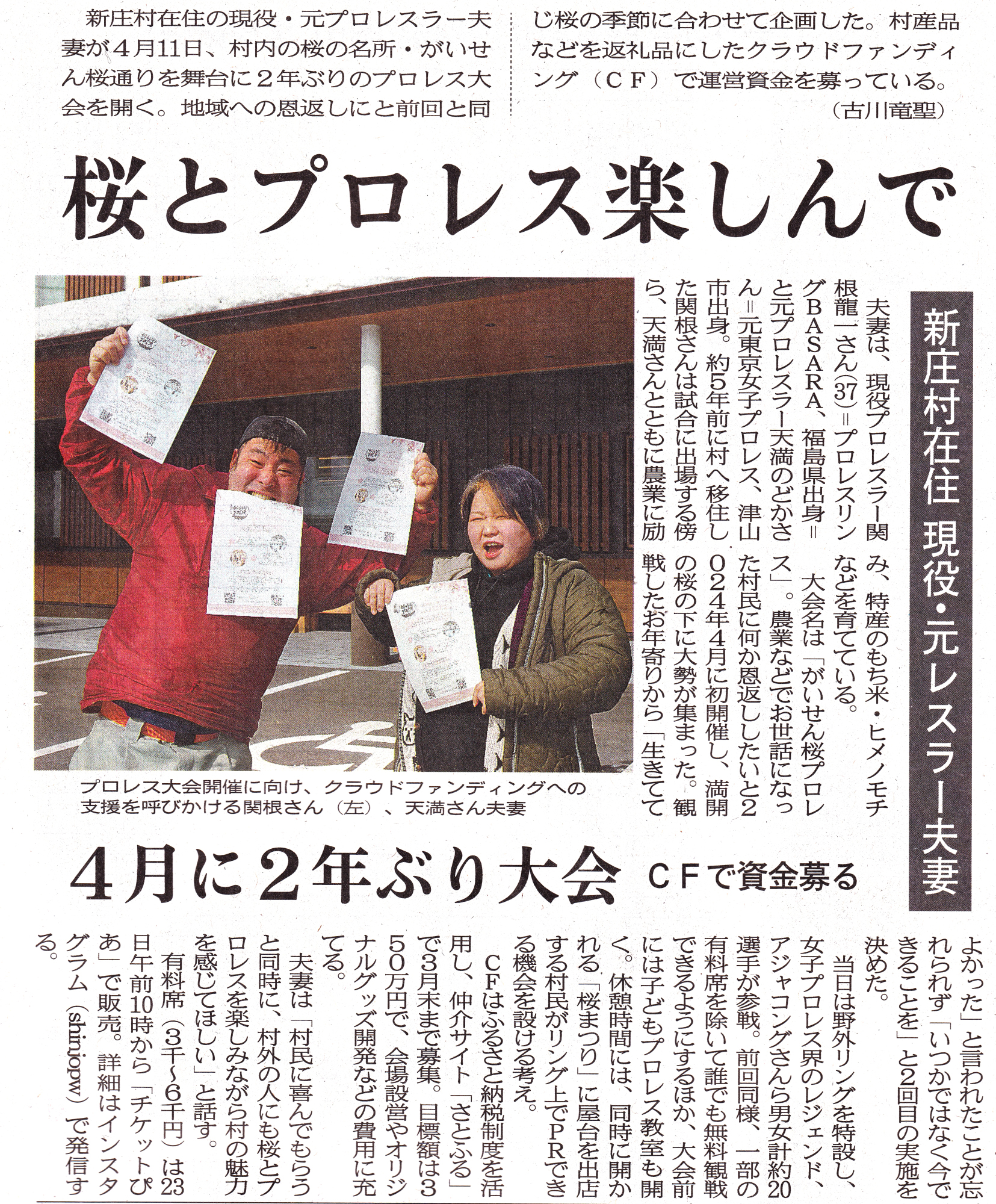 朝刊ではがいせんざくら祭り+プロレスの記事