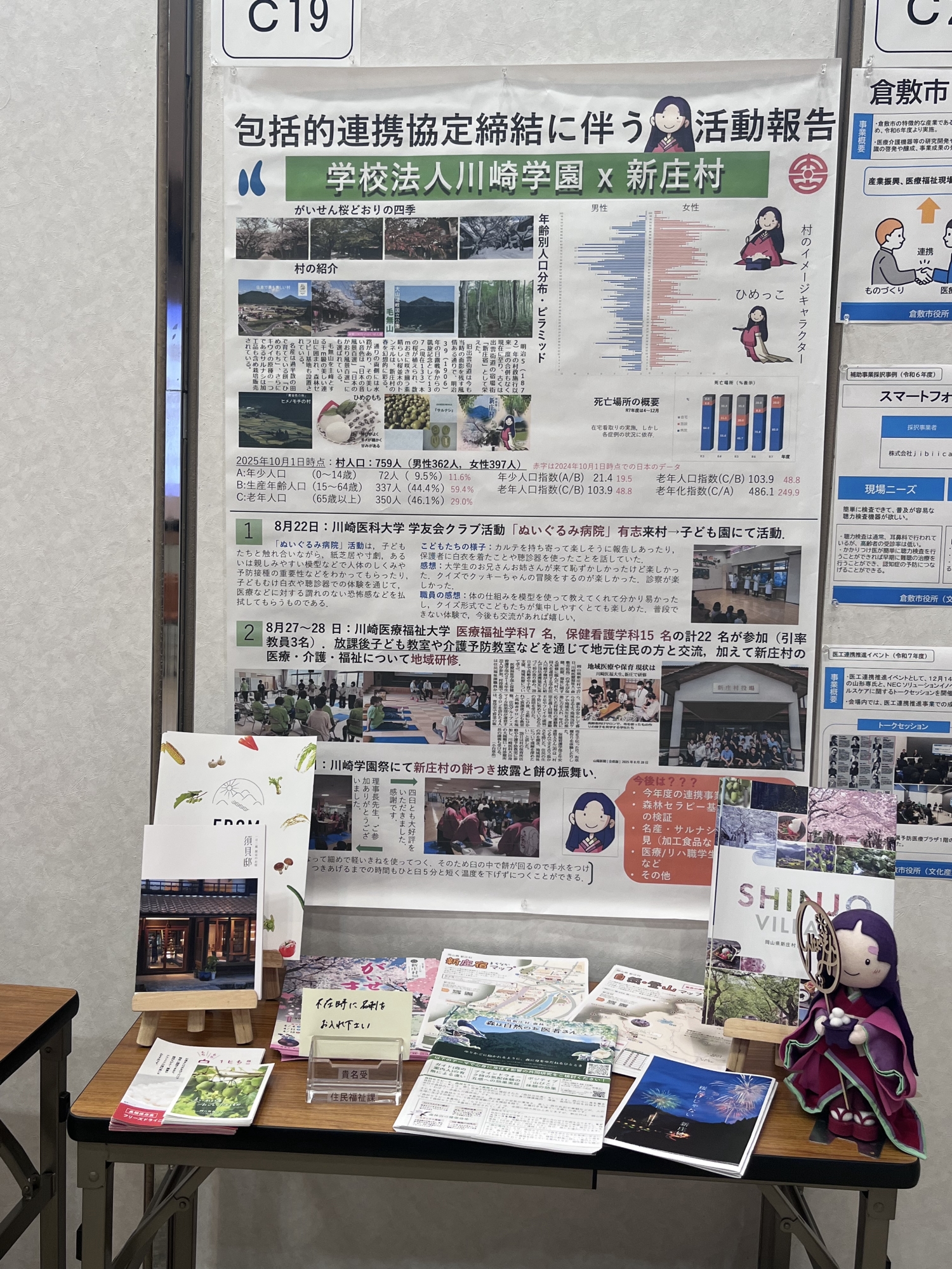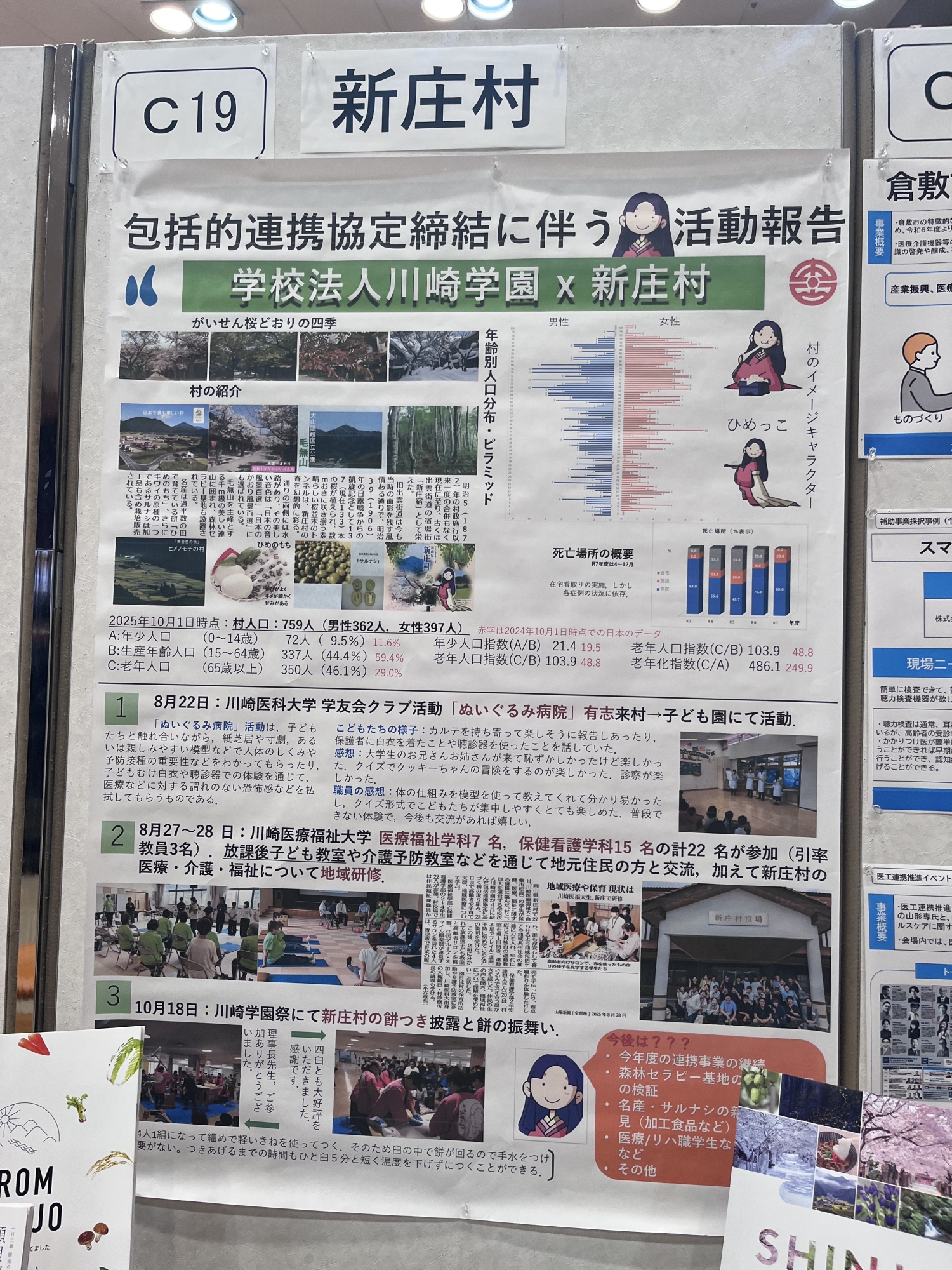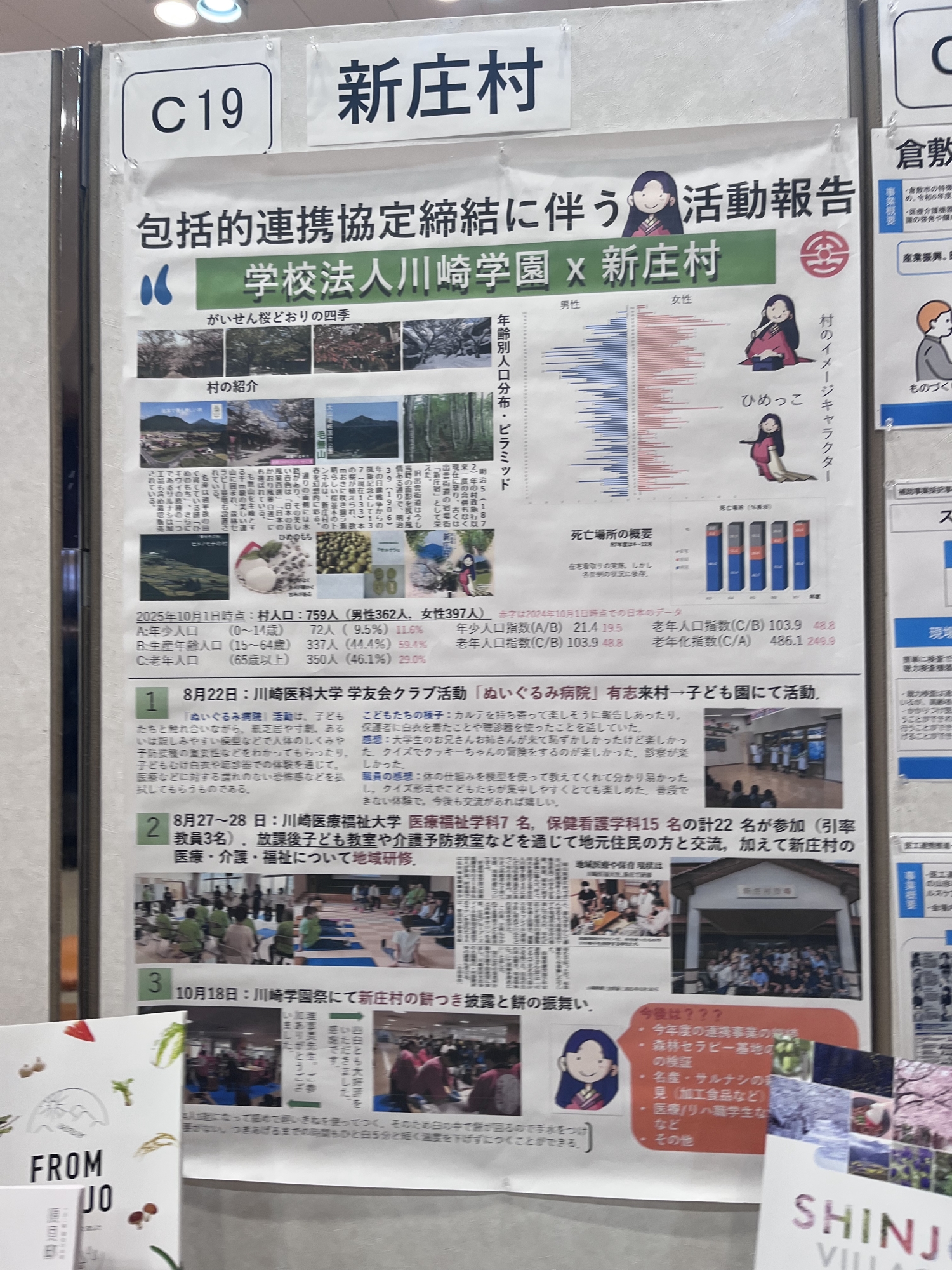 以下青字は村の広報用の原稿素案:2026年2月19日、川崎医科大学主催の産学連携展示会、KMSメディカル・アーク2026〜医療技術でつなぐ、地域・高齢者・未来〜が、本館大講堂で開催されました.新庄村も昨年4月に川崎学園と包括協定を締結したご縁もあって、地域医療ニーズの紹介、更に、共同研究のシーズ紹介を兼ねた出展のお声掛けを頂き、診療所長・大槻と保健師・谷川の二人で参加してきました。