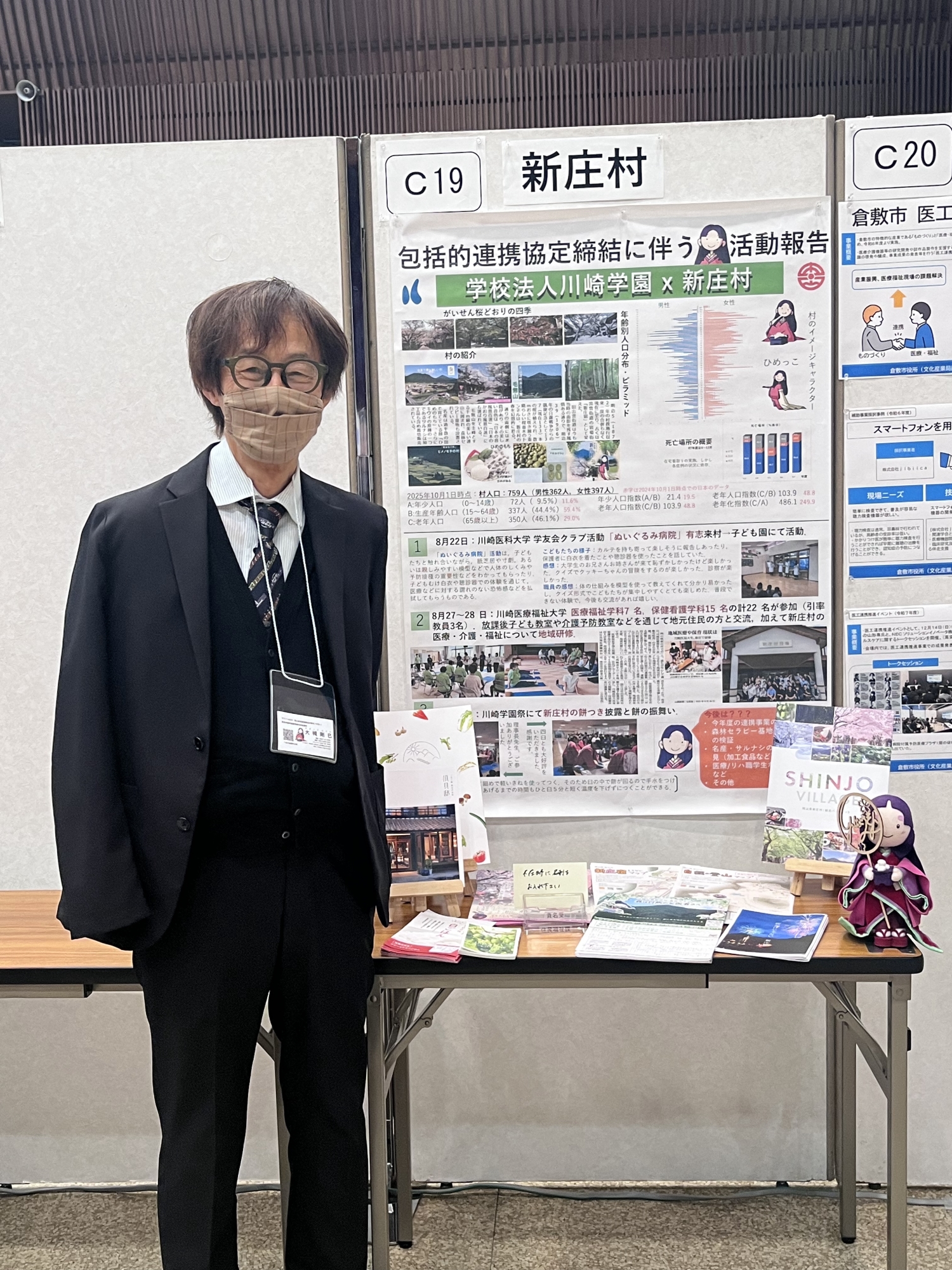 これまでに加えて、初の試みとして、医大学生の研究発表と共に、地域の医療ニーズという事で、倉敷市、霧島市(川崎学園創設者の出身地)、高梁市と共に、新庄村からもニーズを紹介させて頂きました.現在の実行委員会のご配慮で、村のニーズは大槻が登壇させて頂いて発表してきました.医療資源と人材の問題、そして、検体輸送や癌スクリーニング、さらには生活習慣の改善と予防戦略などについて、かいつまんで報告してきました.