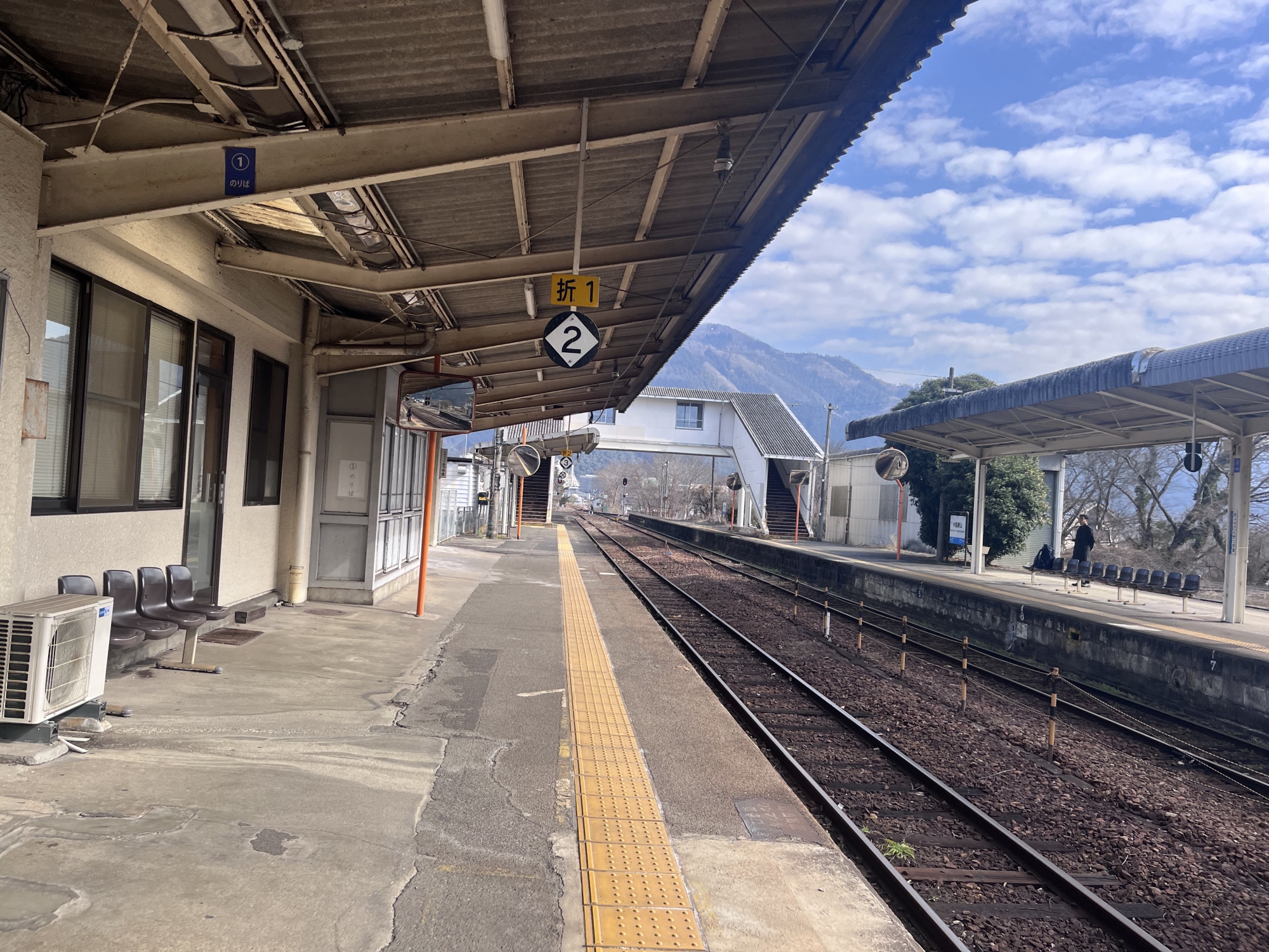 2番ホームですね.佐用・姫路方面……津山線と因美線、さらに、姫新線は中間の駅、沢山の線が交差してますね.
