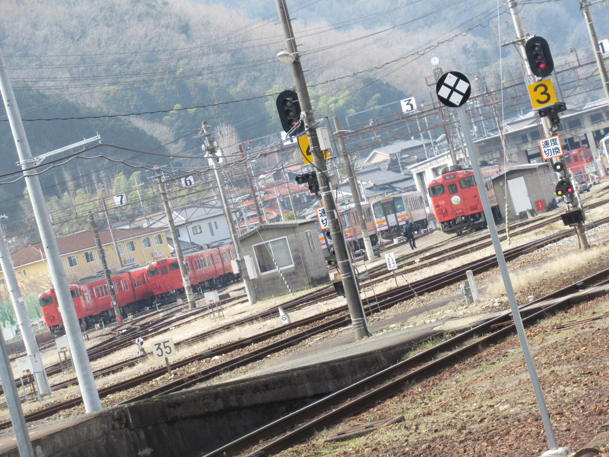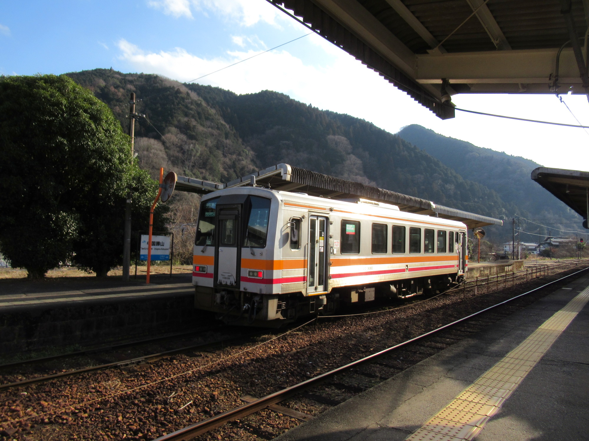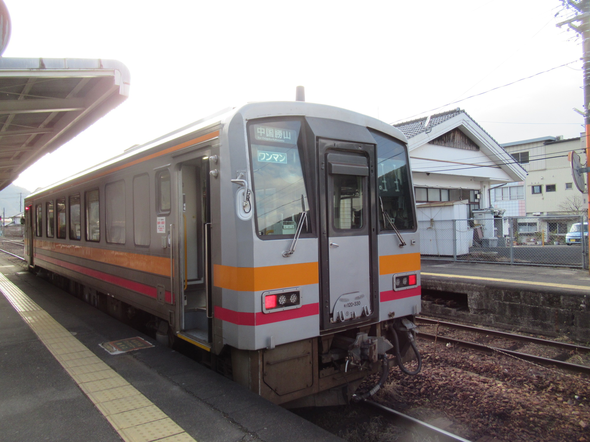 津山駅はやっぱり車庫の方から一杯、始発の列車がやってきます~そして、勝山駅に到着.