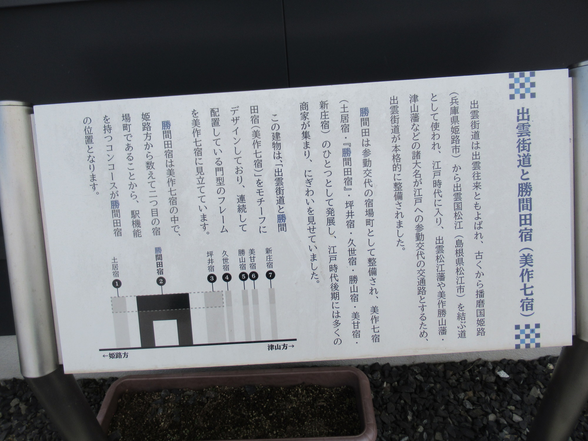 東から土居宿→勝間田宿→坪井宿→久世宿→勝山宿→美甘宿→新庄宿だそうです.
