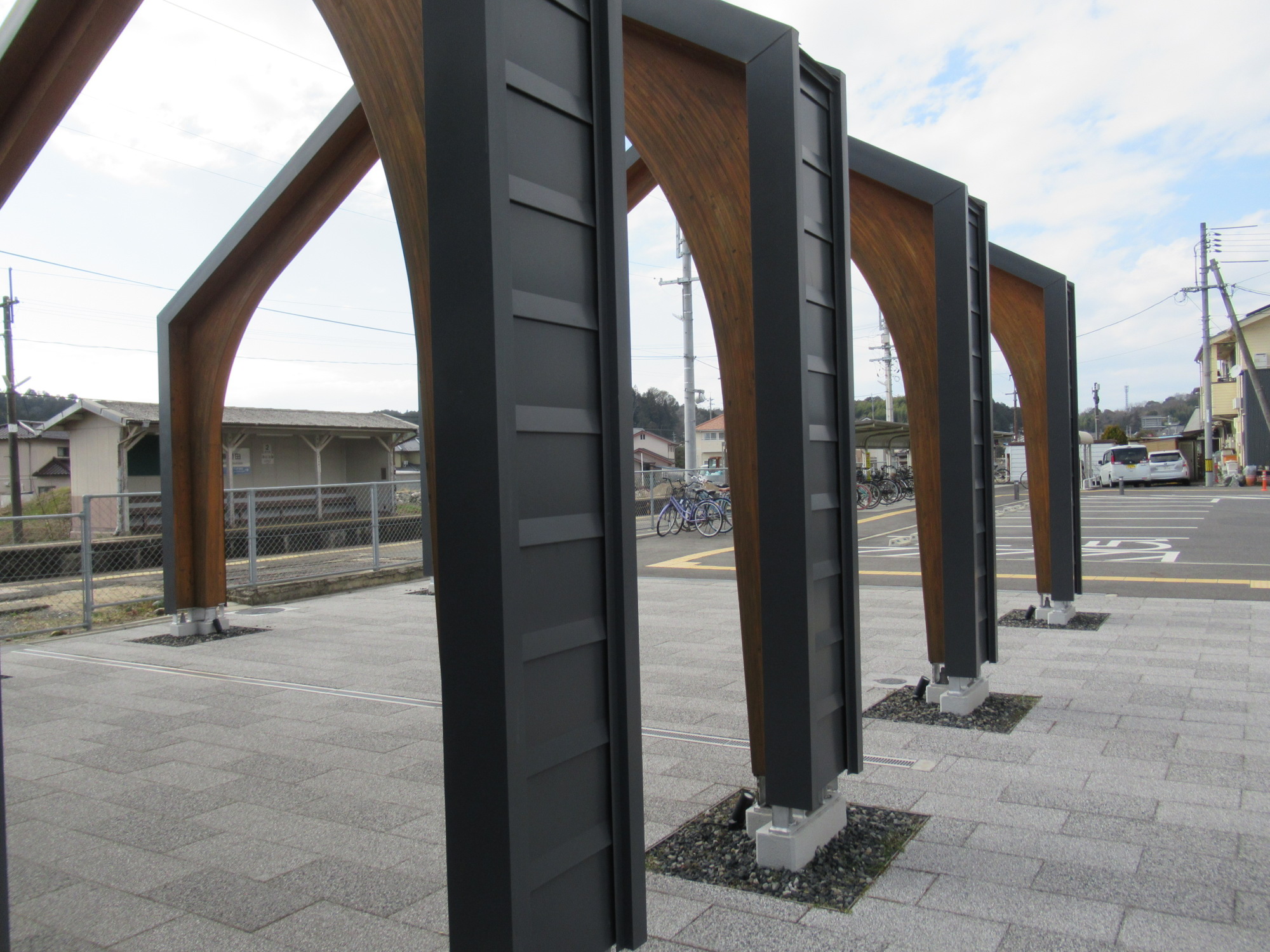 そして、勝間田駅へ戻ってきましたが……このアーチは、なんと、出雲街道の宿場町だそうです(一番奥は新庄宿)