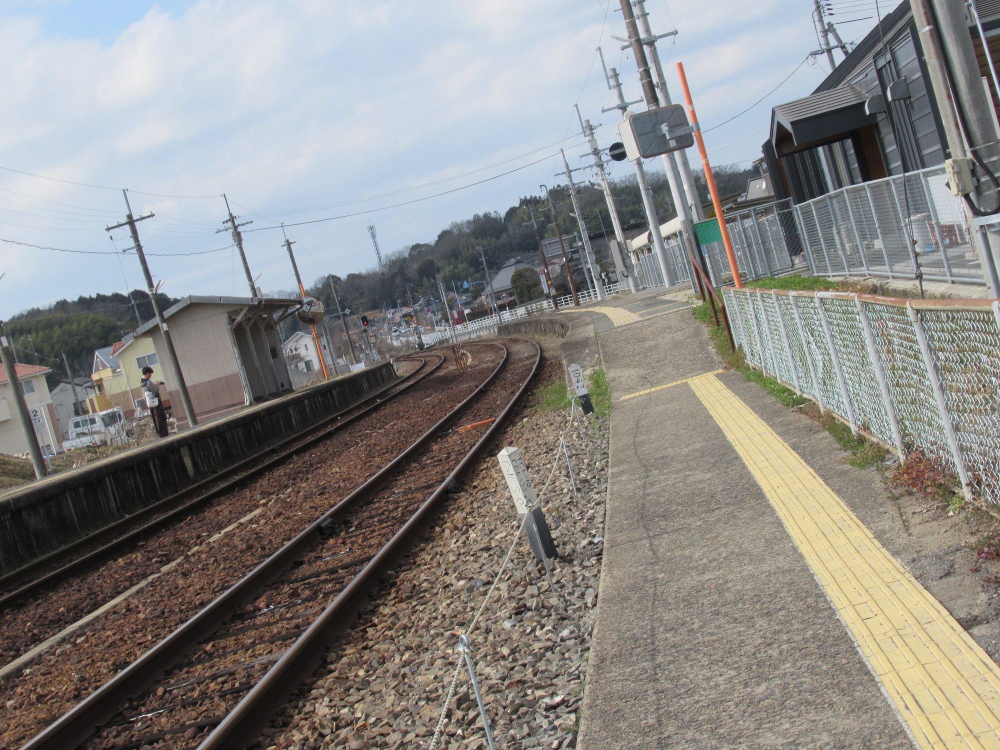 なんと、津山行のホームへは、渡り廊下ではなく、線路面を横切る感じでした.