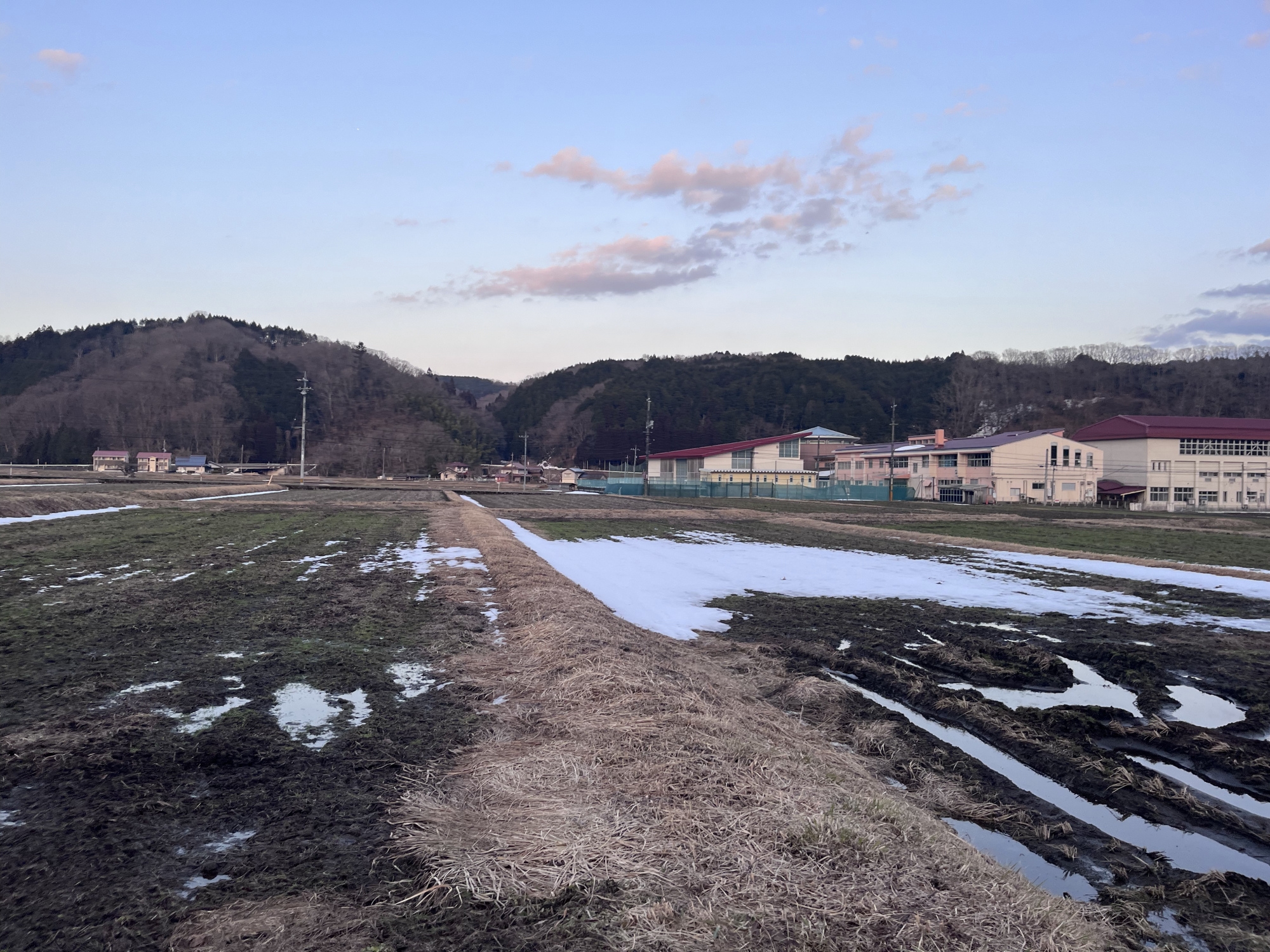 少し雲、田圃は可也、雪がなくなりました.