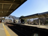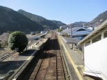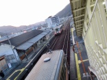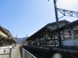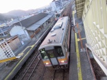 中国勝山駅、姫新線は単線なので、すれ違いは、複線になっている駅で.上り津山行と下りの新見行が、次々と到着して、同時に発車でした.