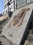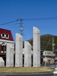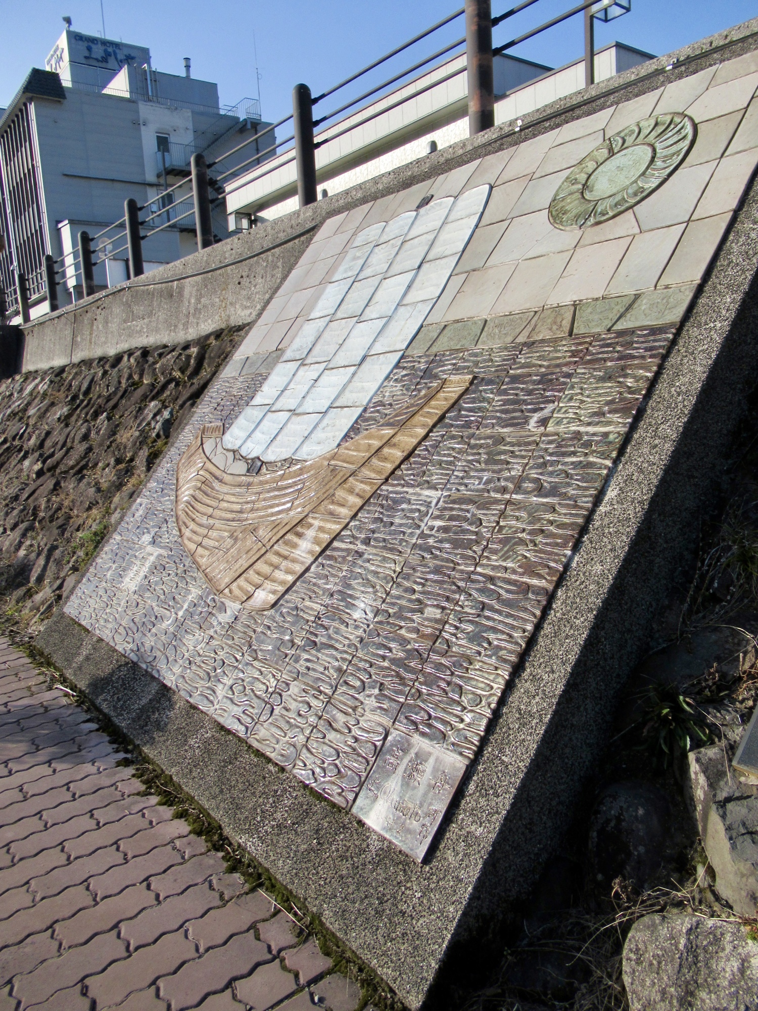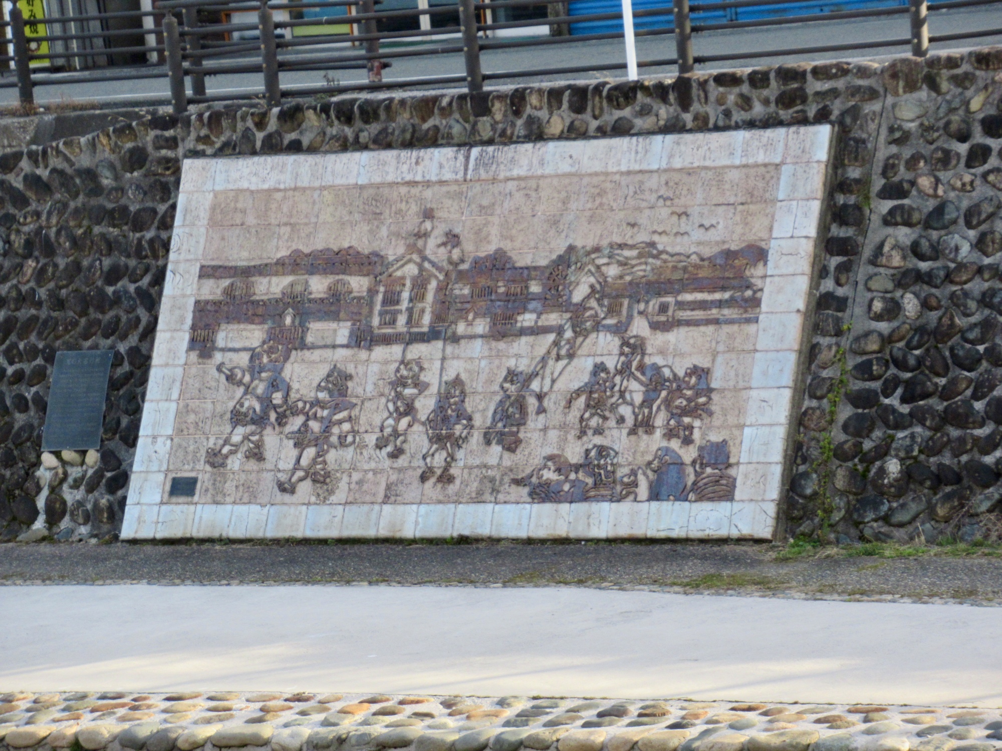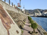 駅近くの河川敷は、いろんなアートで郷土紹介です.