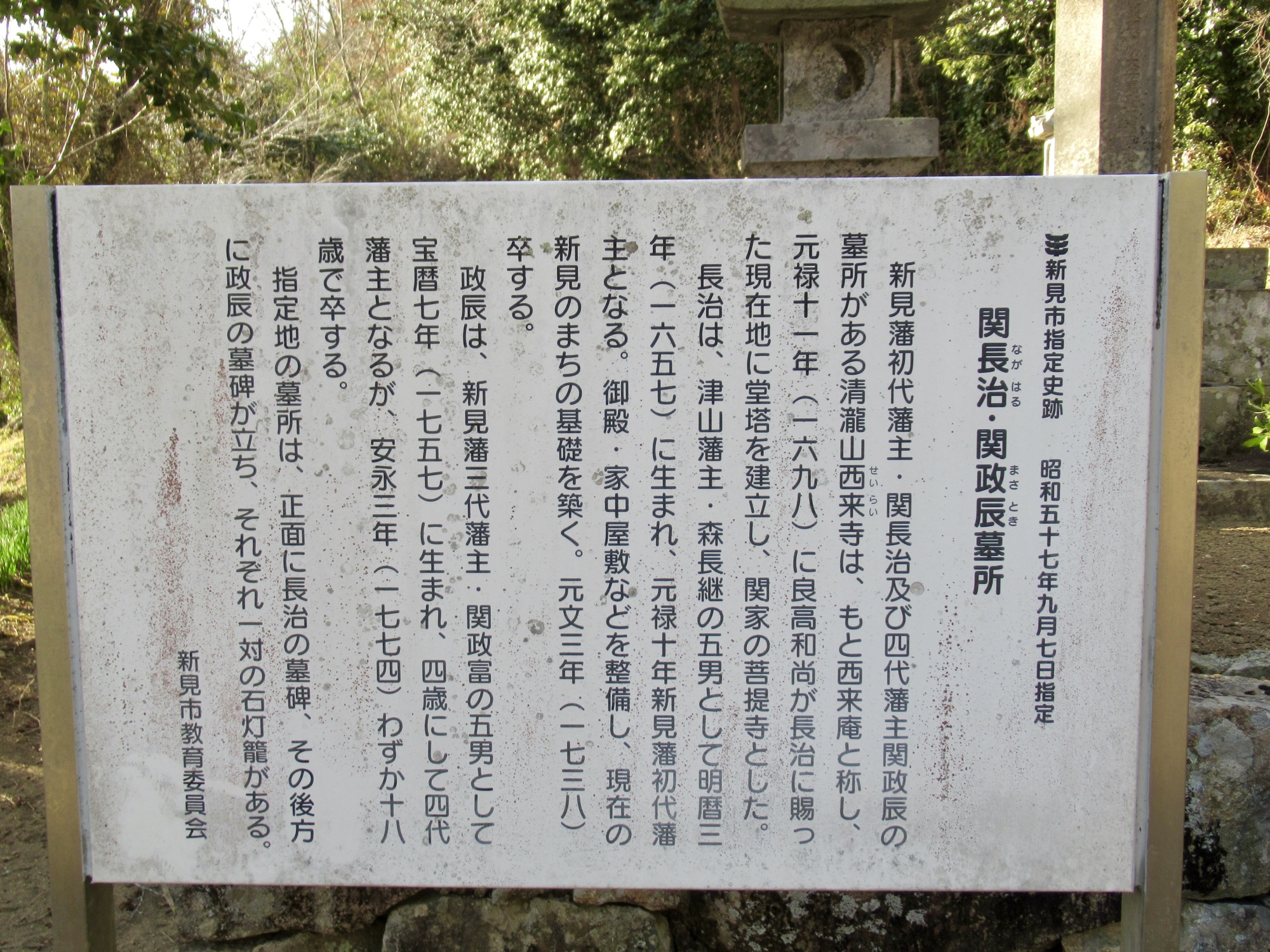 【1698年に新見藩初代藩主・関長治が創建した曹洞宗の寺院です。新見藩主の菩提寺であり、関長治・関政辰の墓所は新見市の史跡に指定されています】